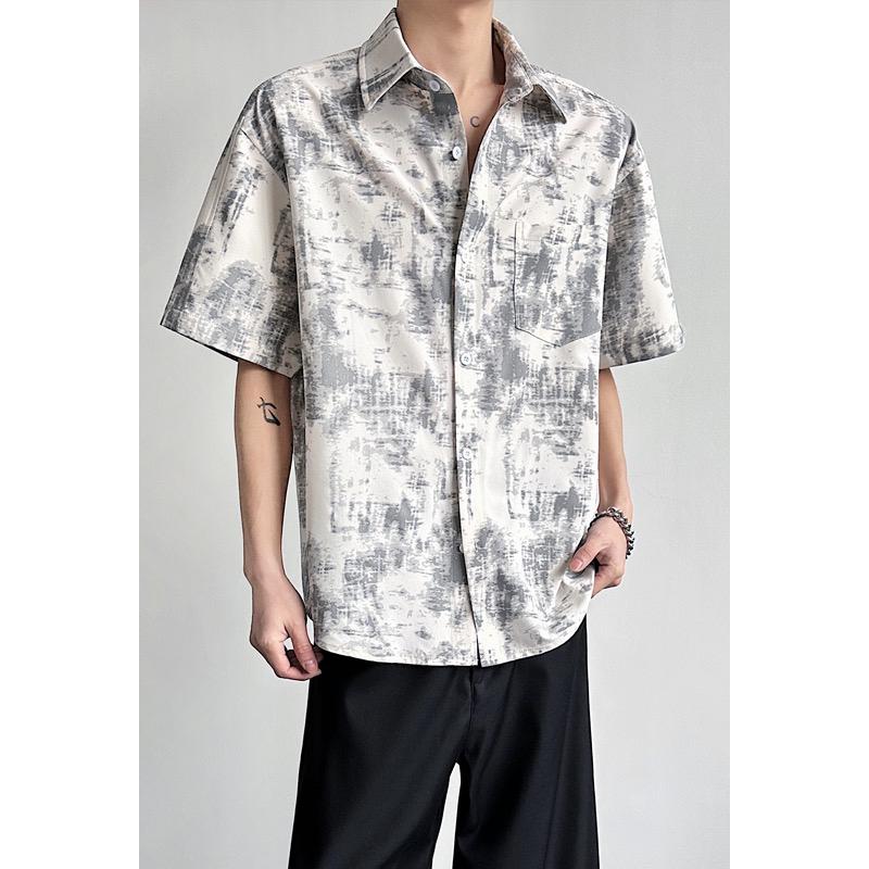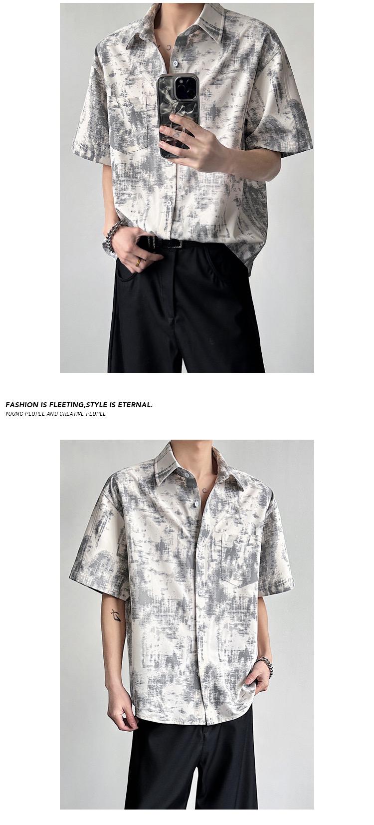 【YS2918】男士潮流百搭寬鬆休閒大碼翻領印花短袖襯衫