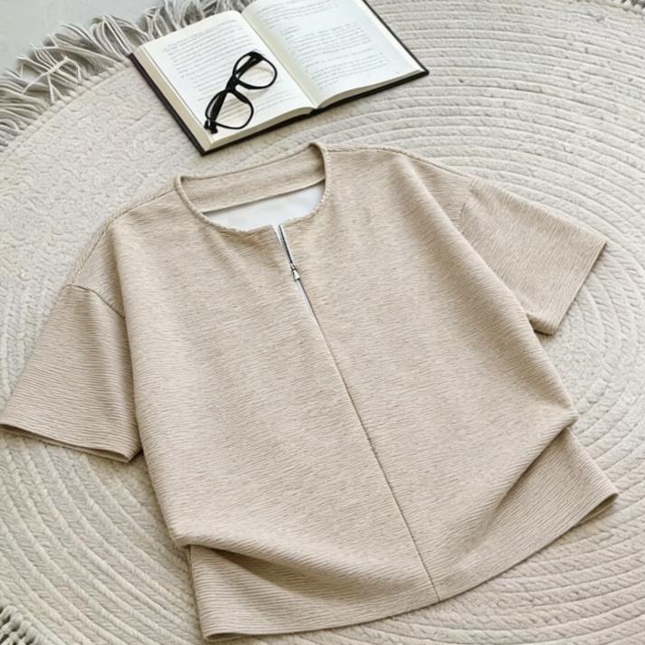 【YS2916】新款夏季男士潮流百搭休閒寬鬆半拉鍊純色上衣短袖T恤