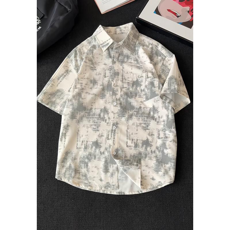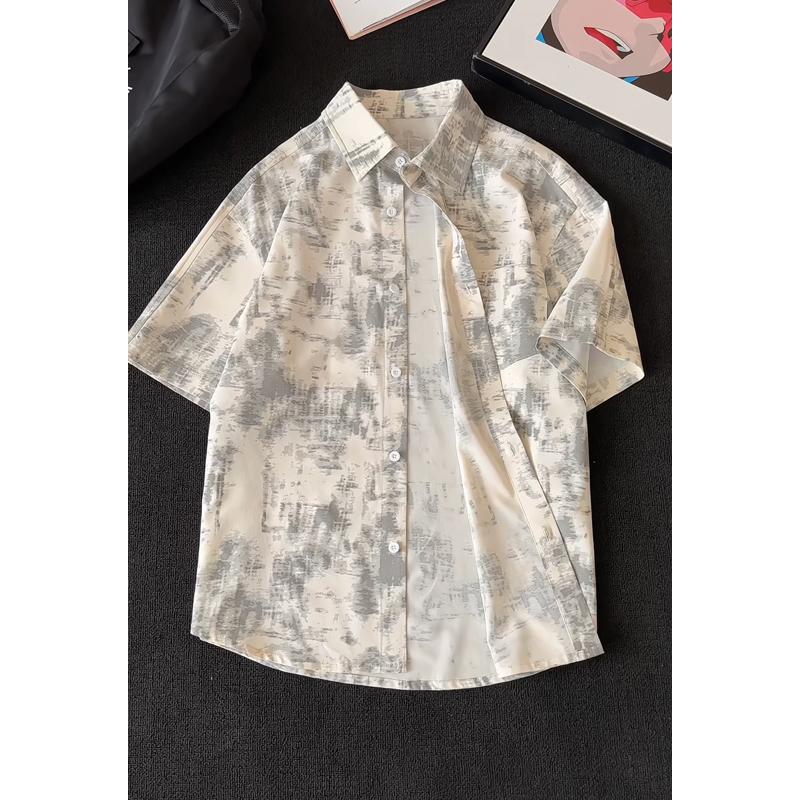 【YS2920】夏季新款潮流百搭寬鬆休閒大碼印花短袖翻領襯衫