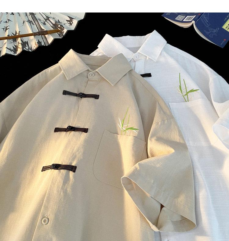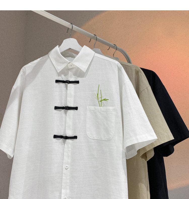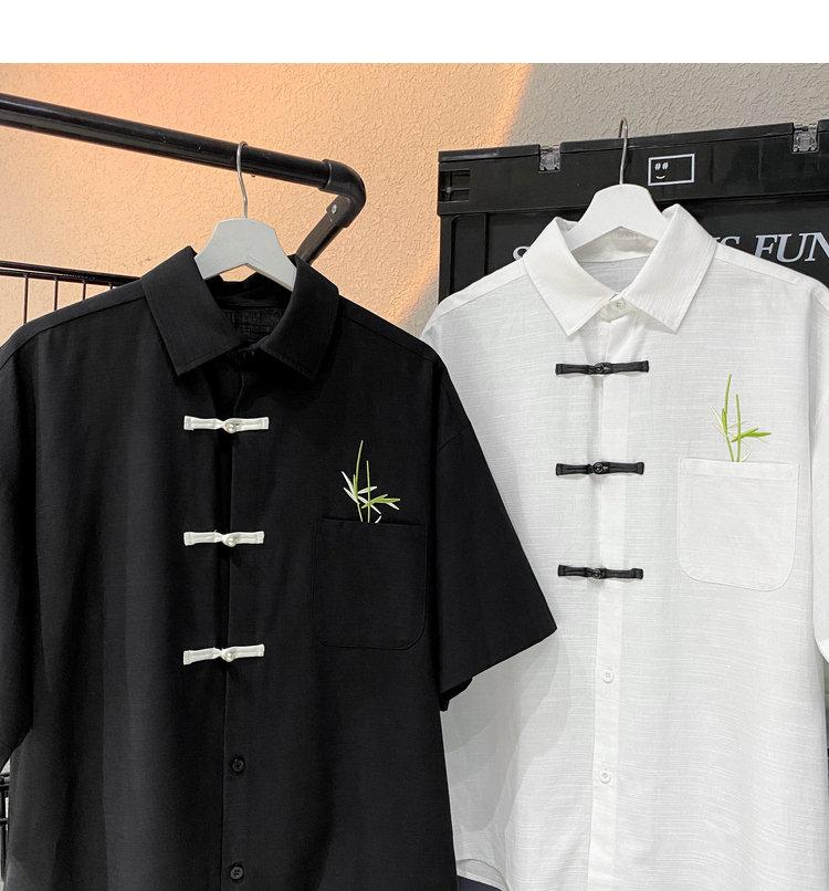 【YS2922】新中式國風盤扣刺繡短袖男夏季薄款襯衫
