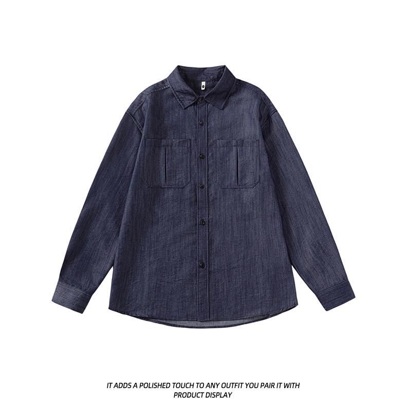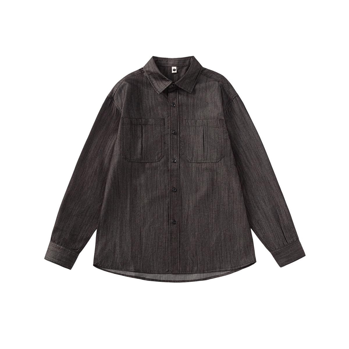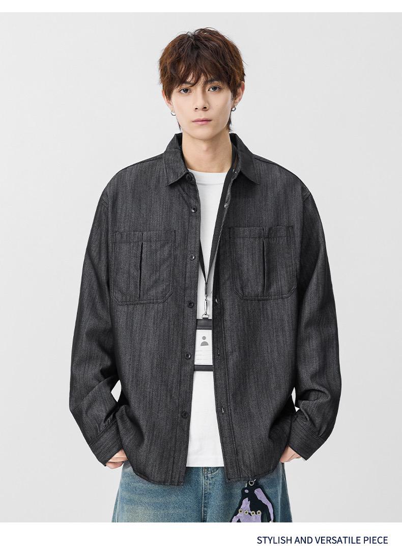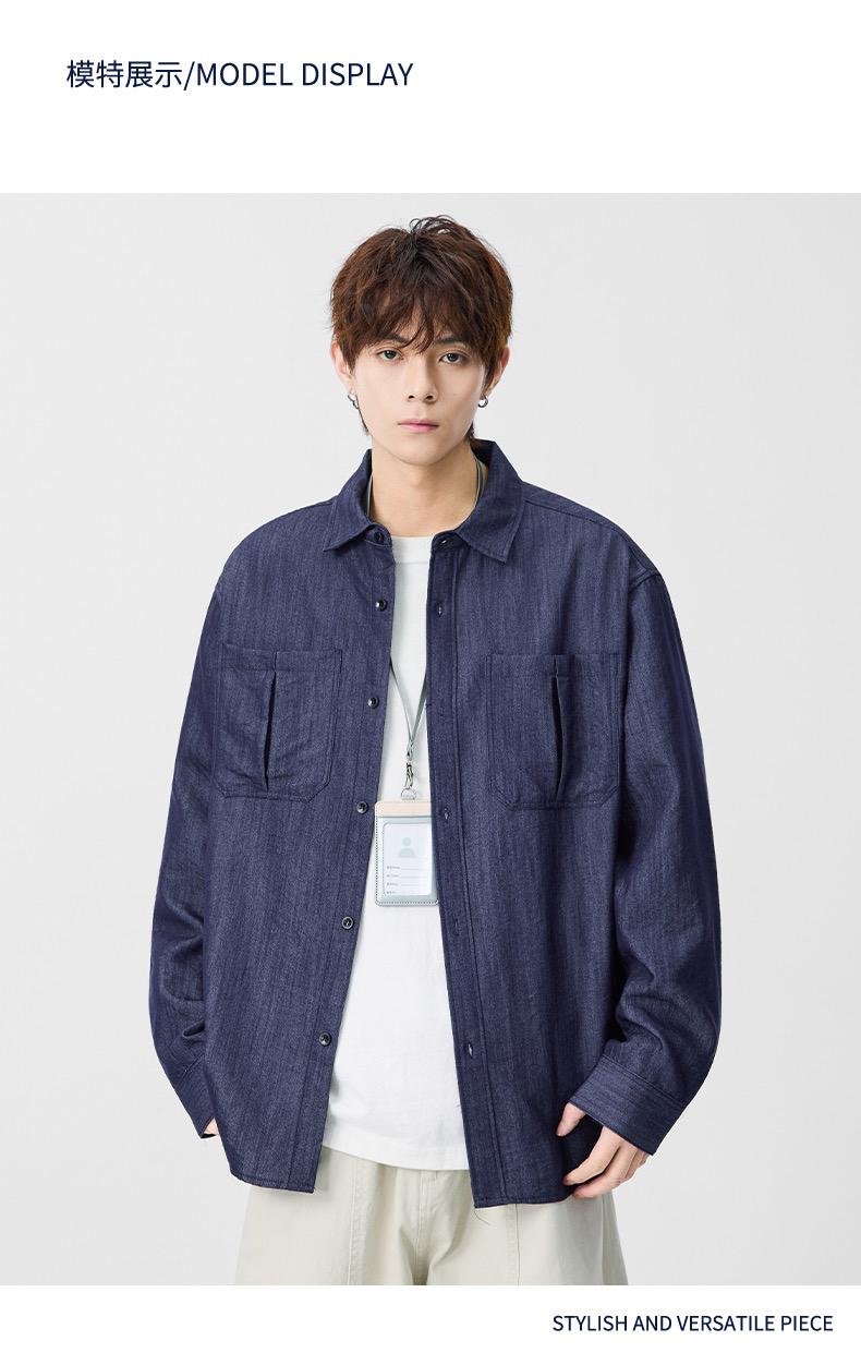 【YS2924】簡約百搭翻領長袖男士日系工裝純色襯衣百搭休閒襯衫
