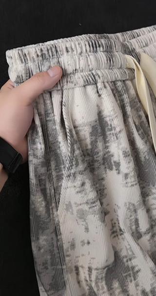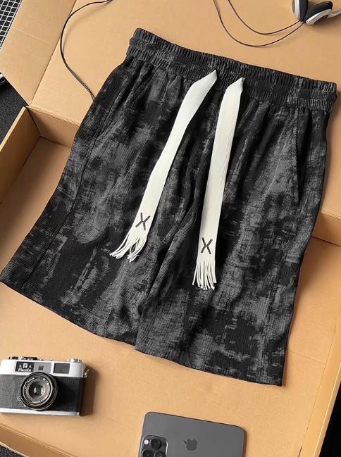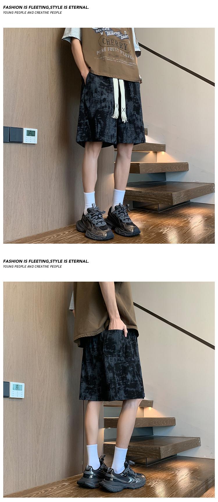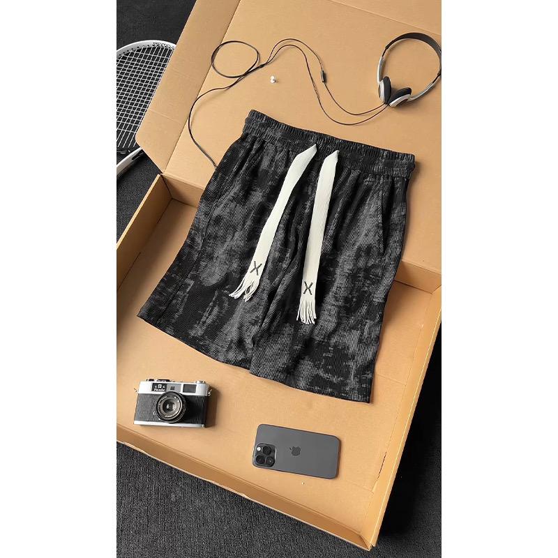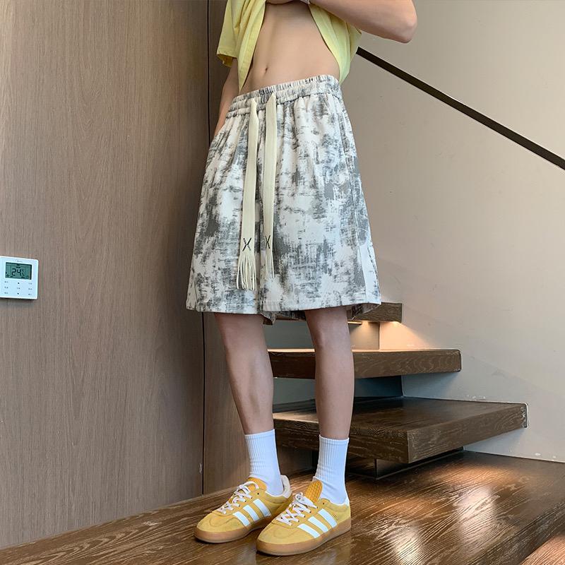 【YS2929】美式復古做舊扎染男女同款寬鬆闊腿五分褲潮牌街頭休閒運休閒短褲