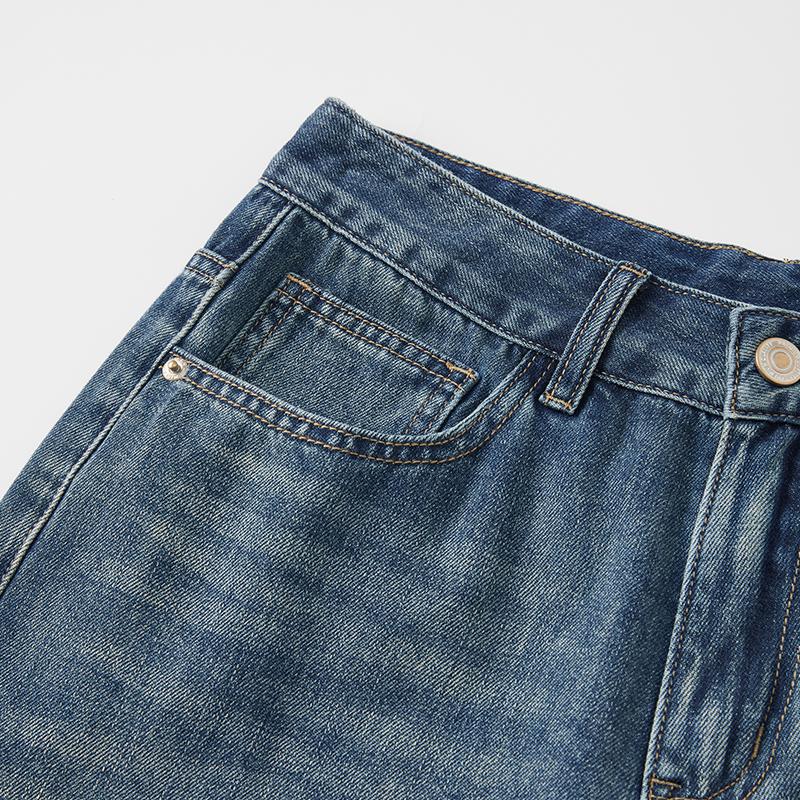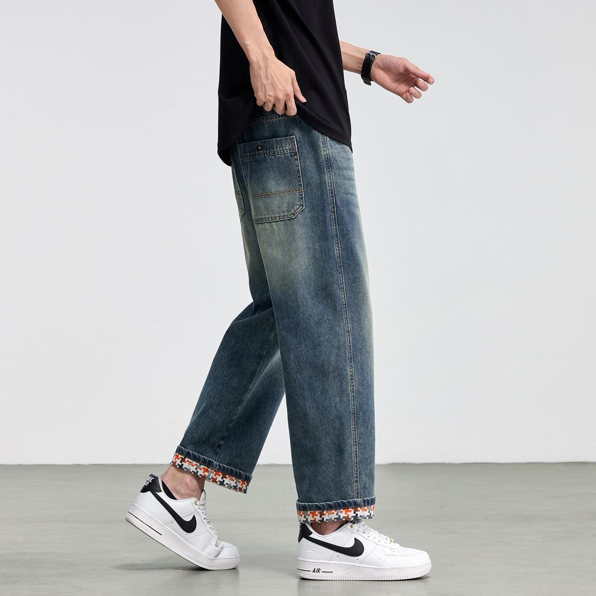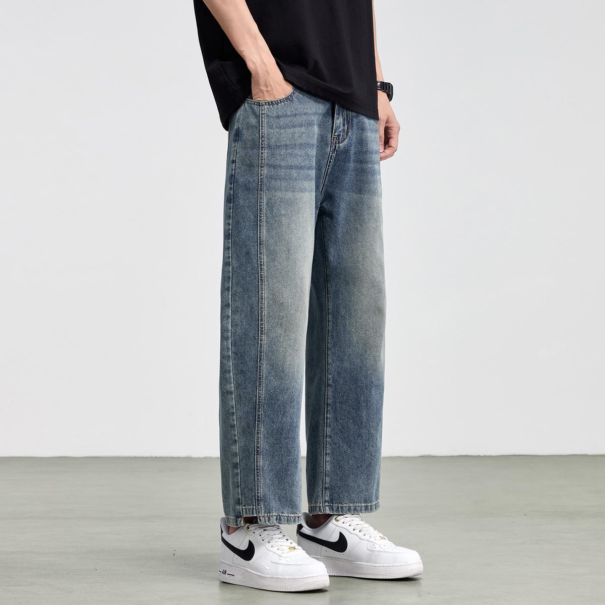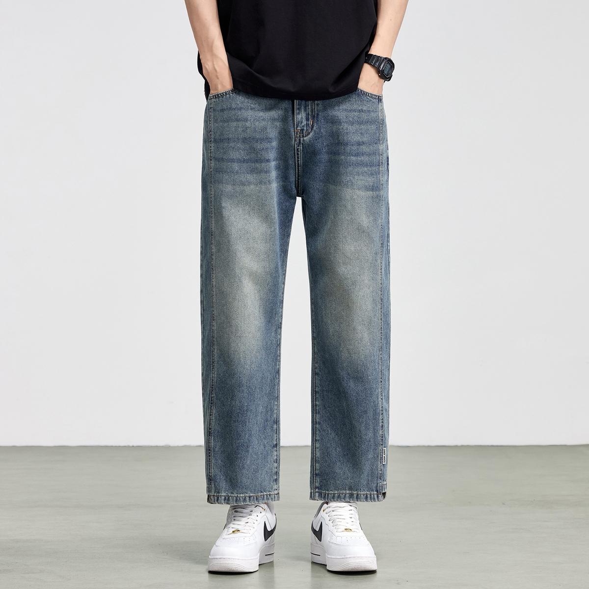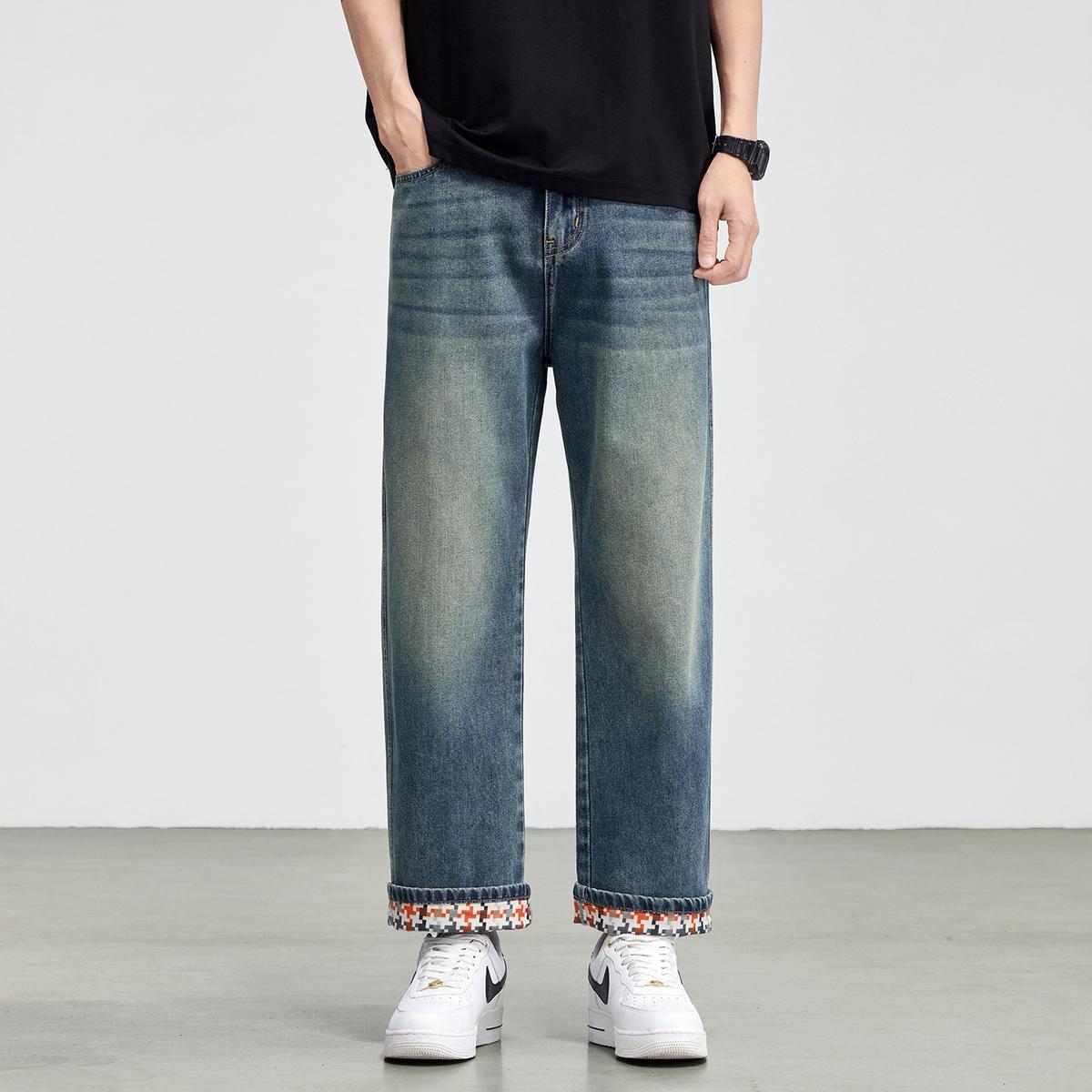 【YS2935】潮牌直筒寬鬆卷邊水洗九分牛仔褲