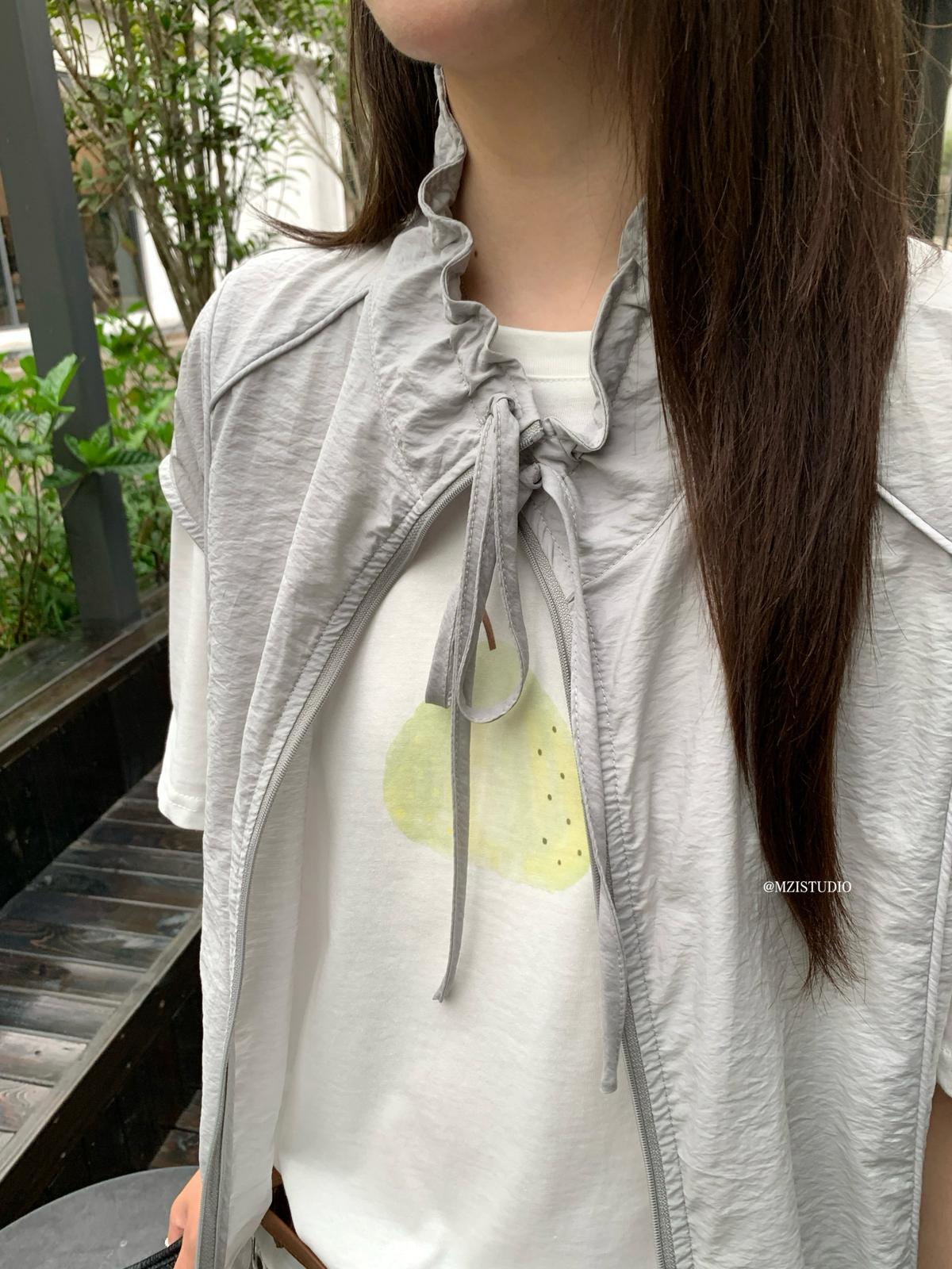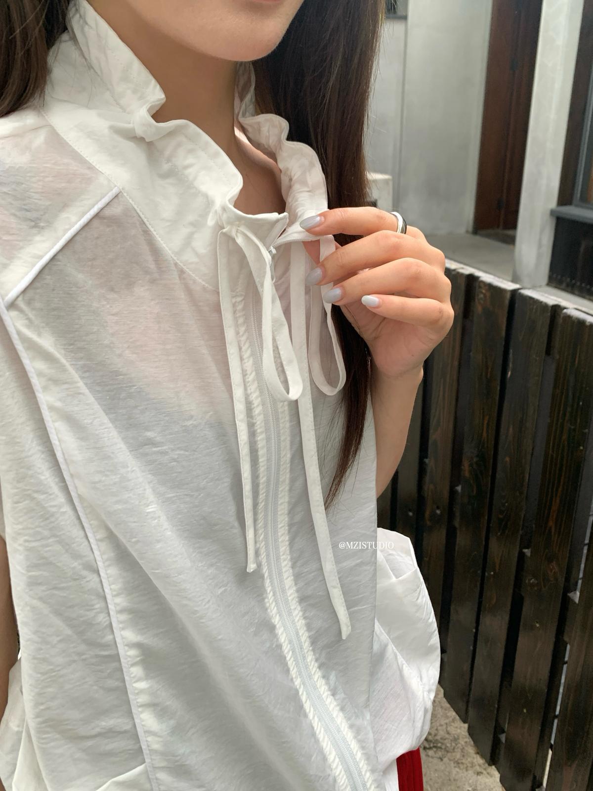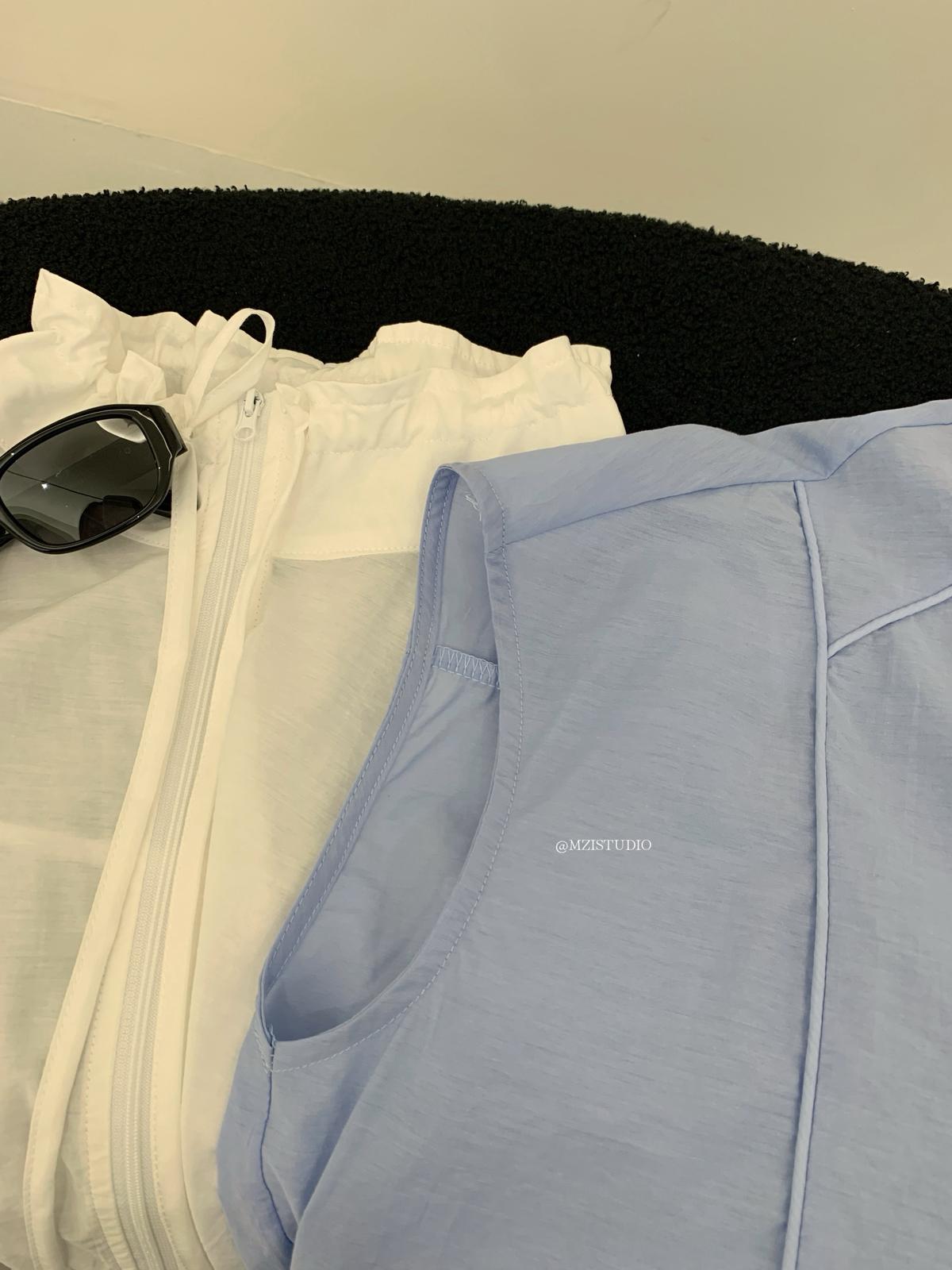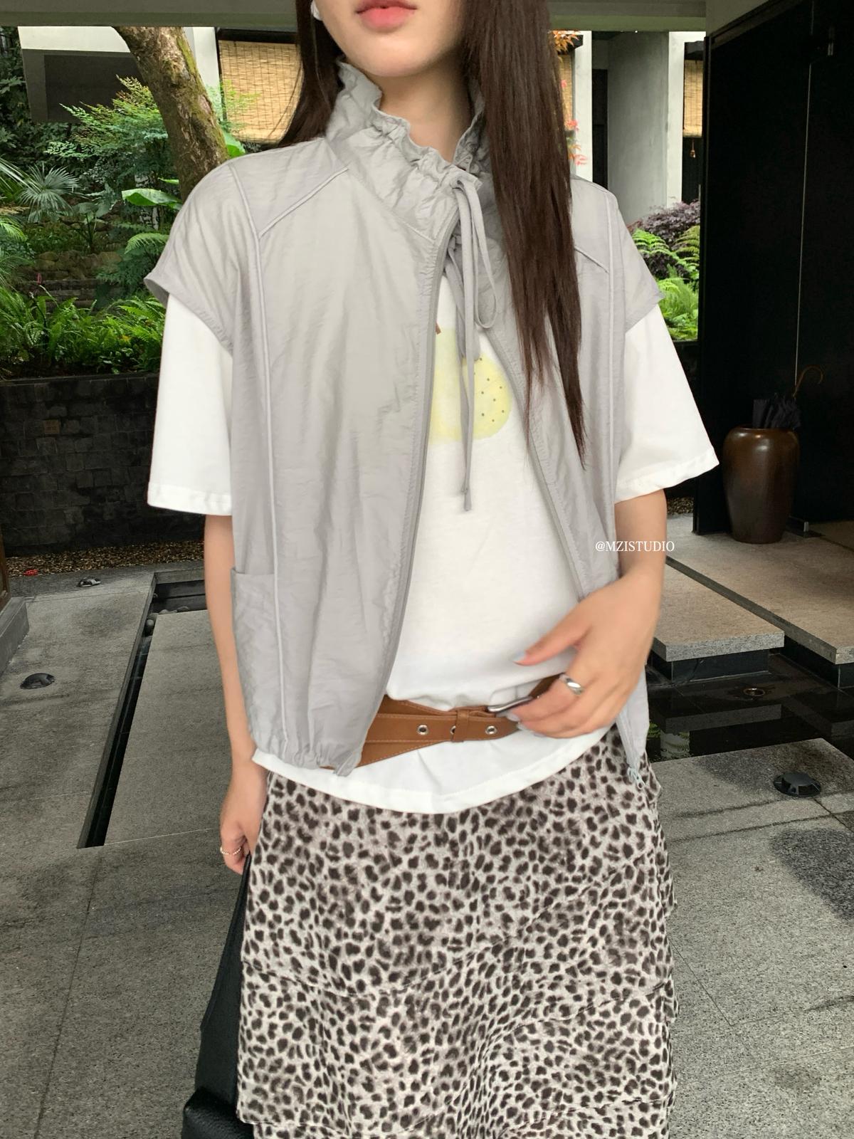 【C9056】原野自由韓調夏日透氣舒適疊穿抽繩立領拉鍊口袋小衫(只賣小衫/不含項鍊)