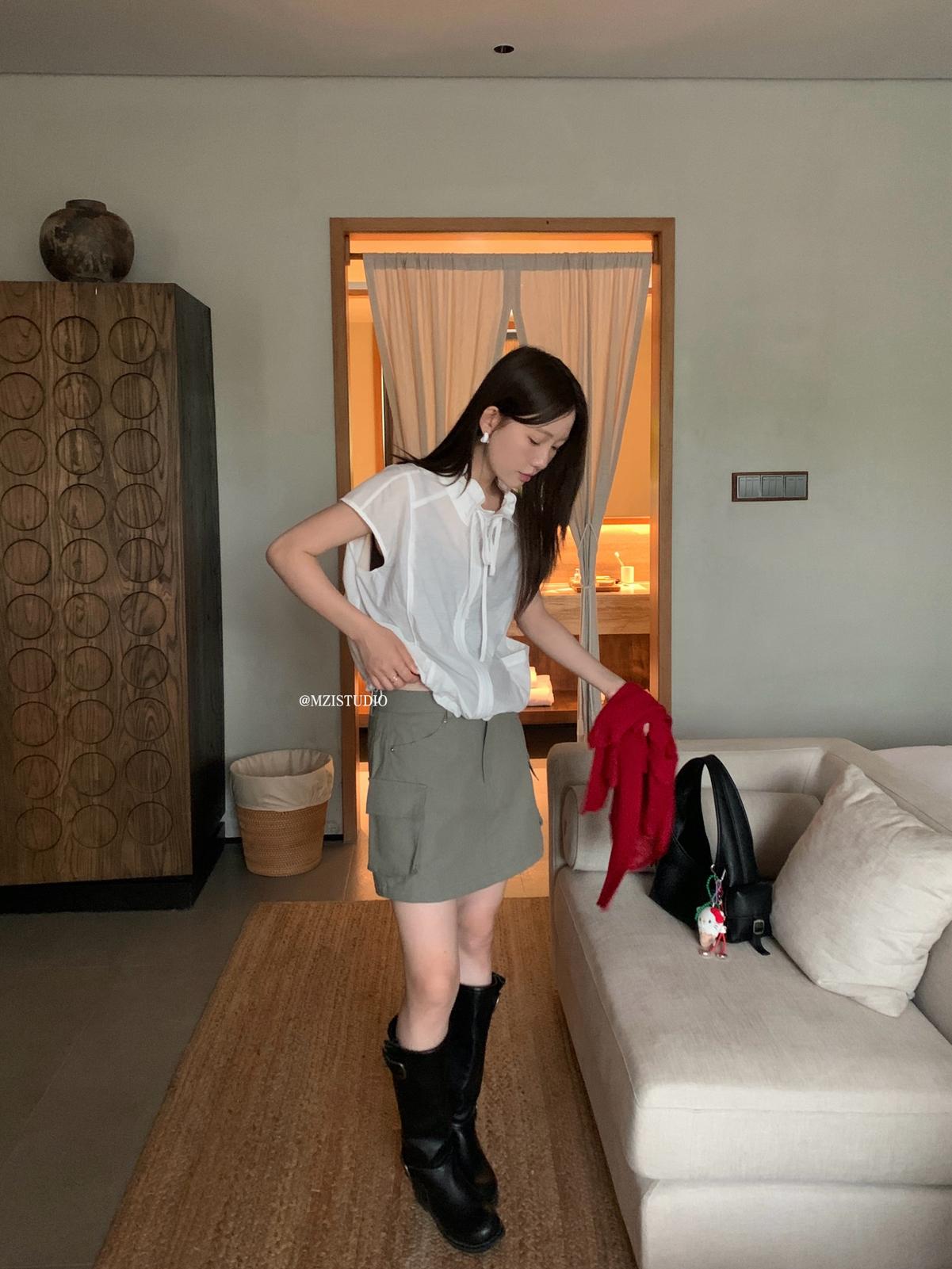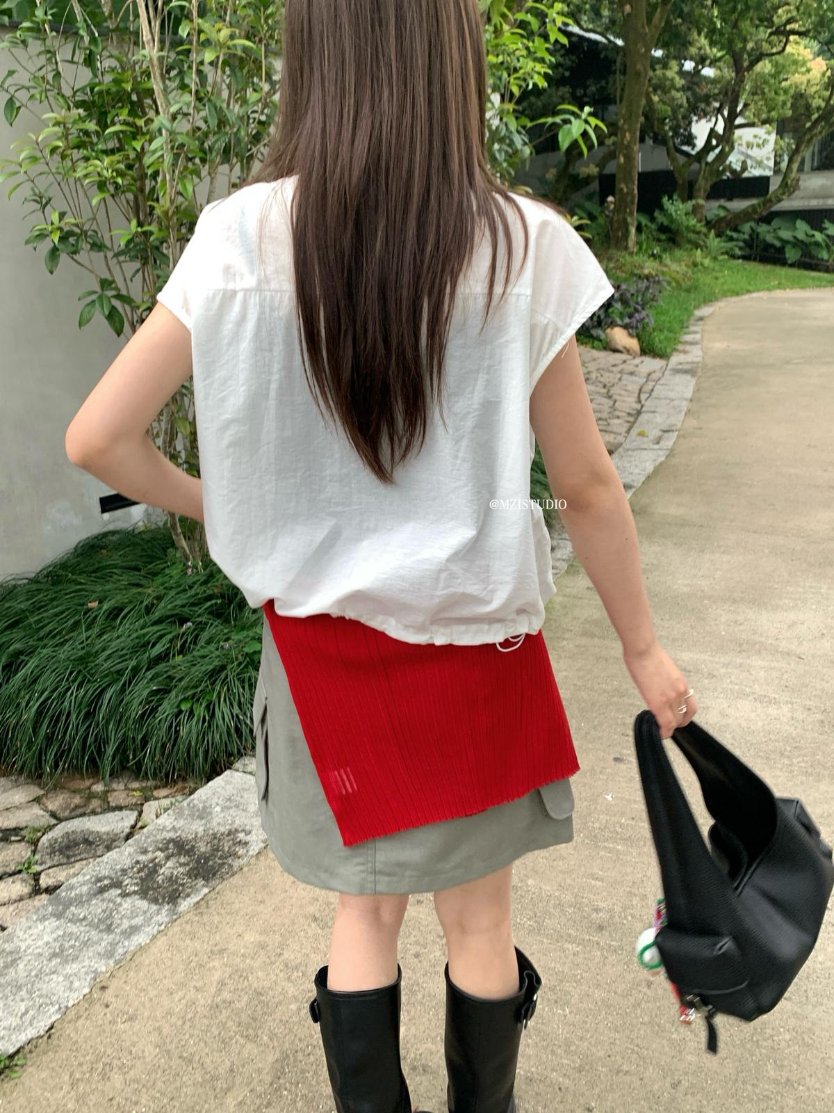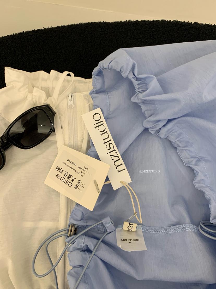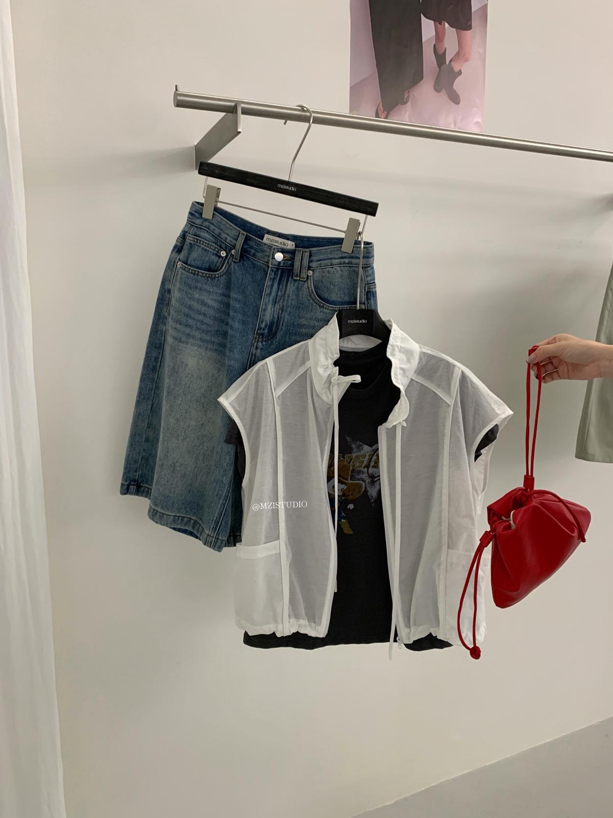 【C9056】原野自由韓調夏日透氣舒適疊穿抽繩立領拉鍊口袋小衫(只賣小衫/不含項鍊)