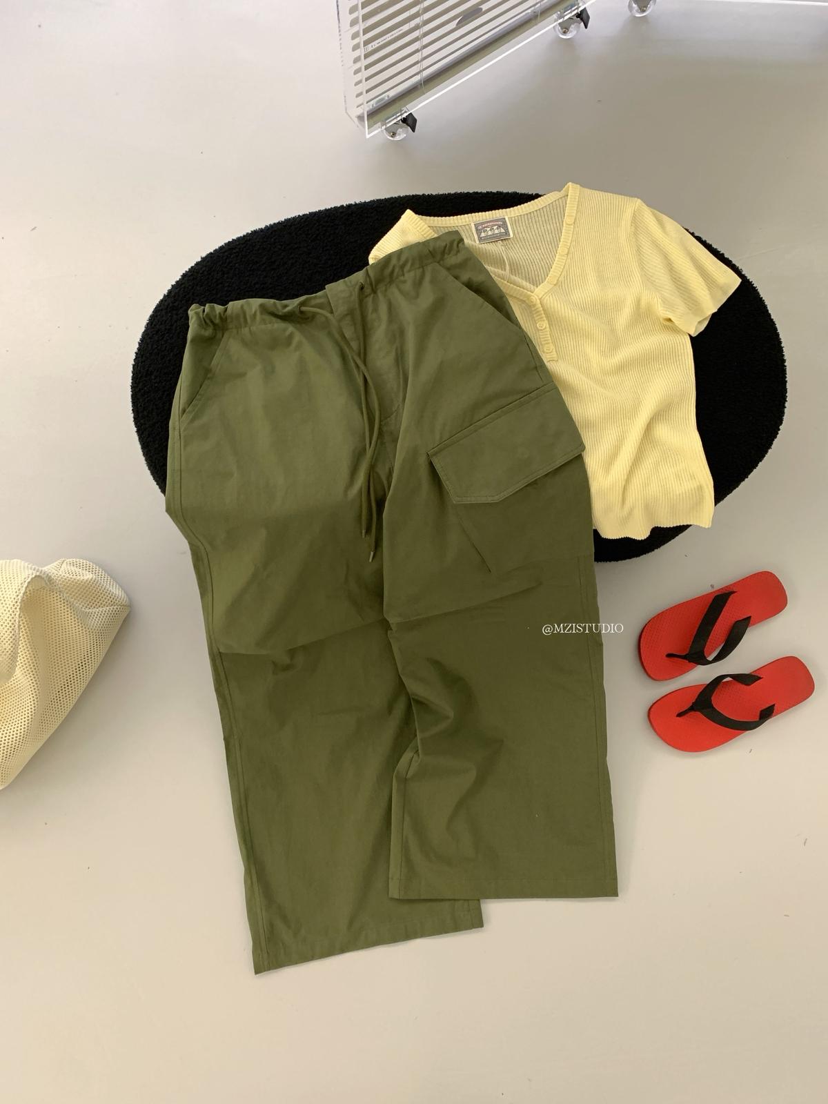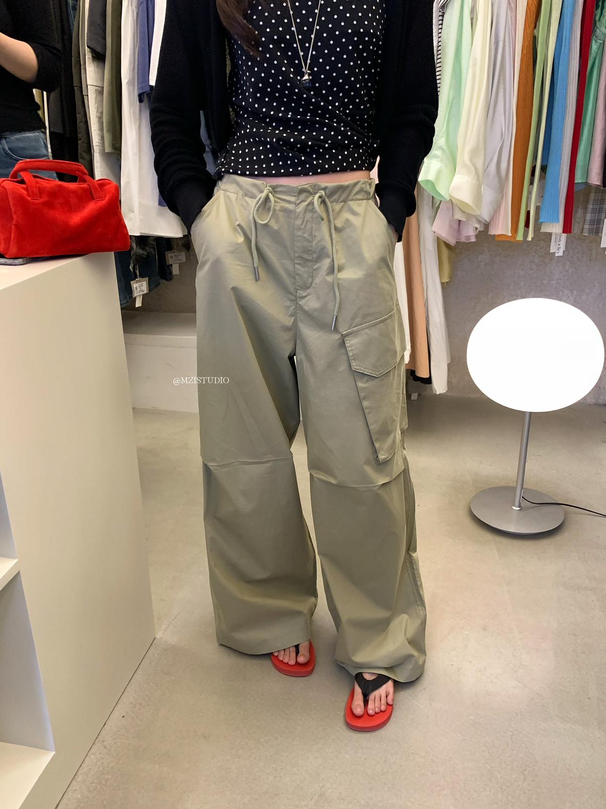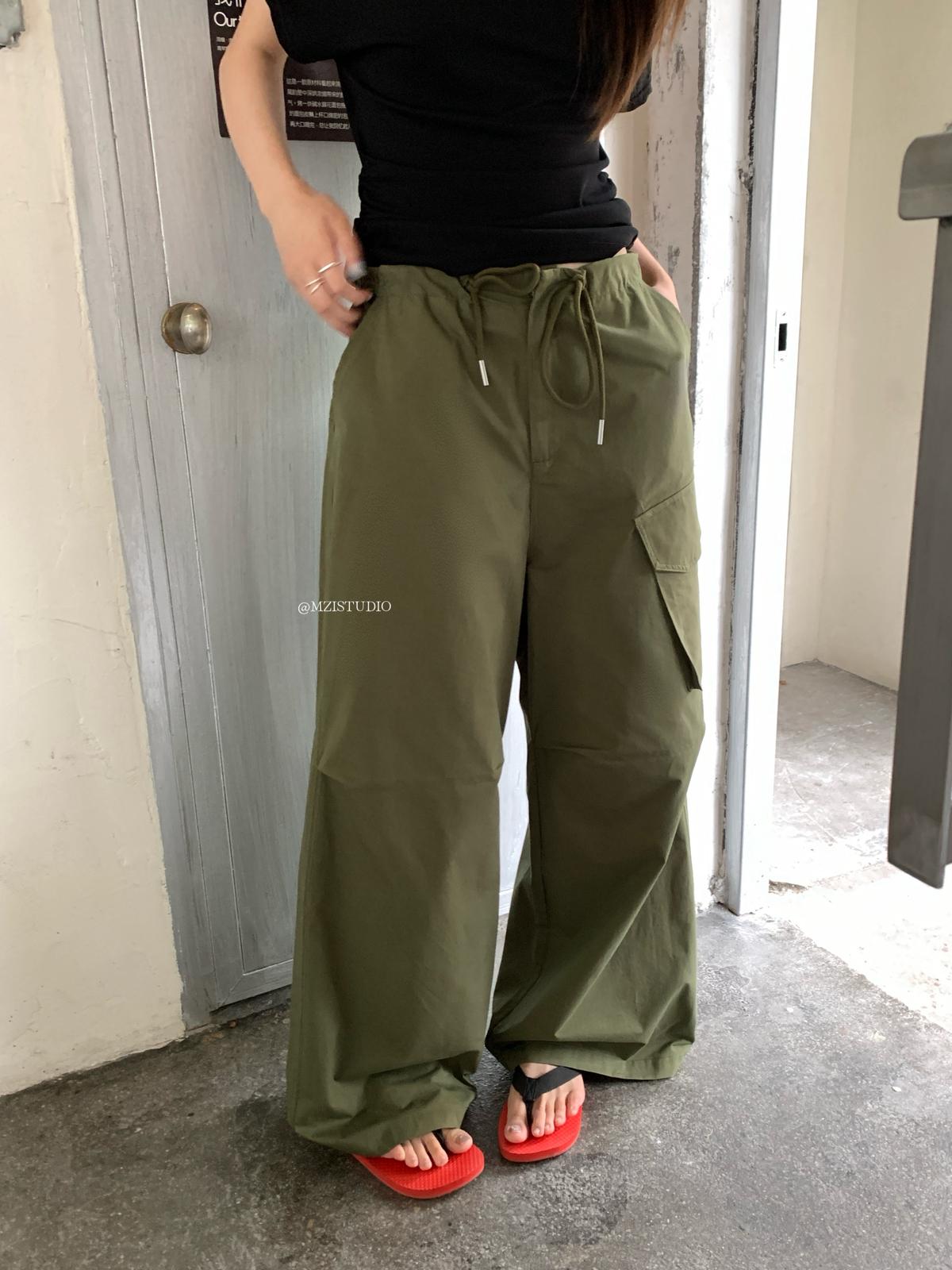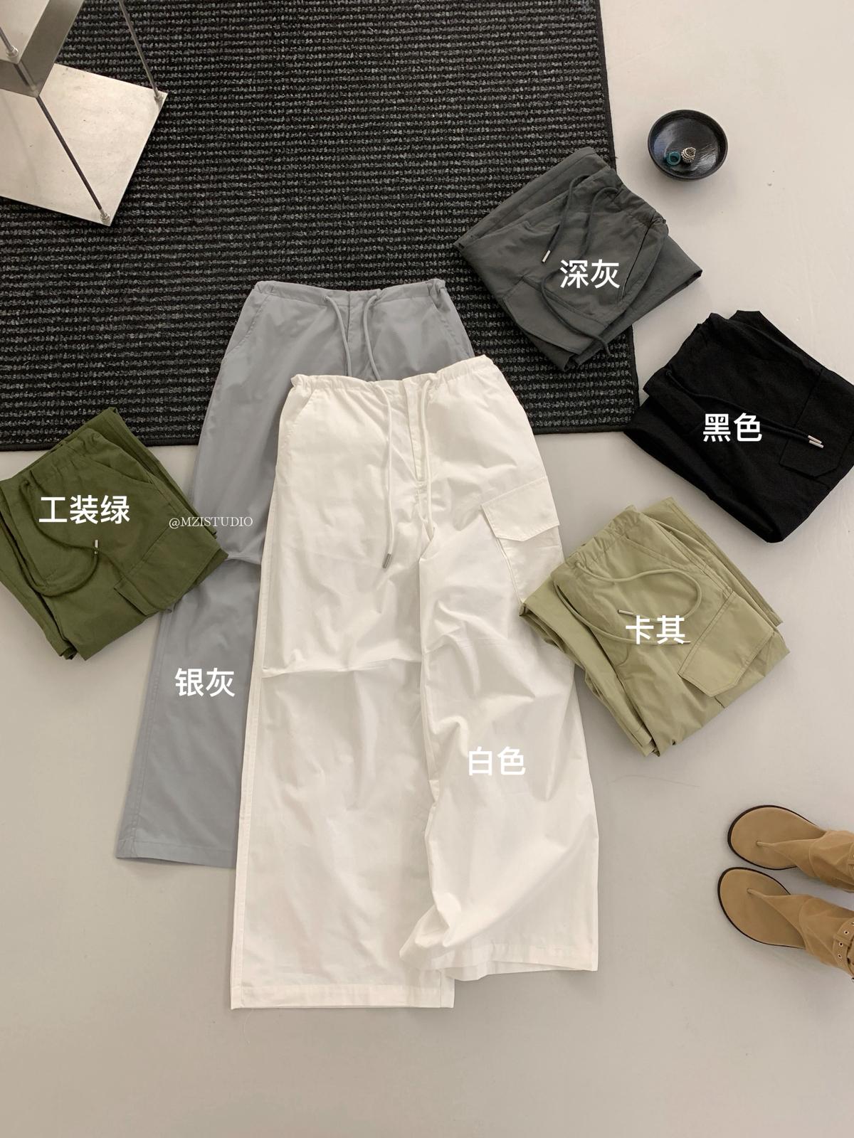 【C9057】小韓腔調夏季酷帥中性抽繩口袋寬鬆舒適百搭鬆弛感休閒褲