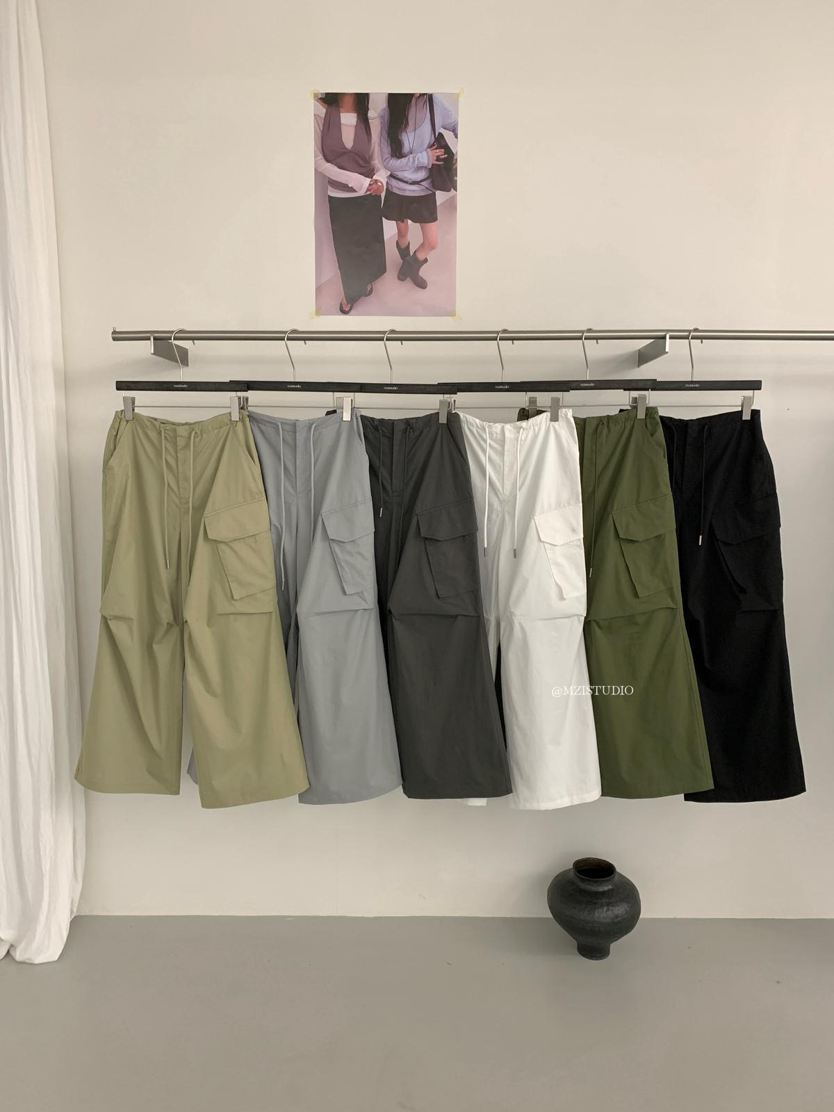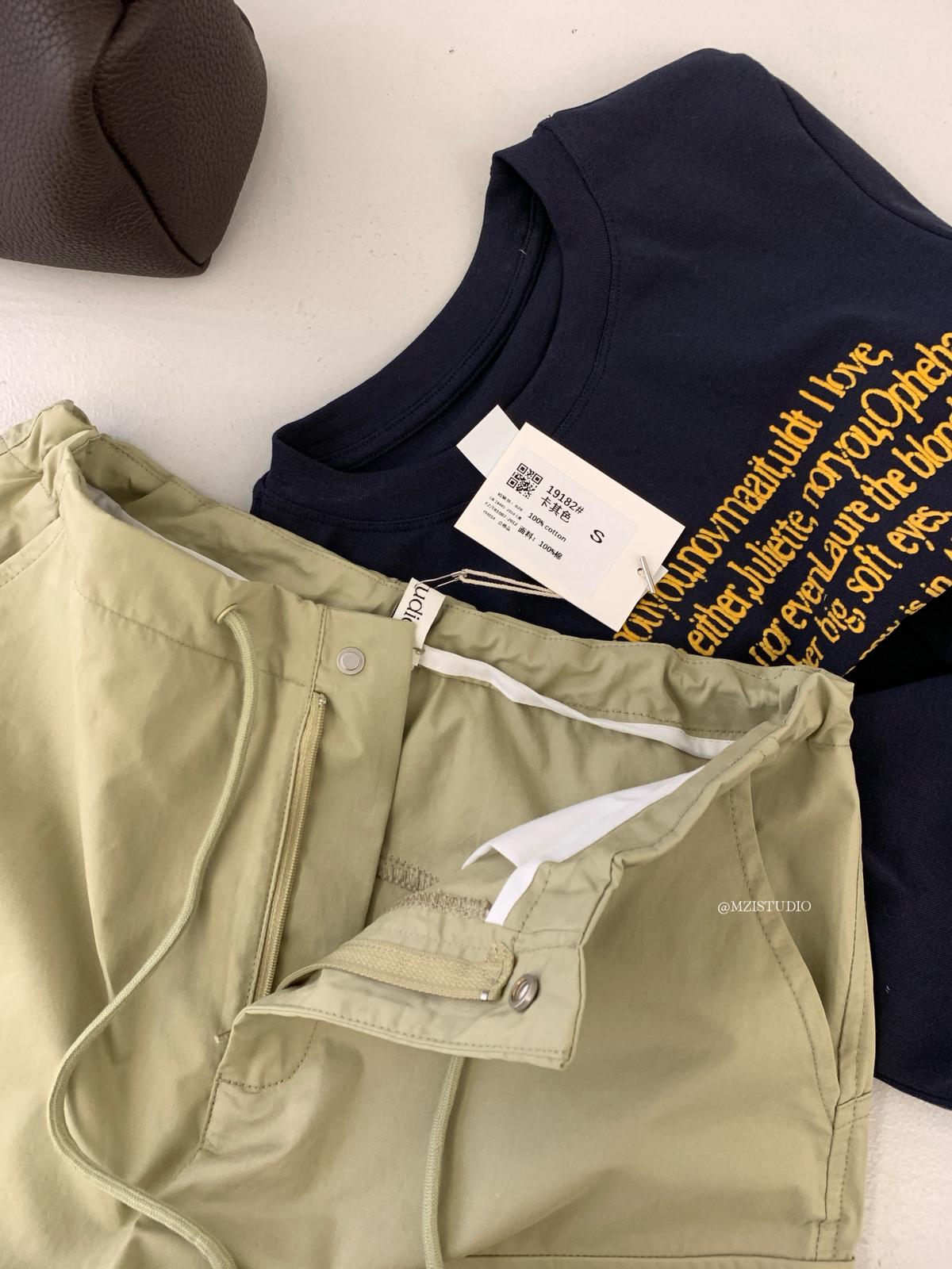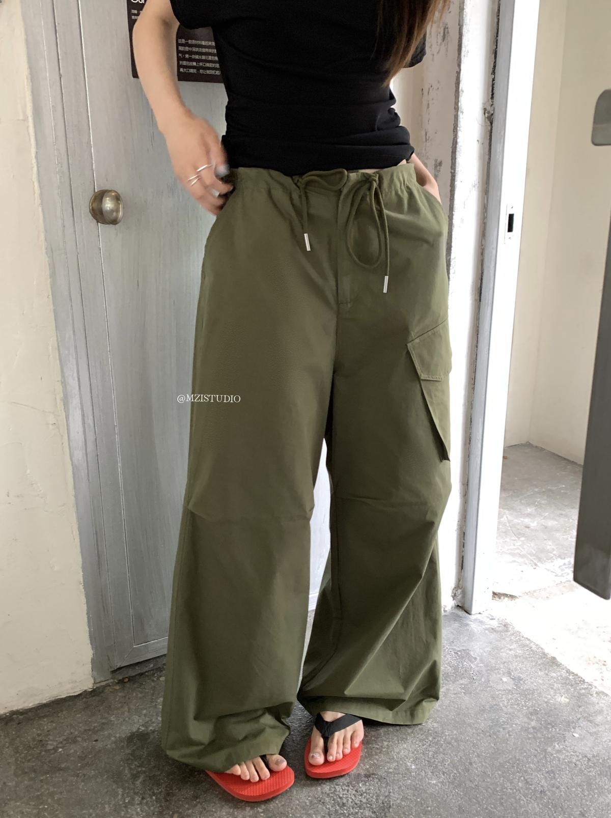 【C9057】小韓腔調夏季酷帥中性抽繩口袋寬鬆舒適百搭鬆弛感休閒褲