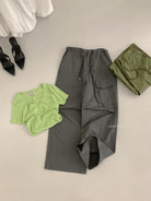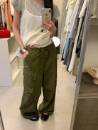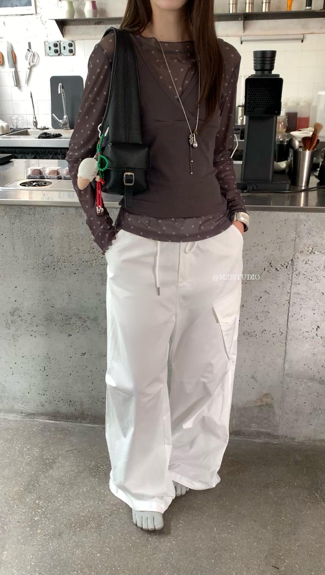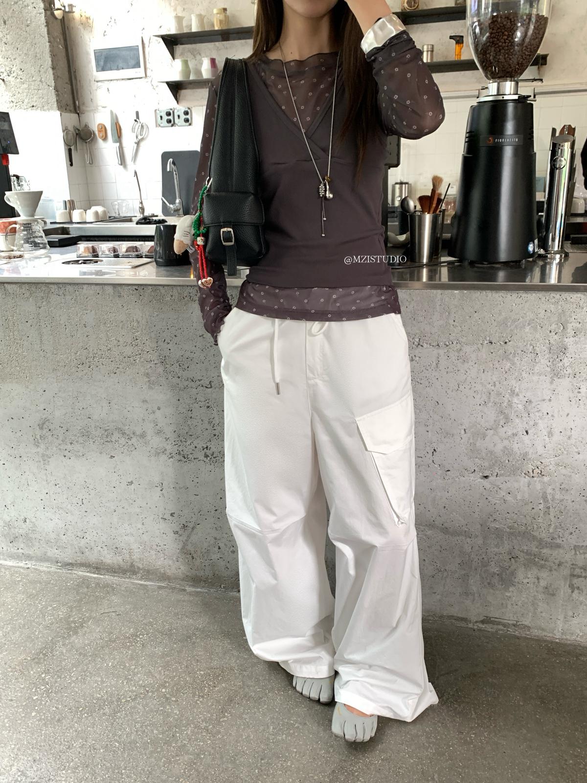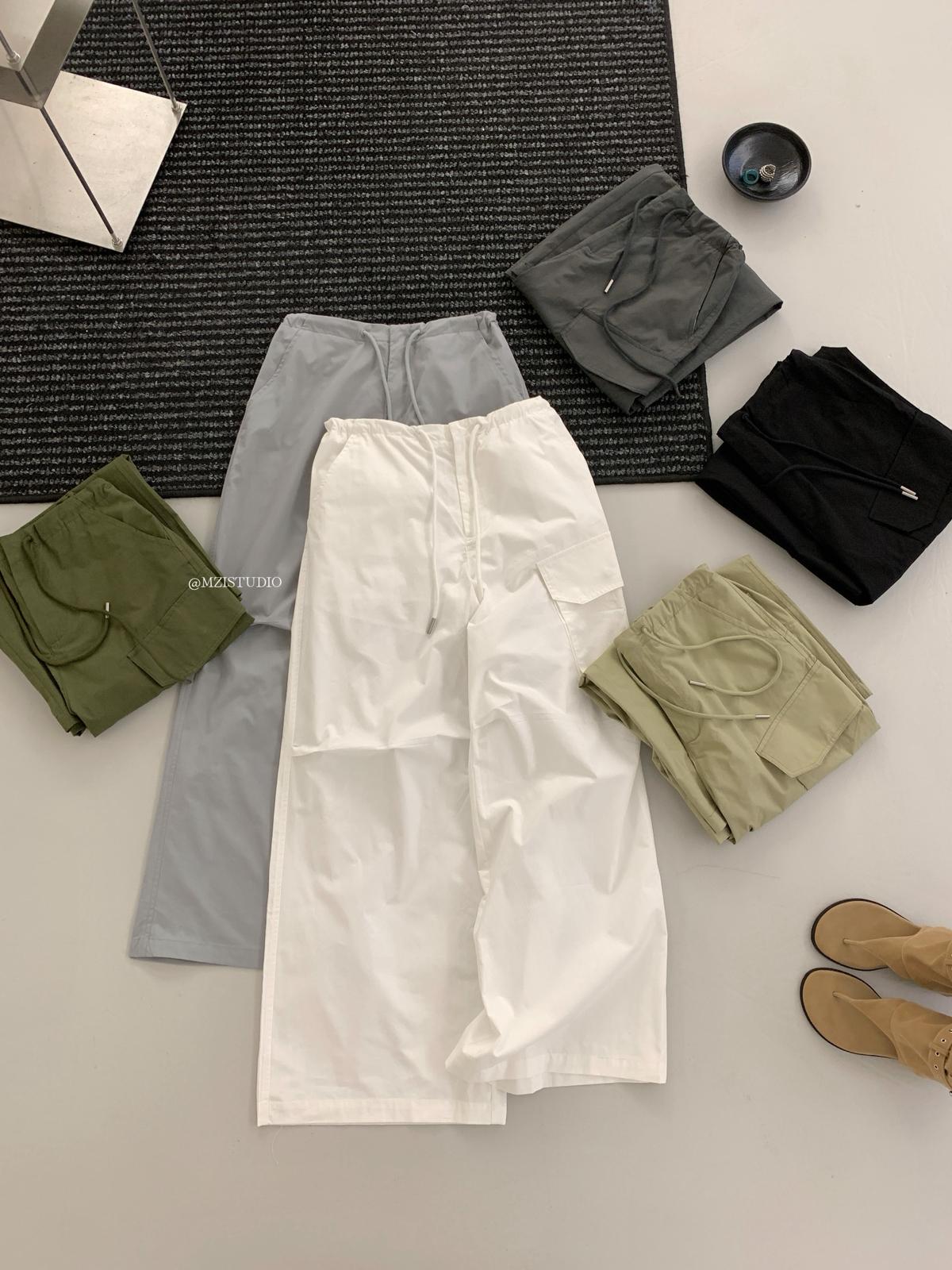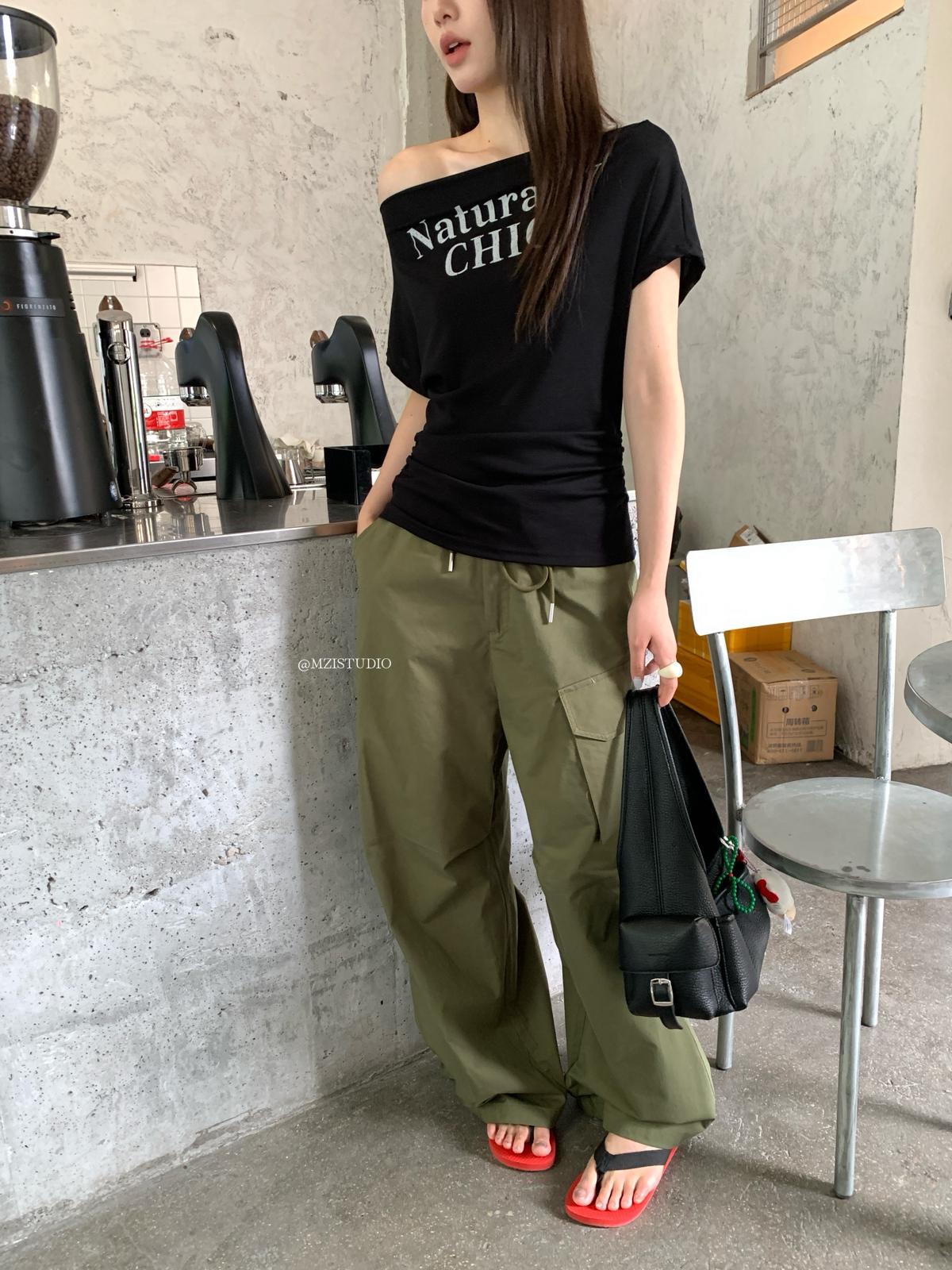 【C9057】小韓腔調夏季酷帥中性抽繩口袋寬鬆舒適百搭鬆弛感休閒褲