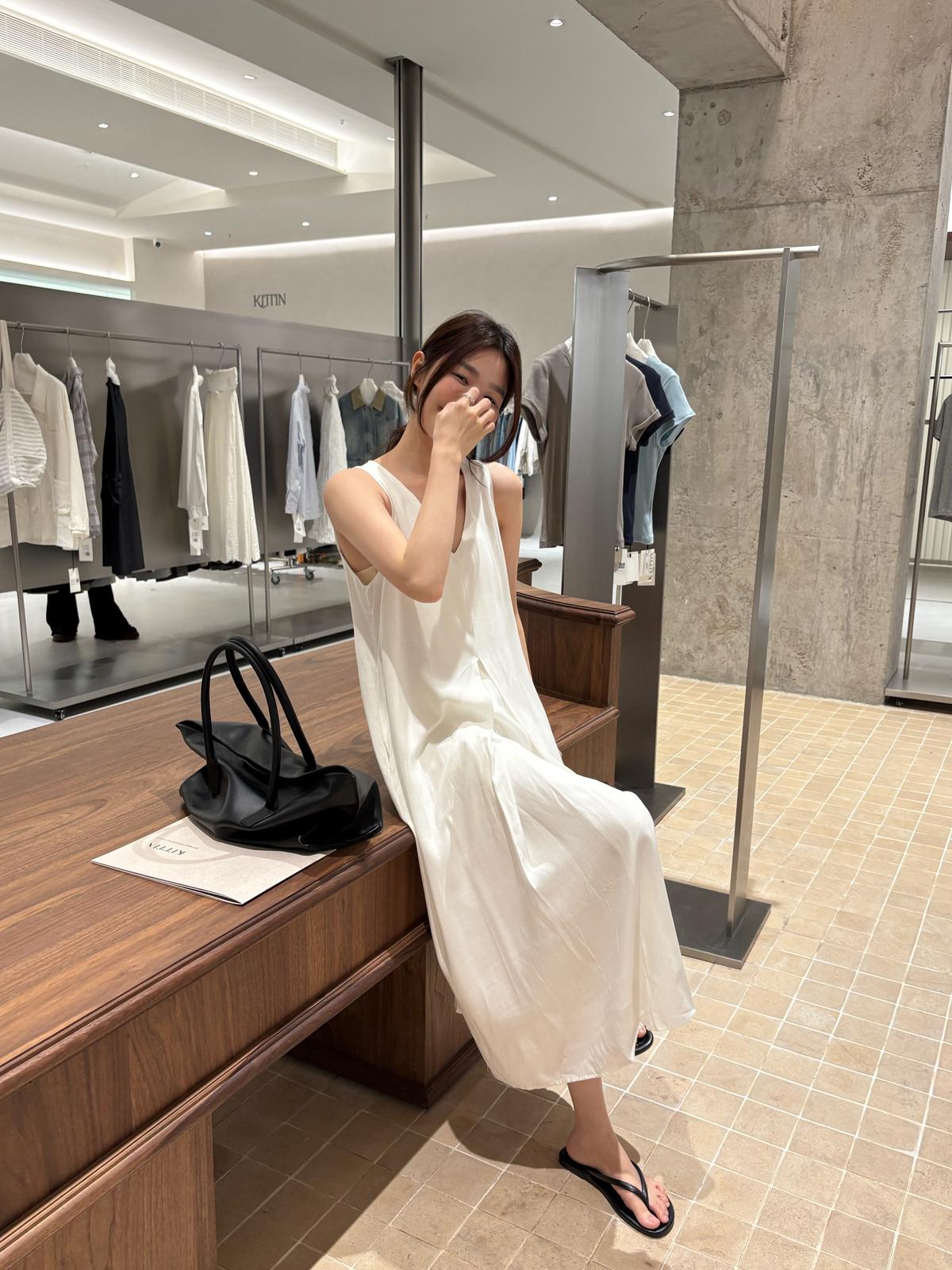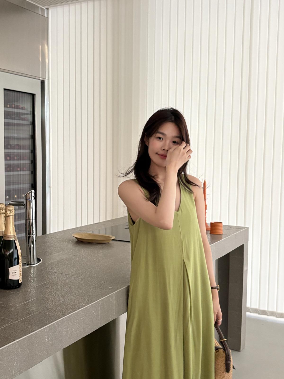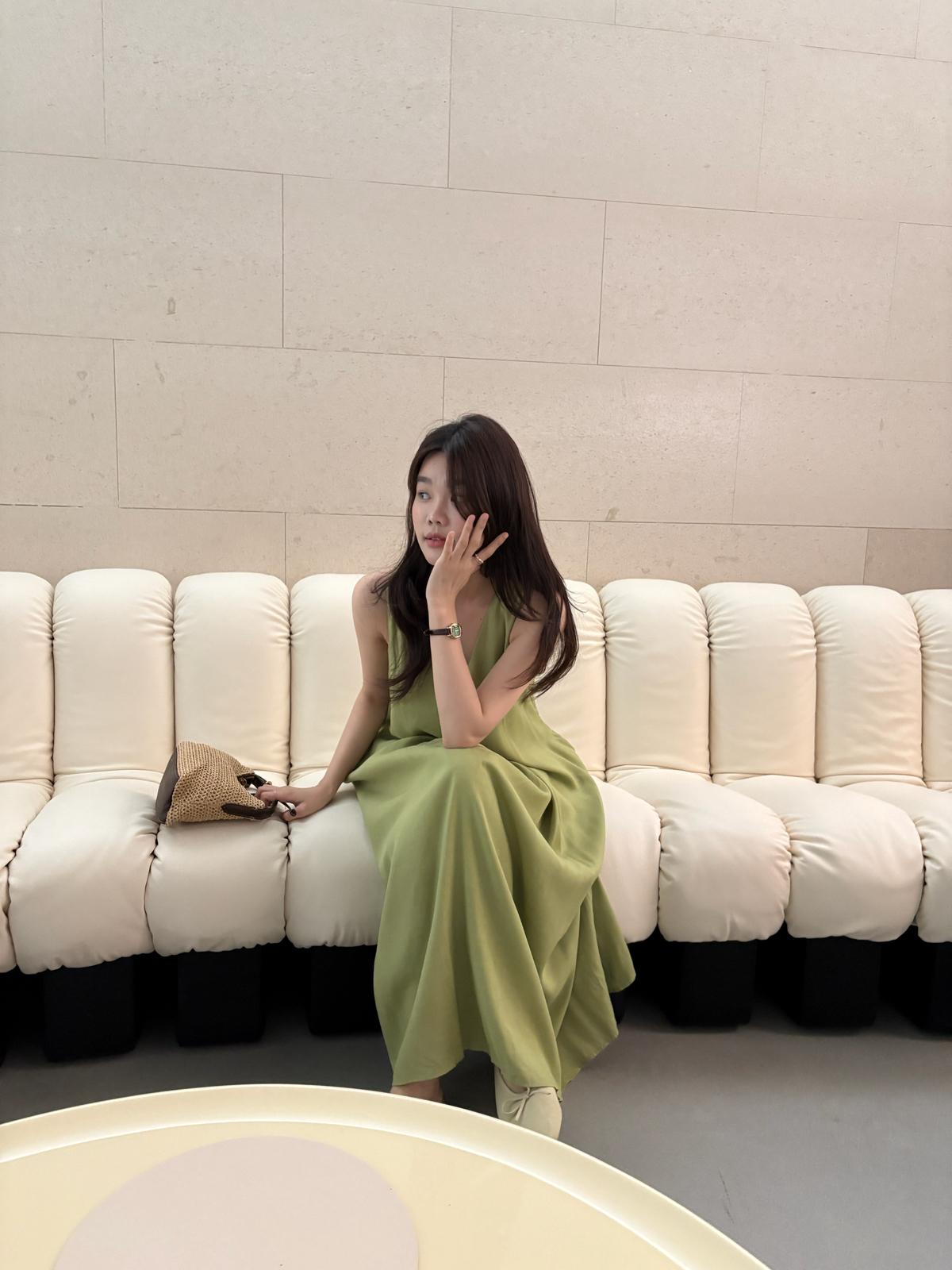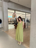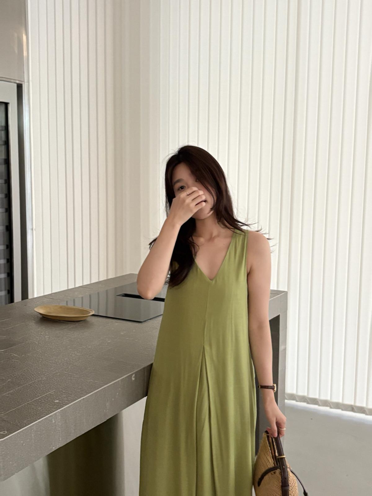 【C9061】高級感V領無袖長款休閒連衣裙