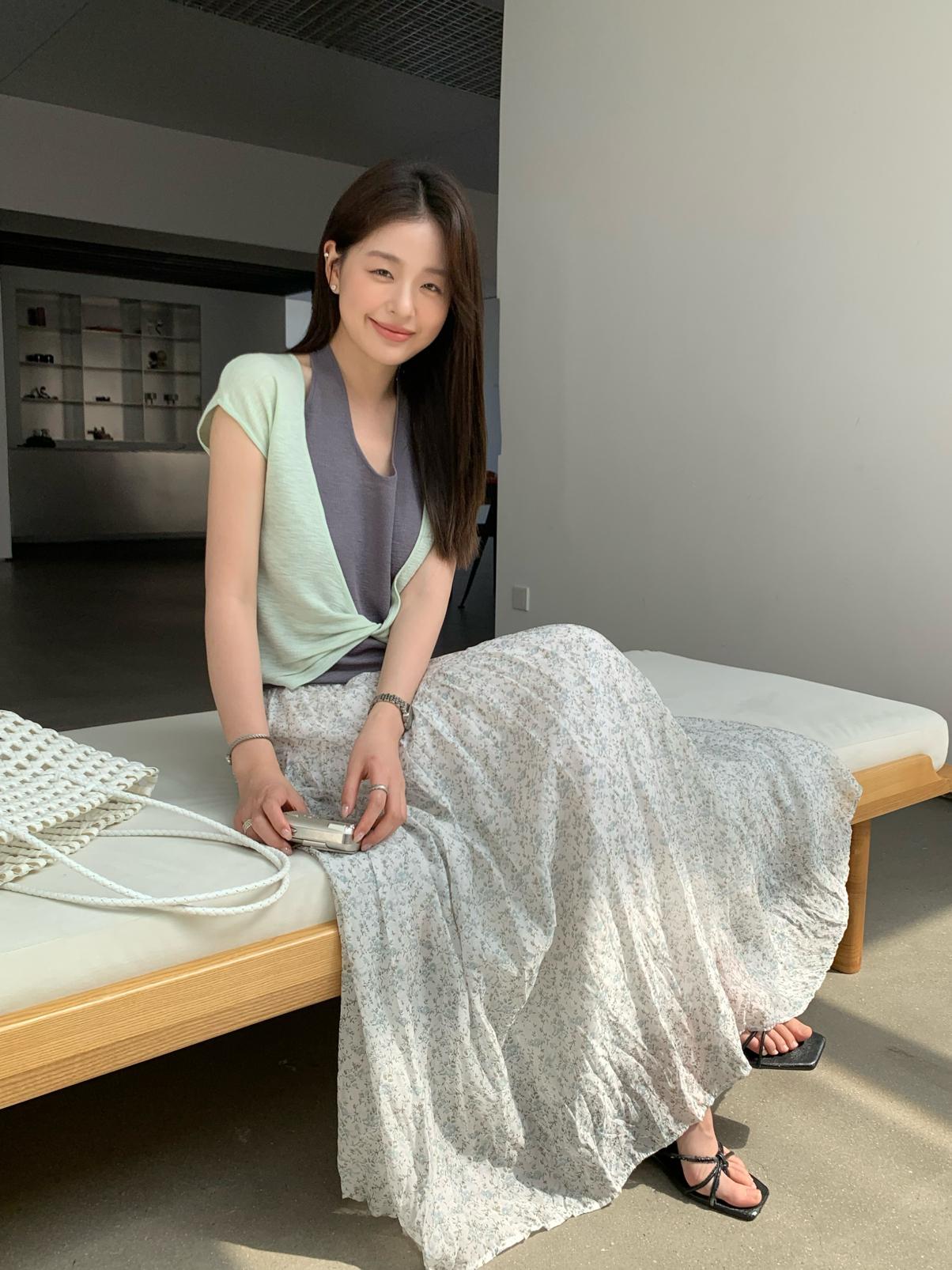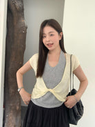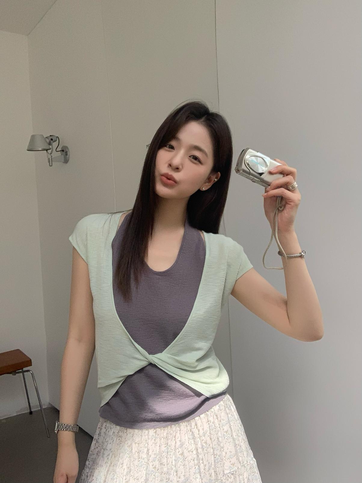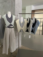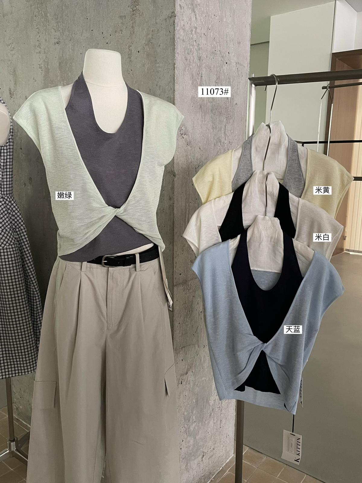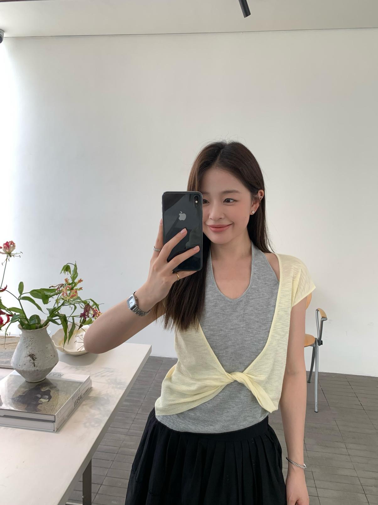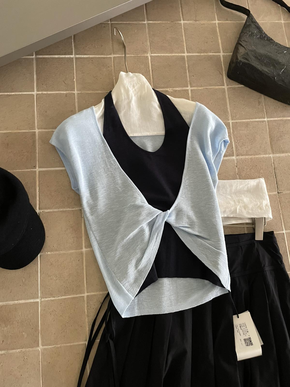 【C9064】韓系慵懶風掛脖假兩件設計感針織衫