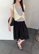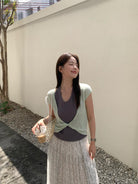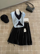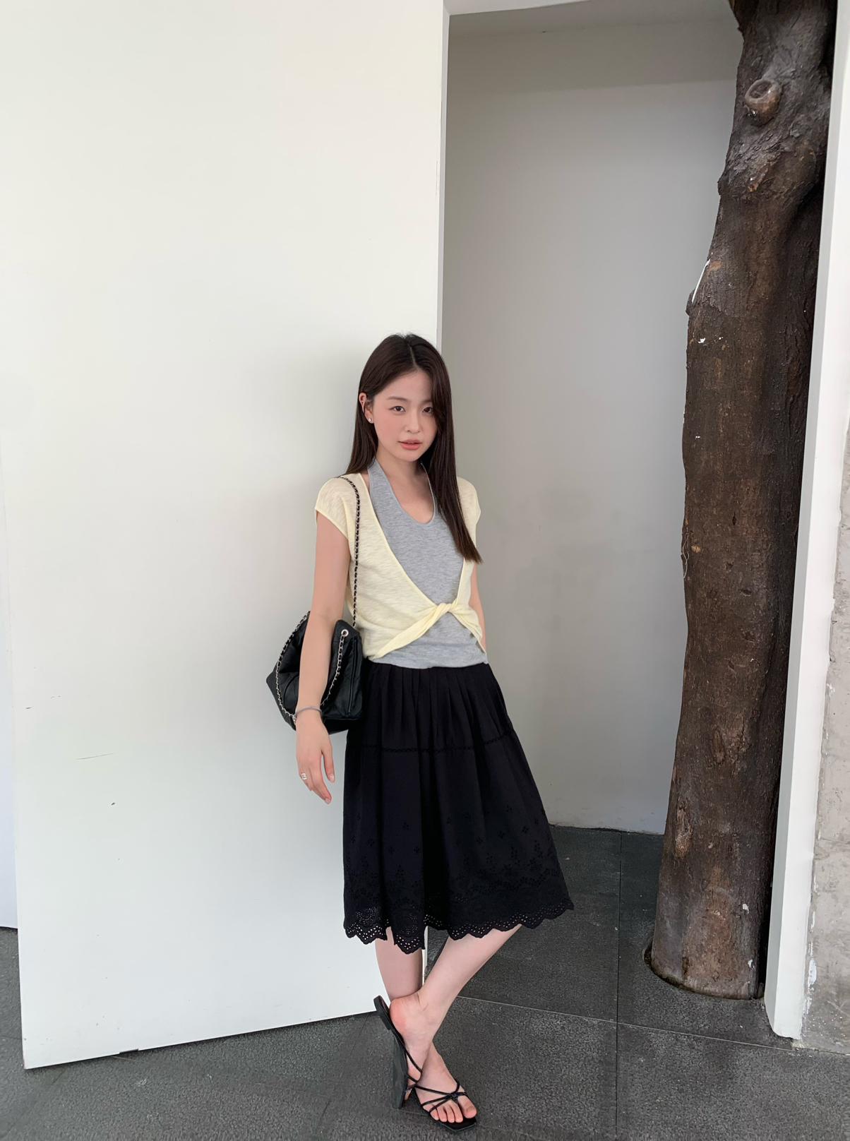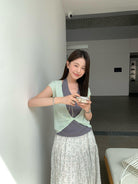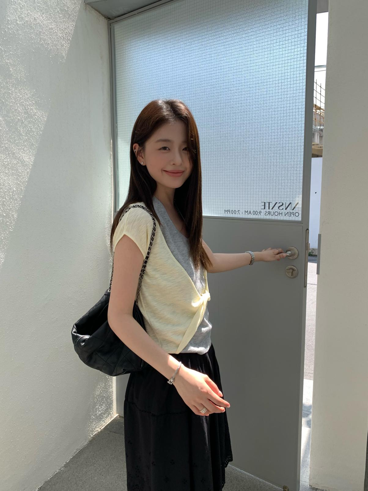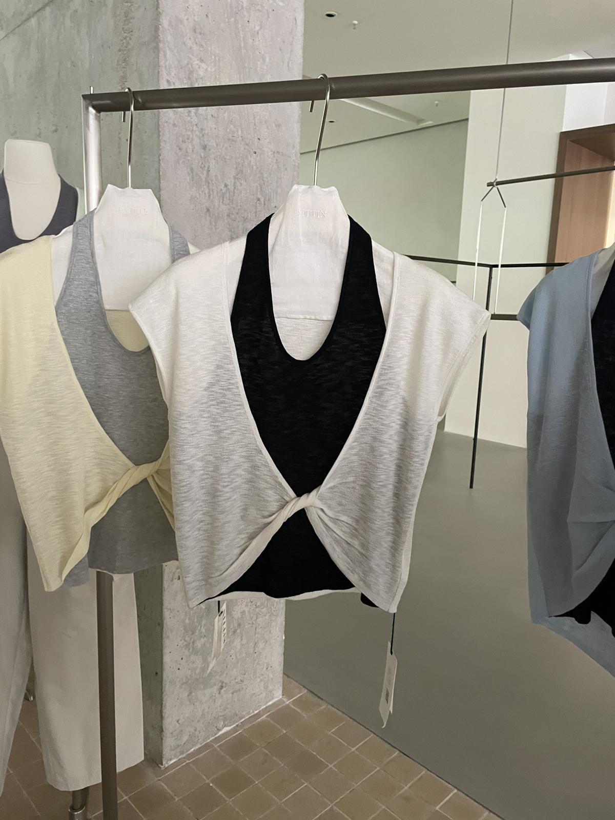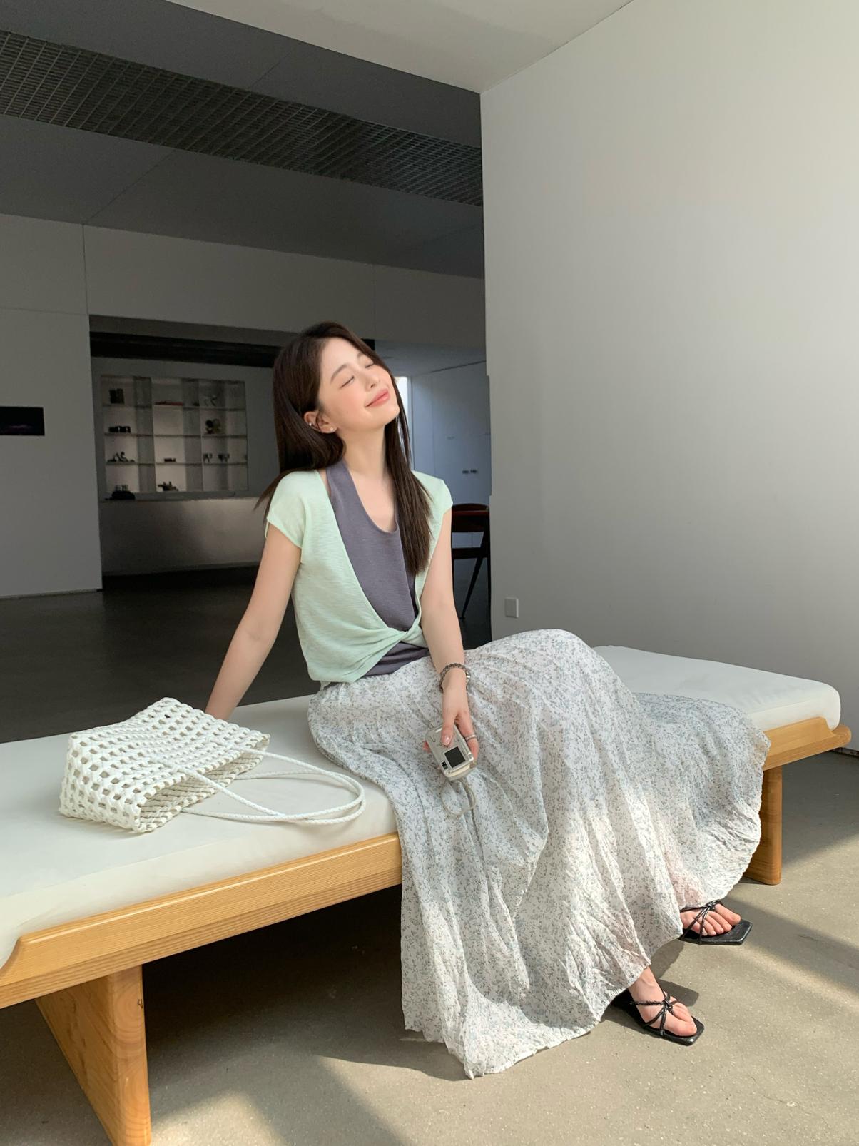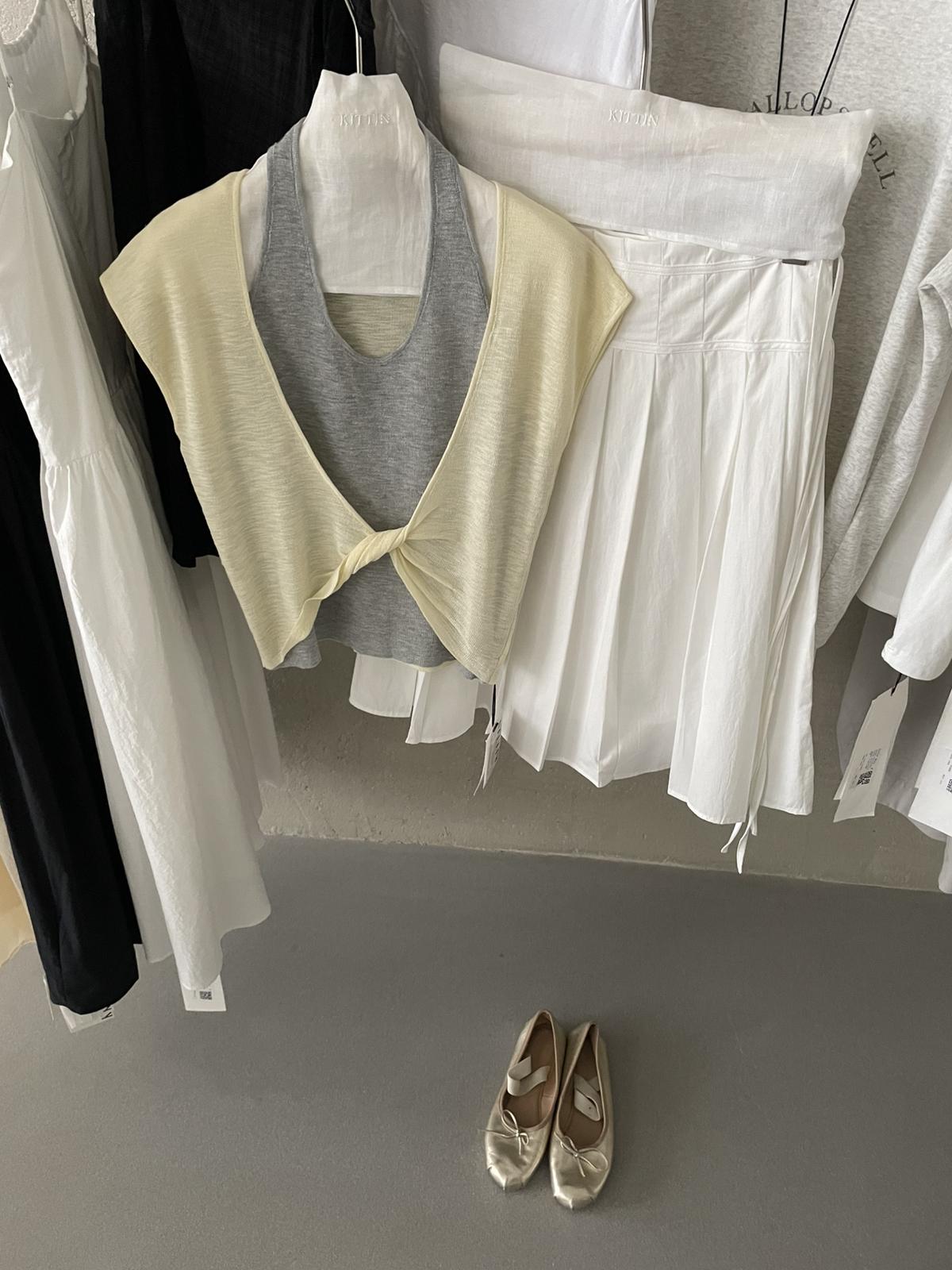 【C9064】韓系慵懶風掛脖假兩件設計感針織衫