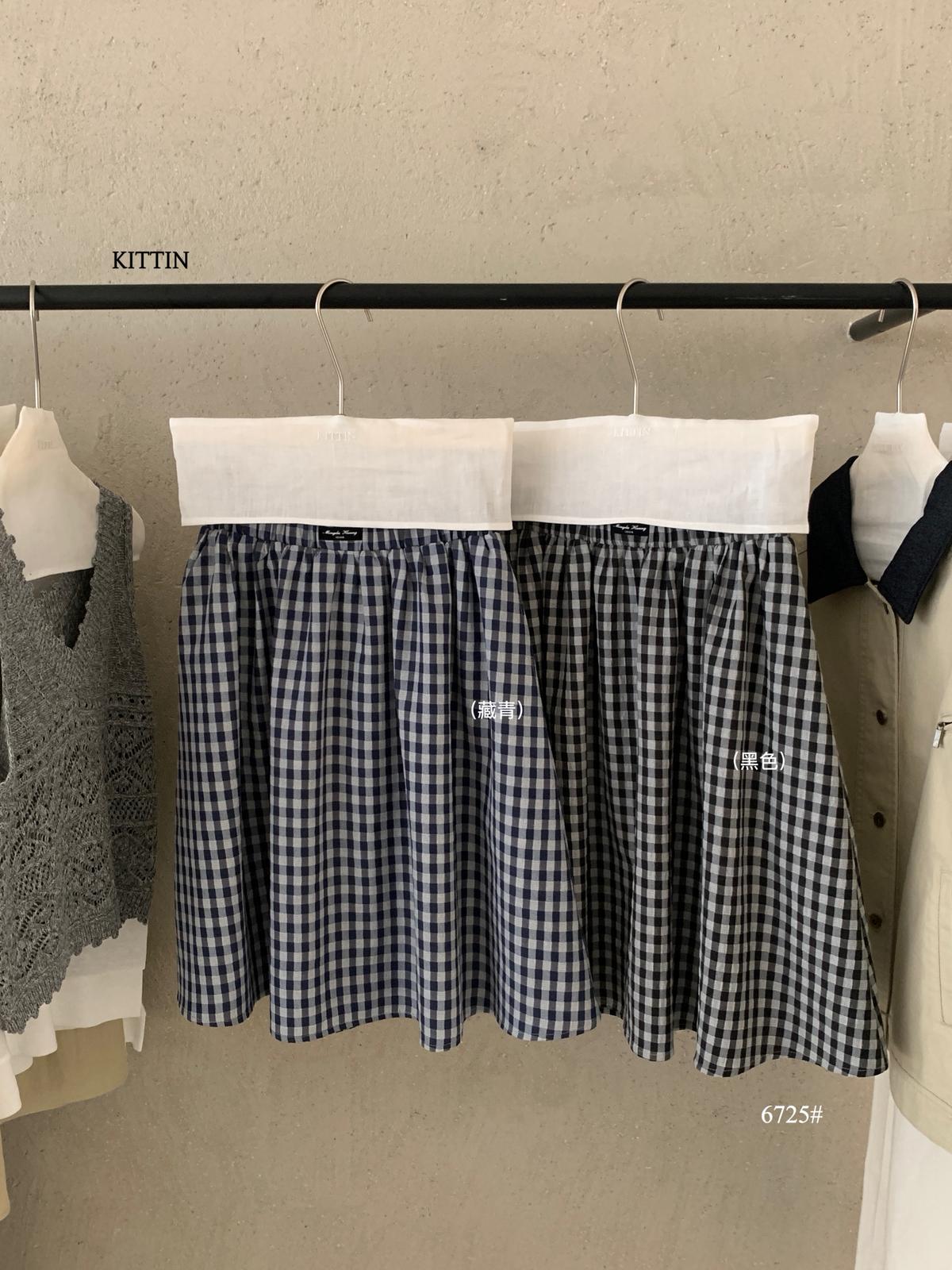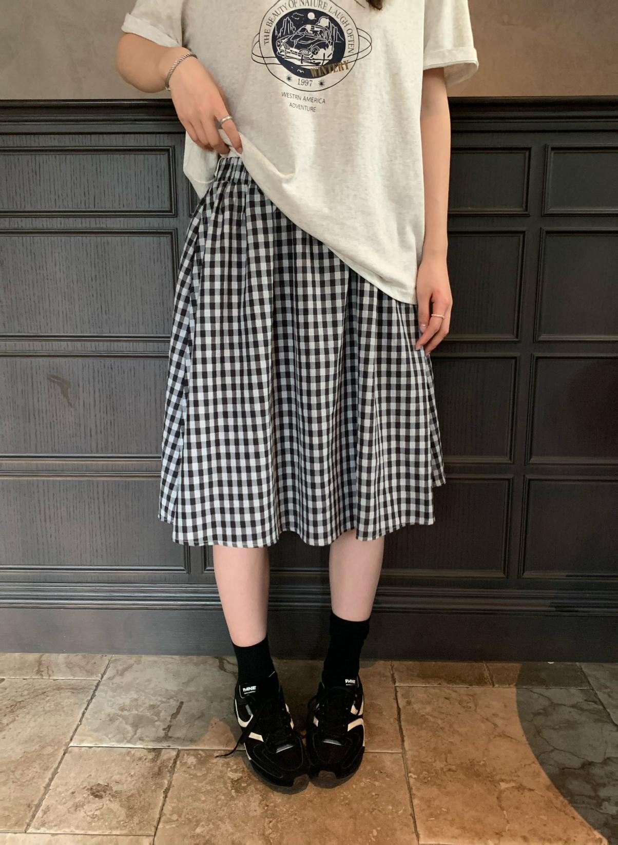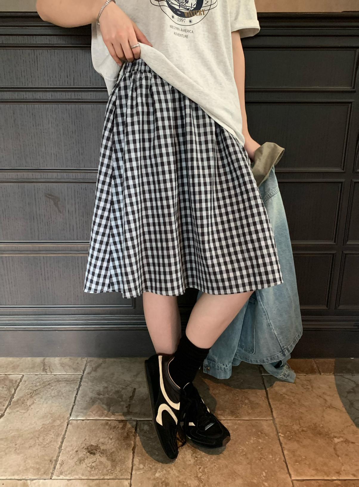 【C9065】韓系學院風格紋氛圍感鬆緊腰半身裙(含安全褲)