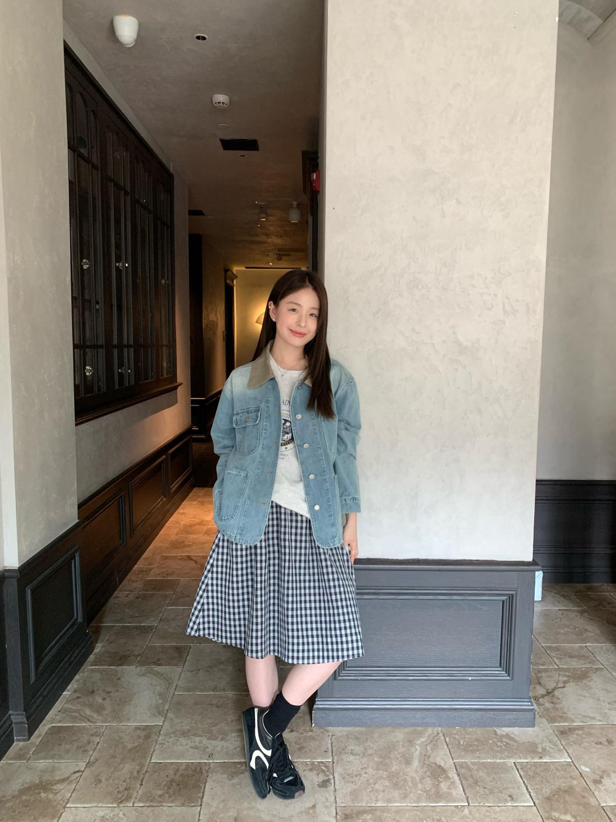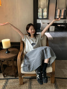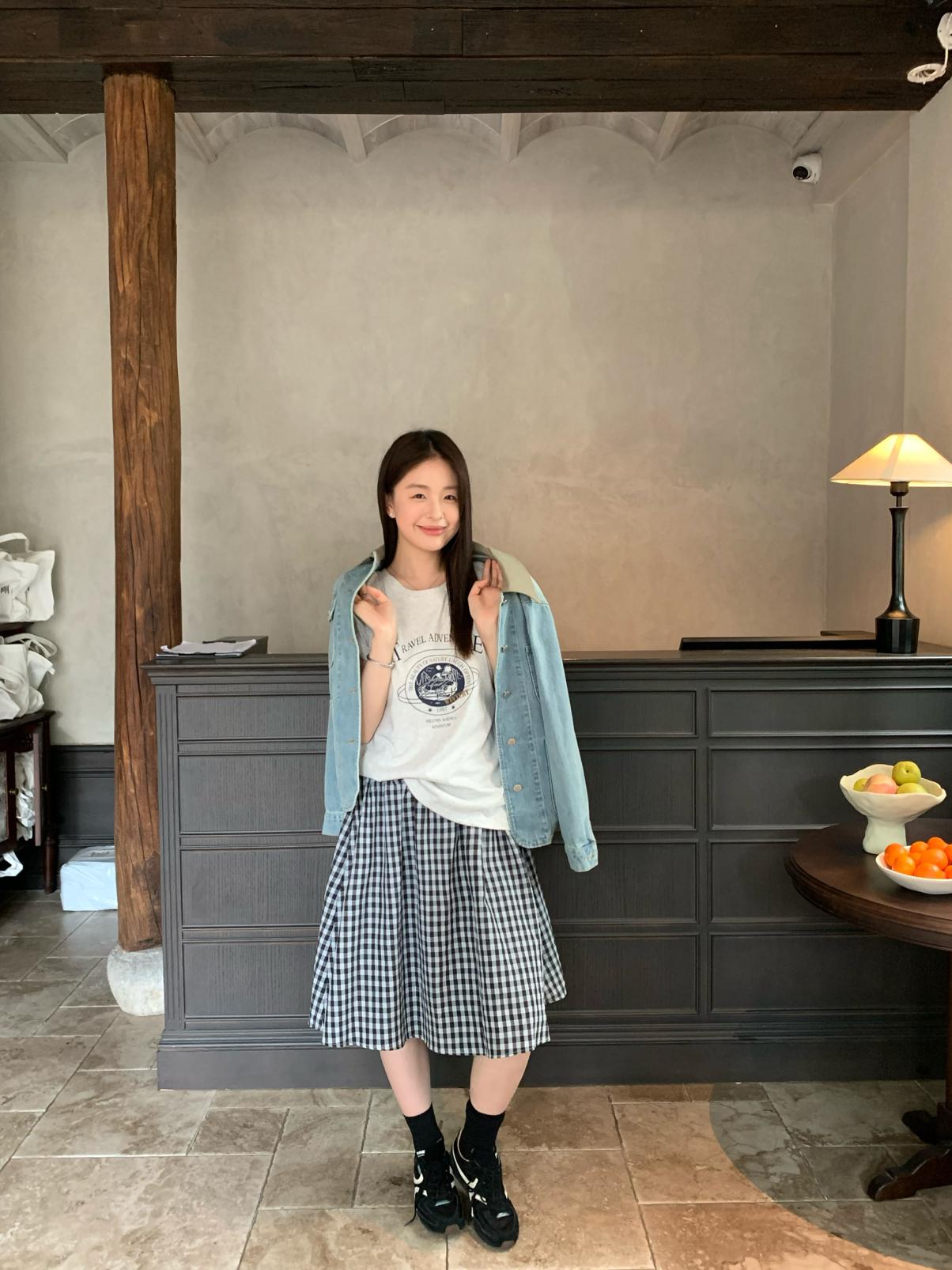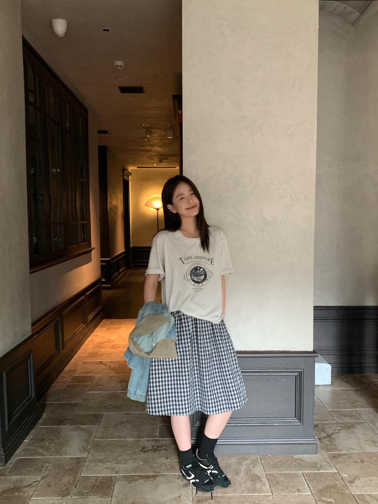 【C9065】韓系學院風格紋氛圍感鬆緊腰半身裙(含安全褲)