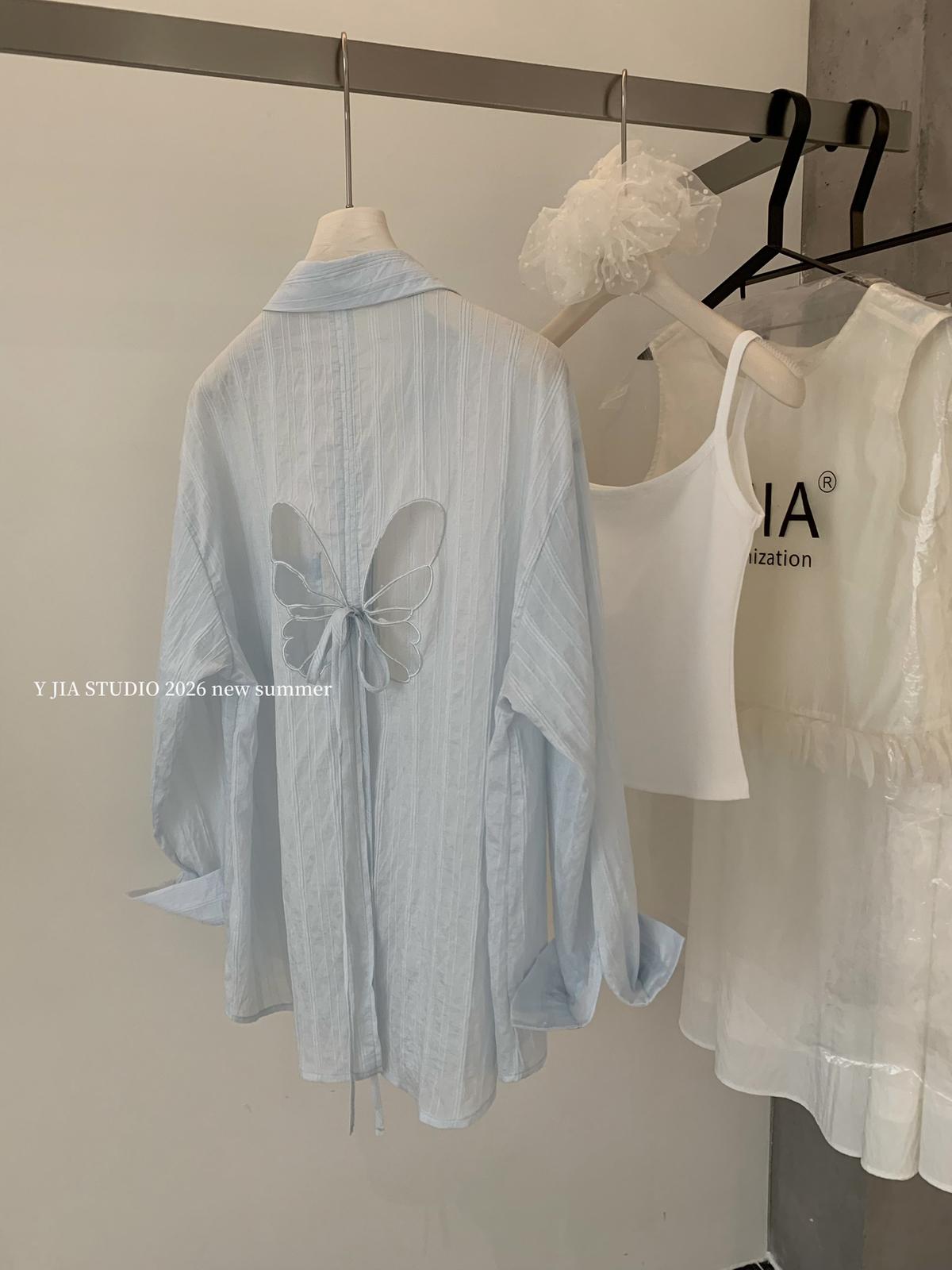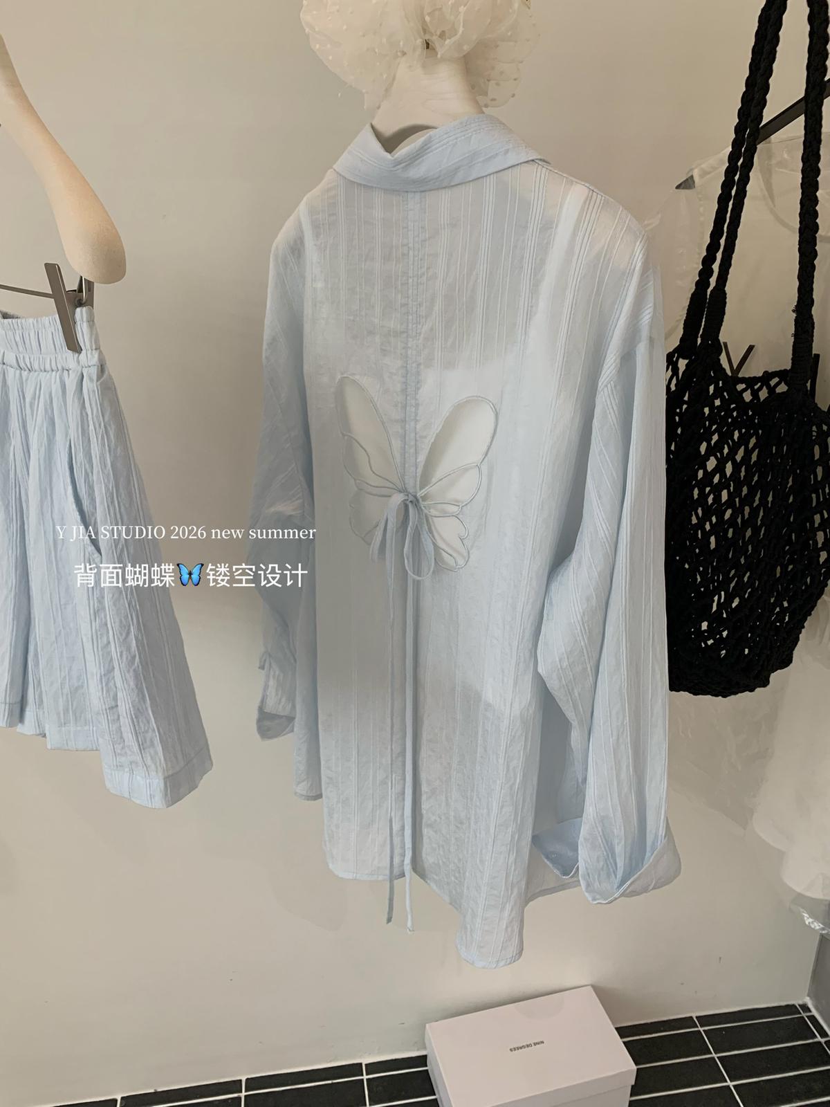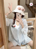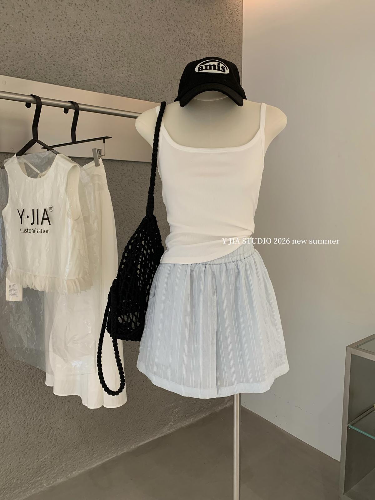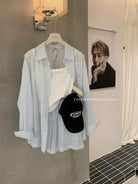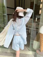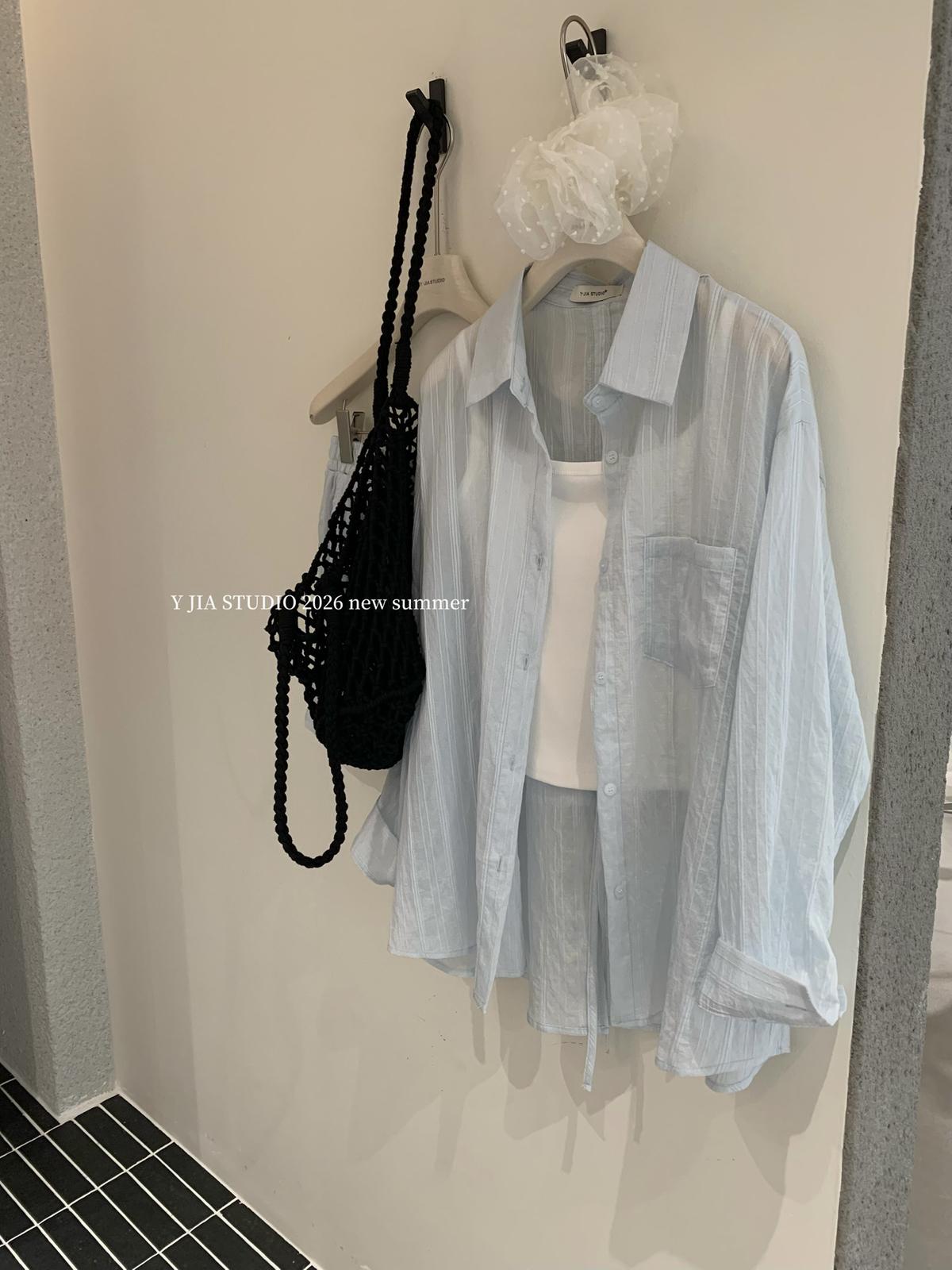 【C9068】冰萃夏日慵懶防曬衣防曬襯衫+顯瘦背心+鬆緊腰休閒短褲三件套套裝