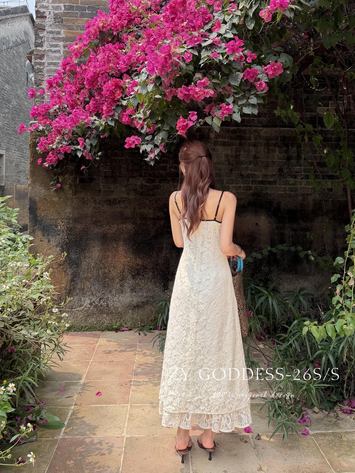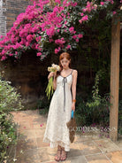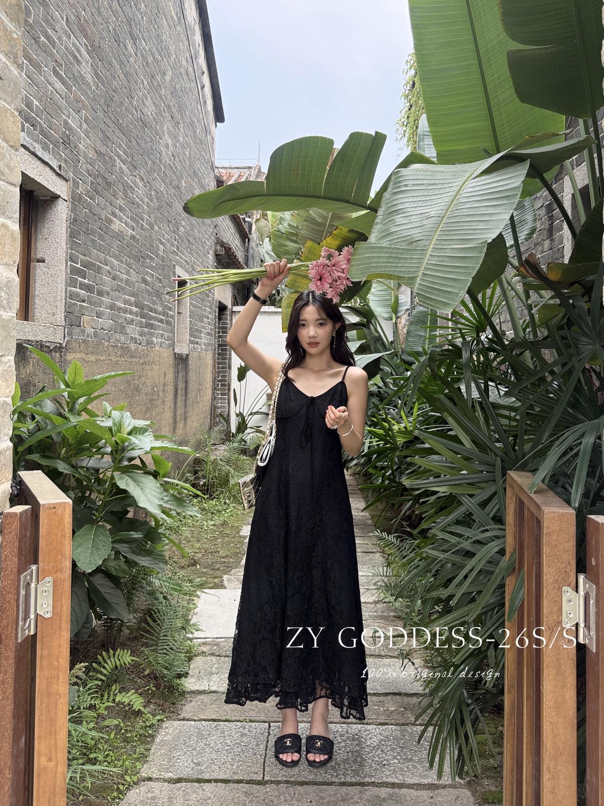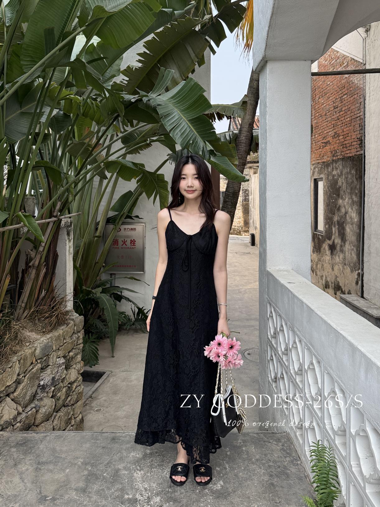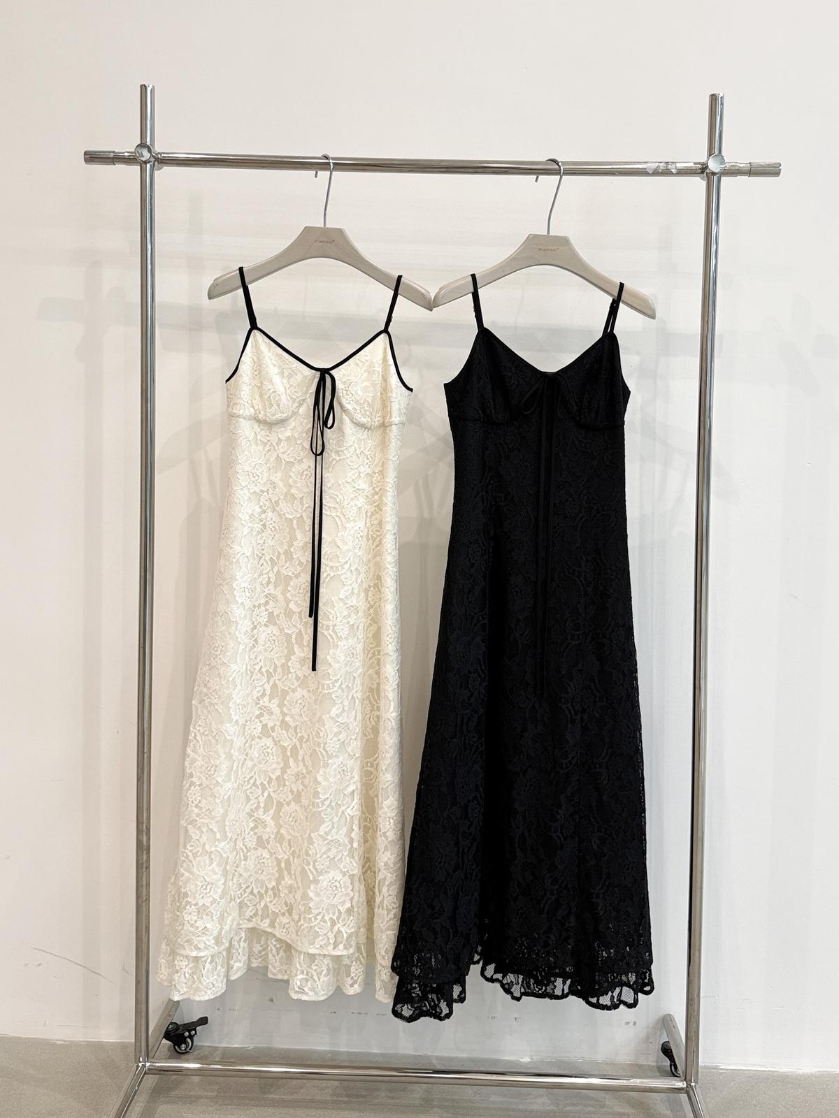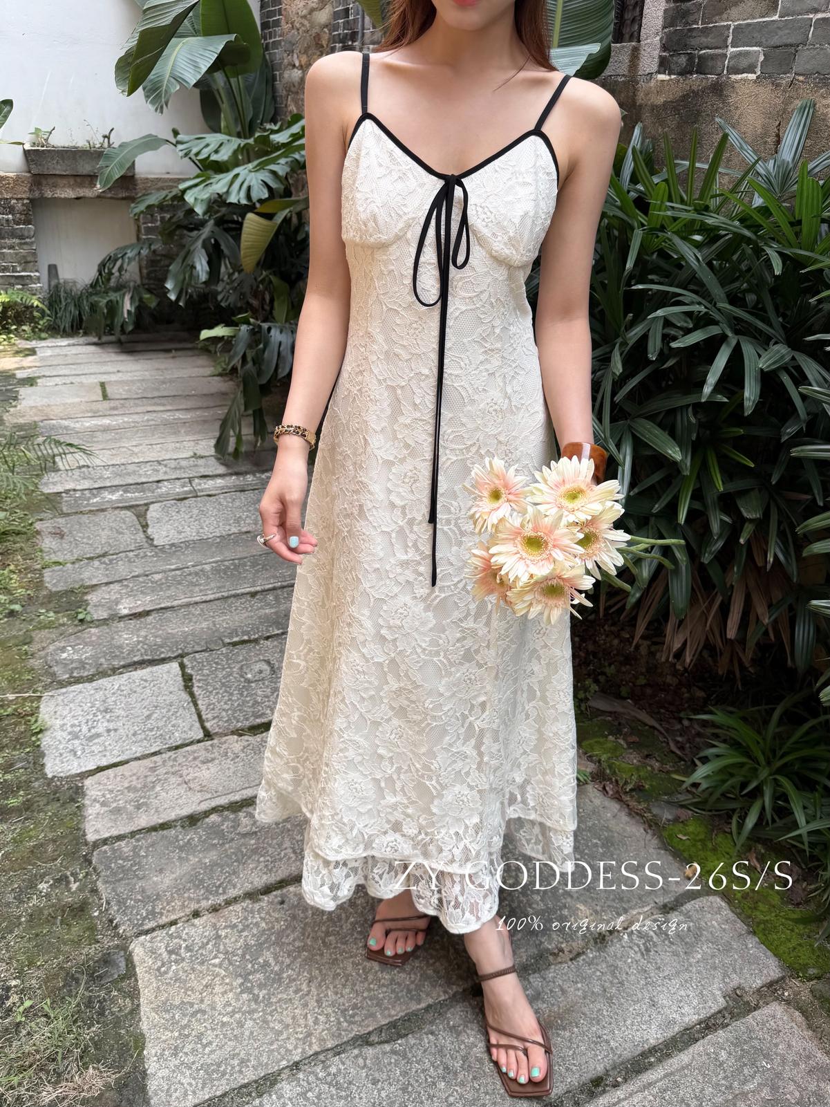 【C9075】富家千金優雅赫本風氣質重工蕾絲吊帶連衣裙