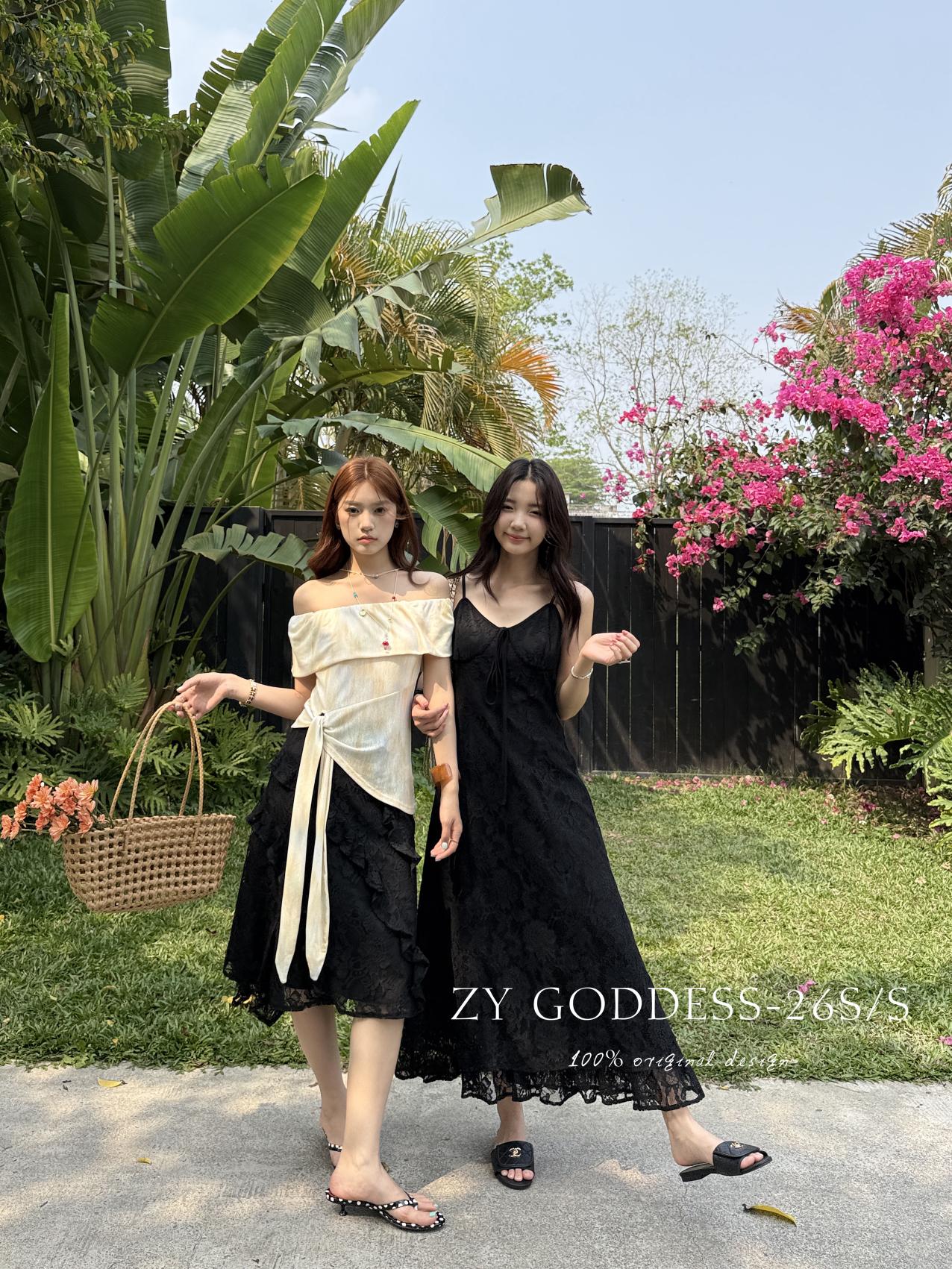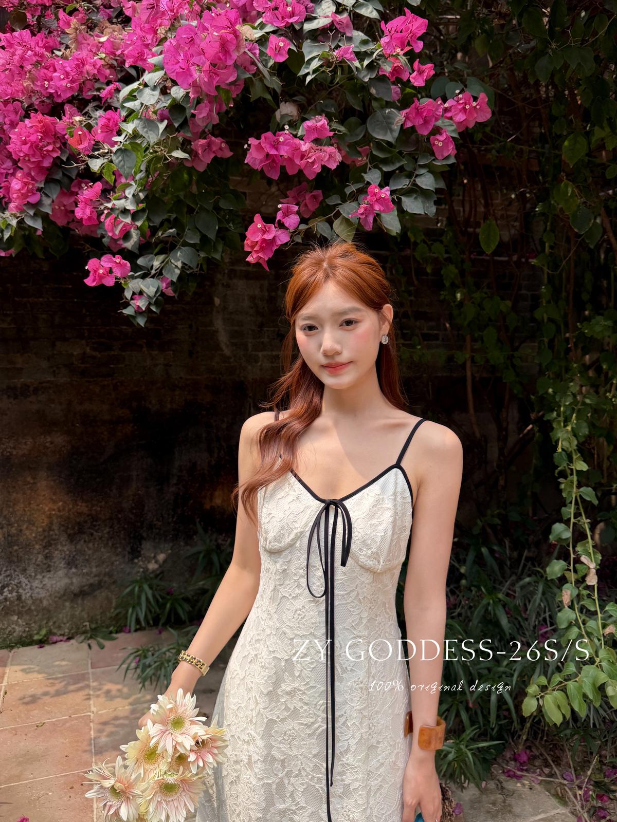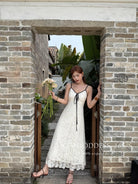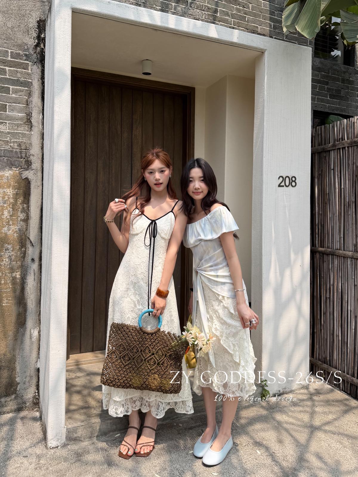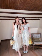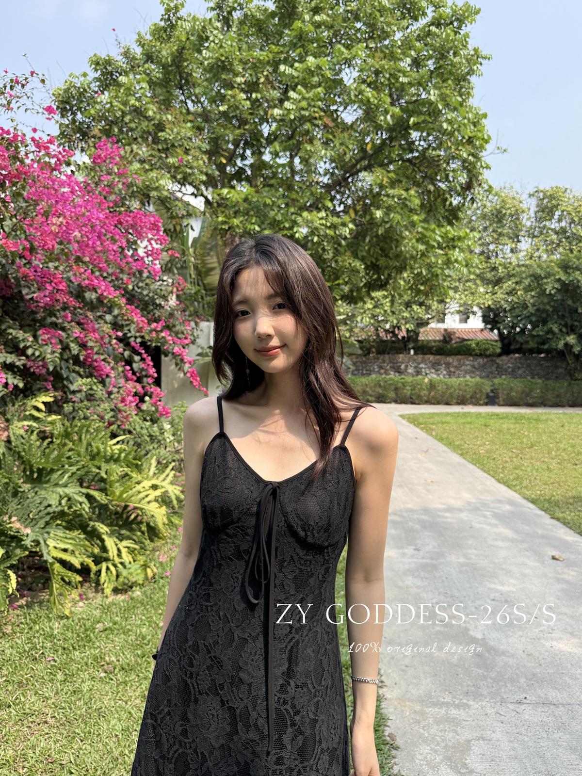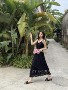 【C9075】富家千金優雅赫本風氣質重工蕾絲吊帶連衣裙