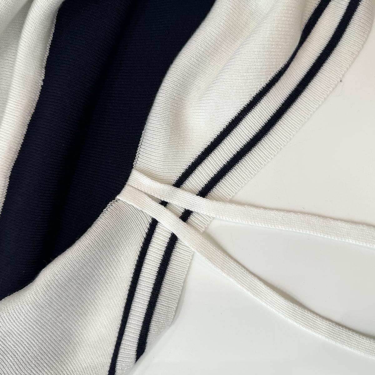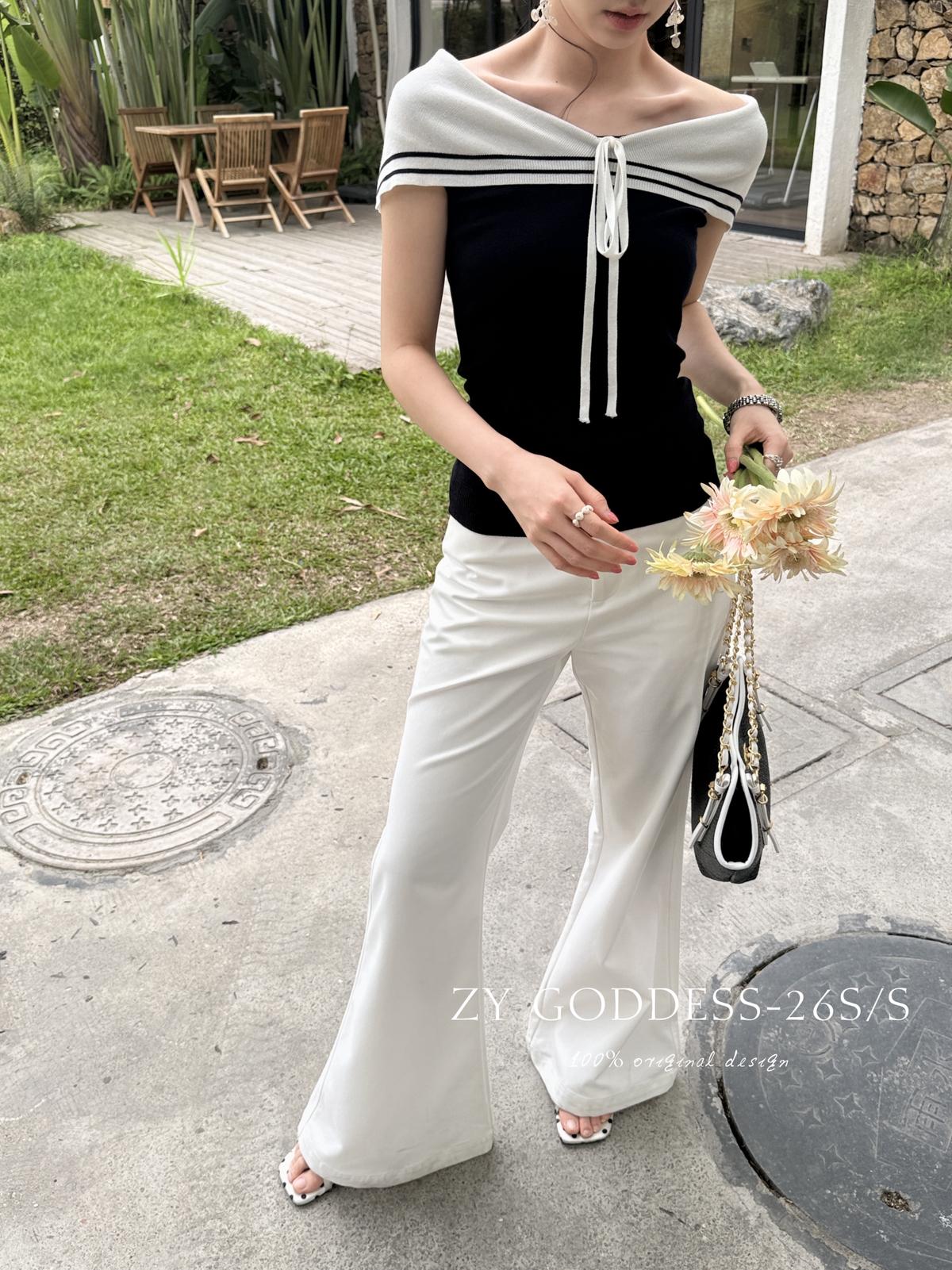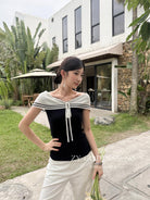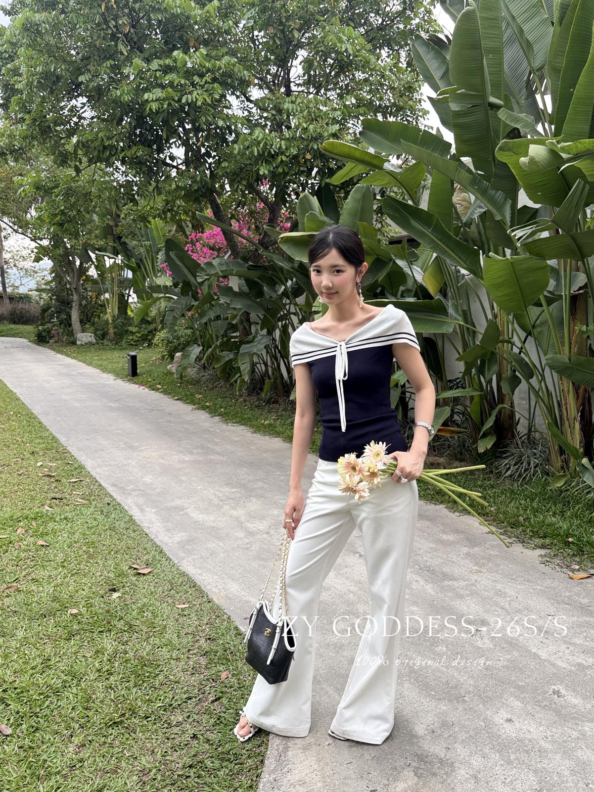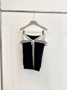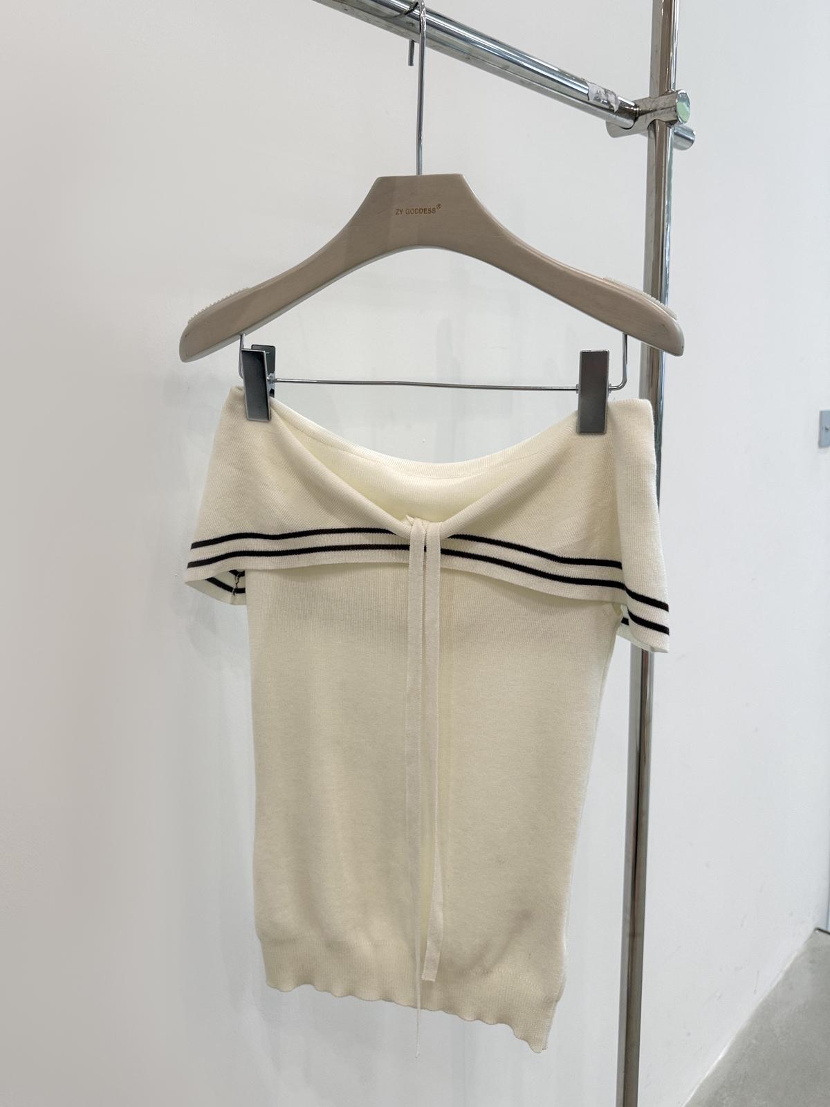【C9076】海航度假風V領繫帶海軍翻領氣質針織小衫