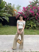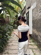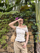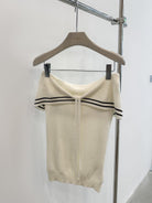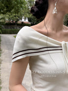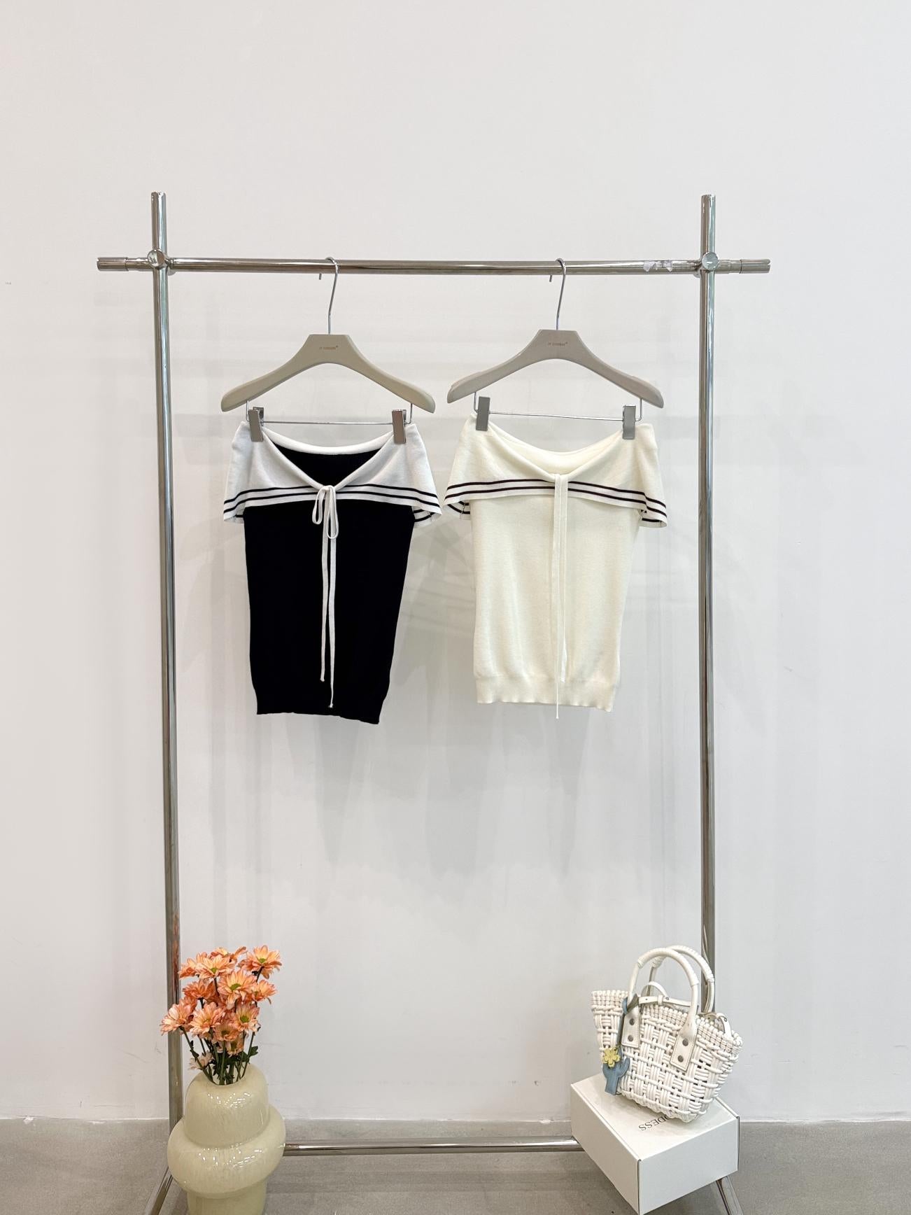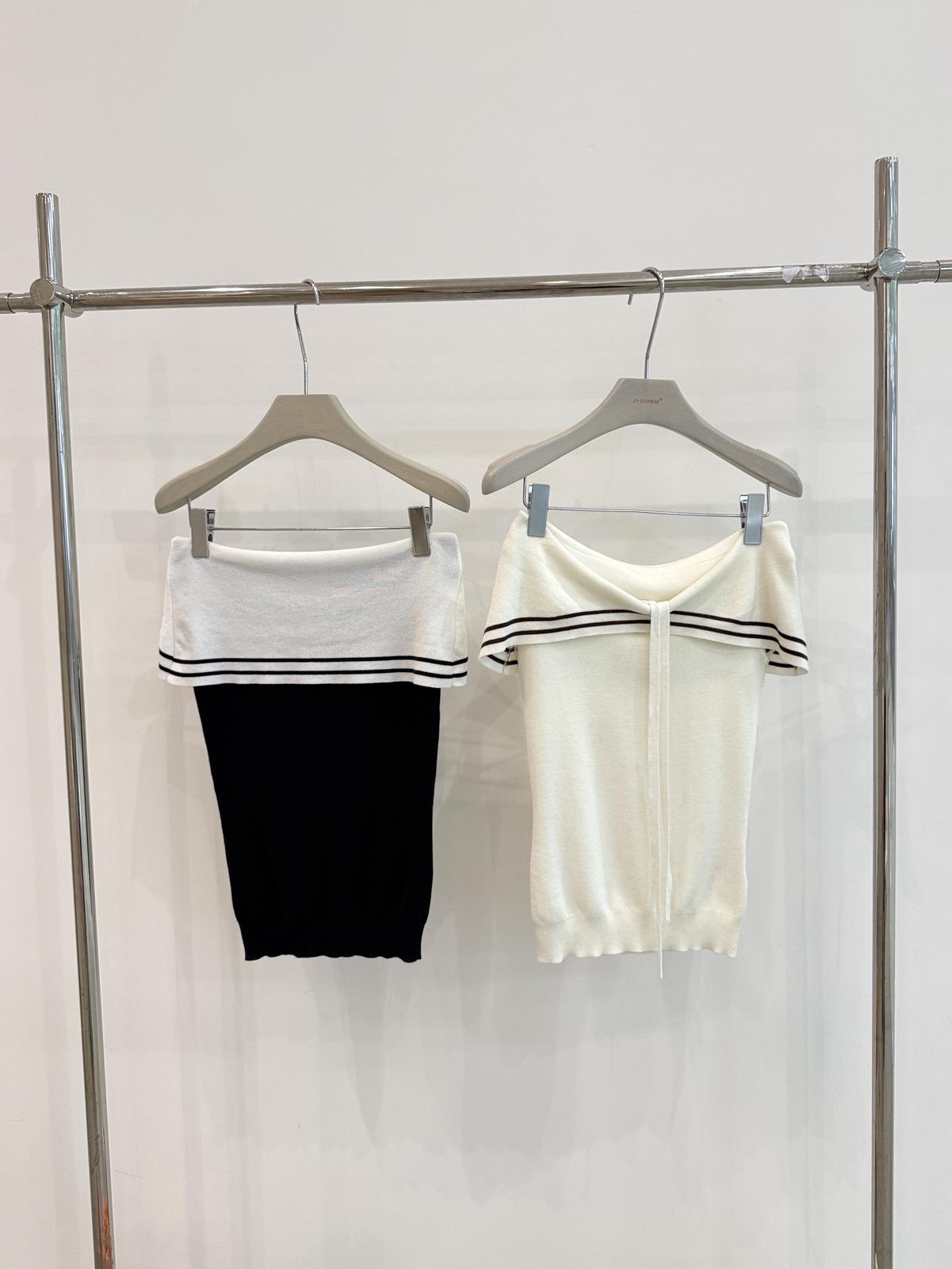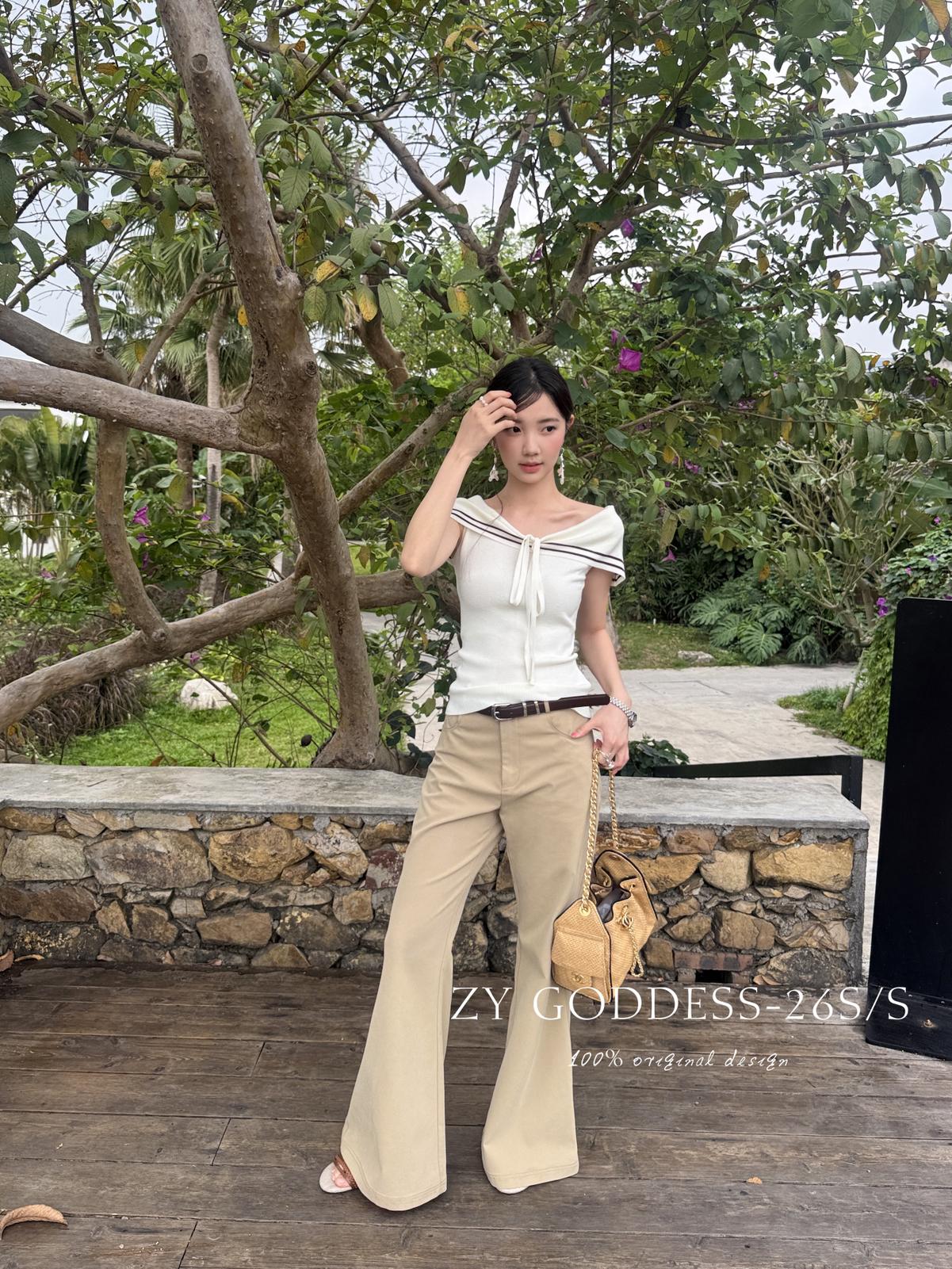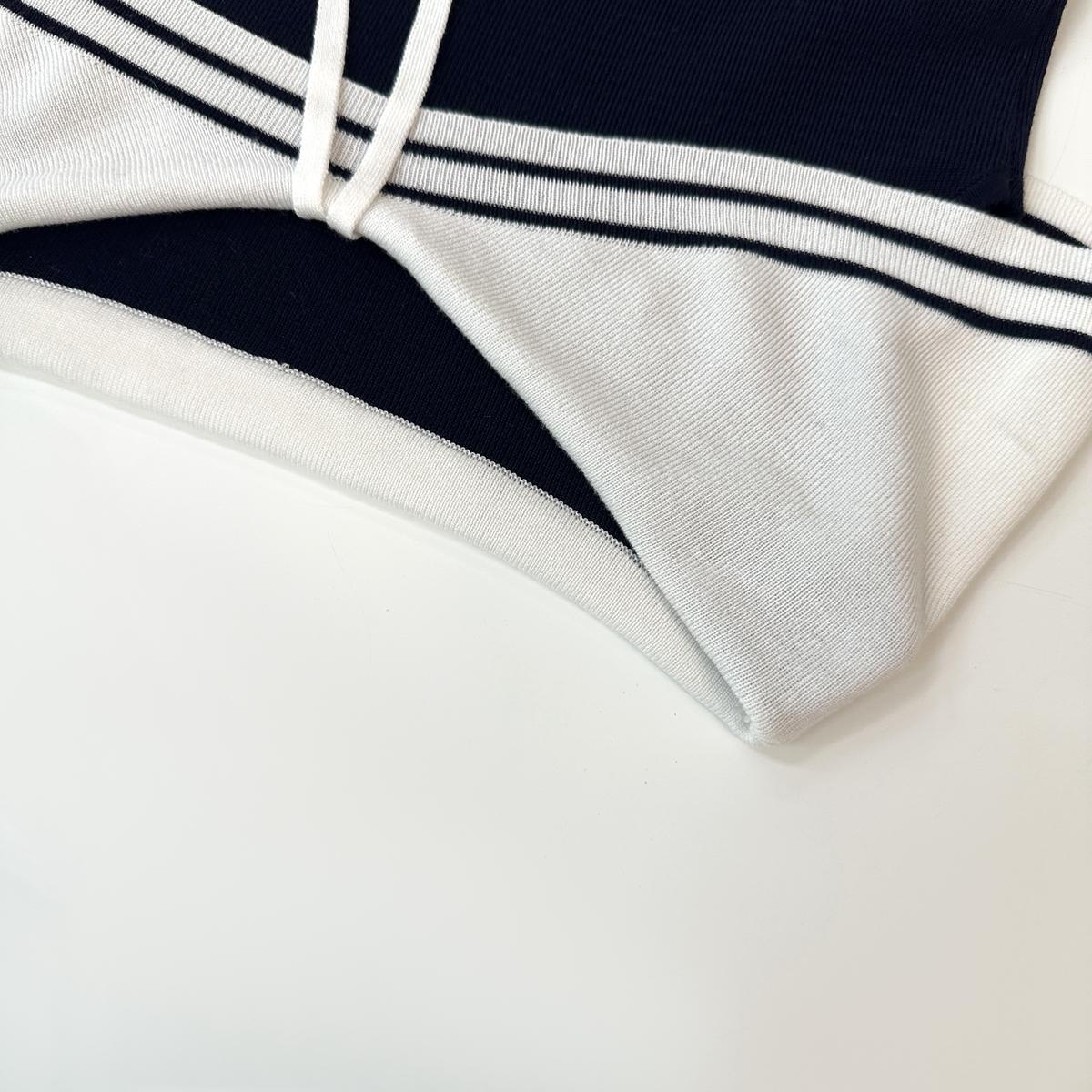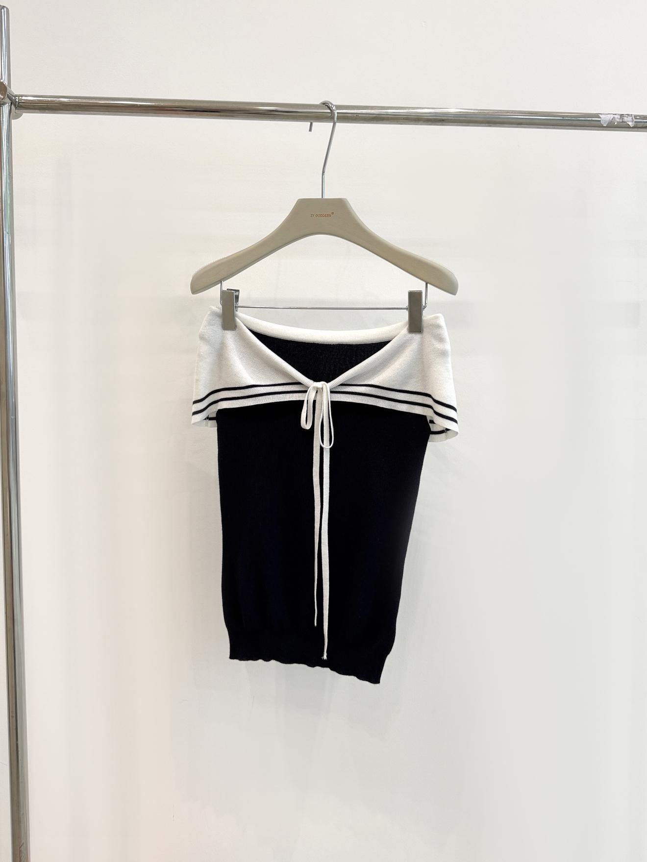 【C9076】海航度假風V領繫帶海軍翻領氣質針織小衫