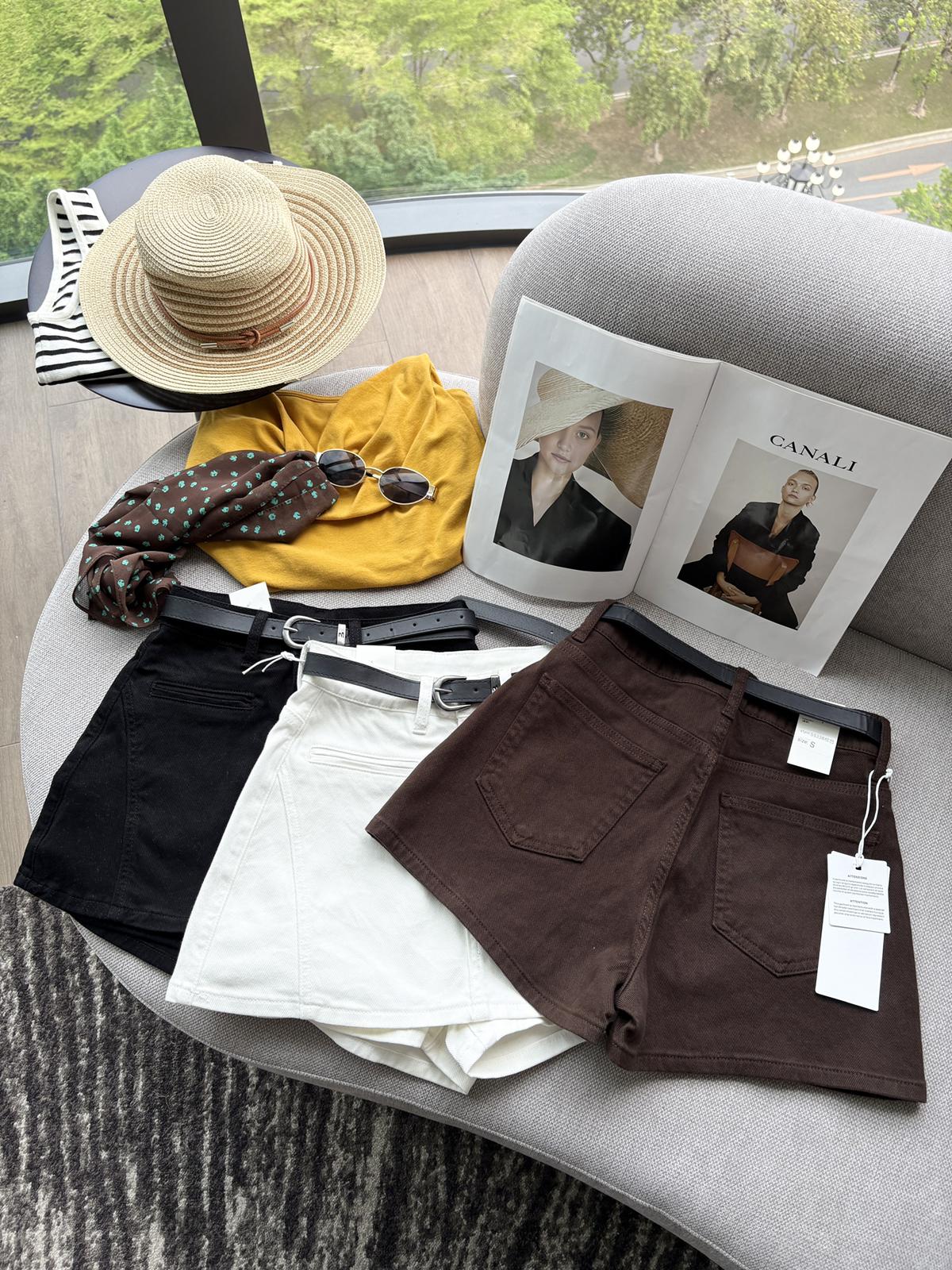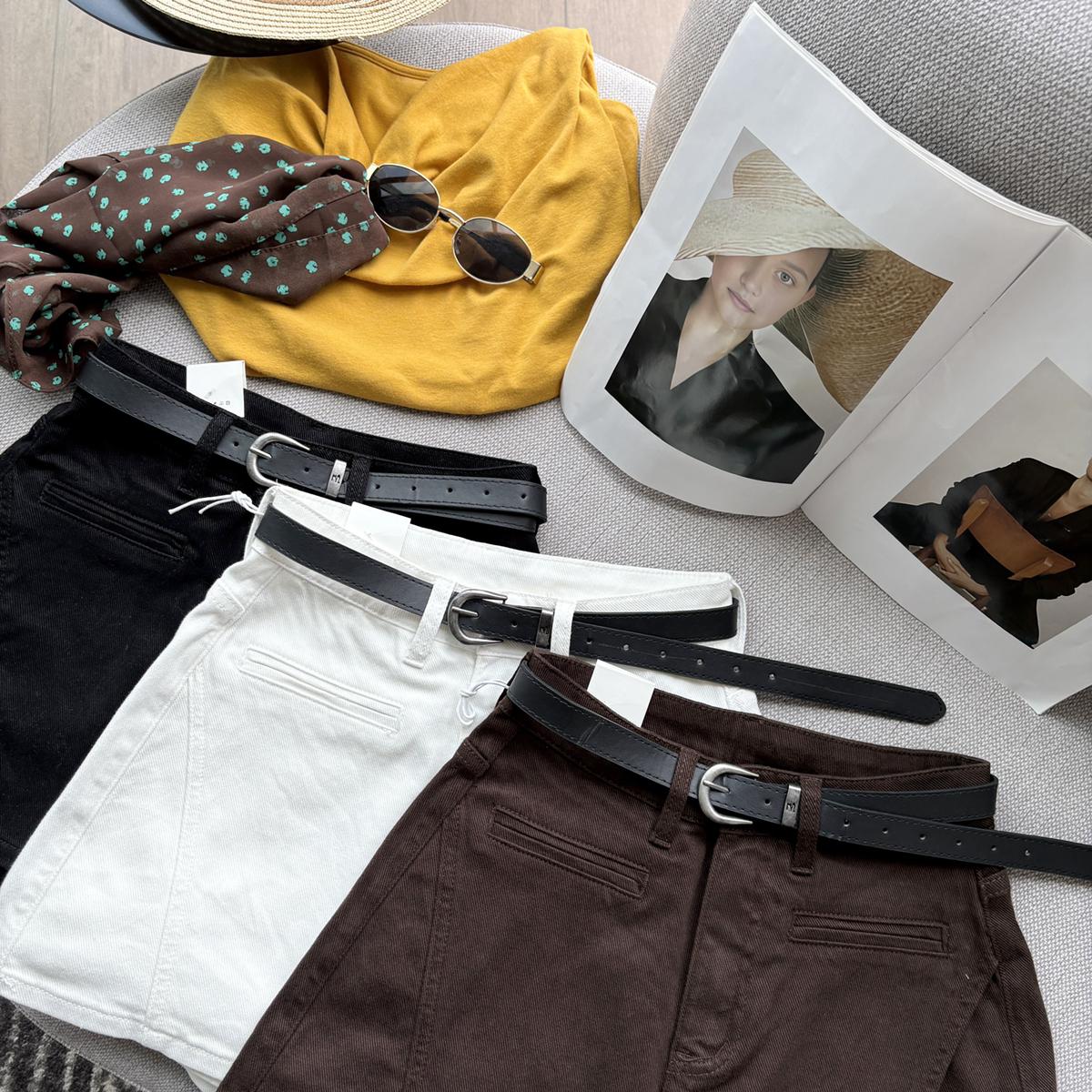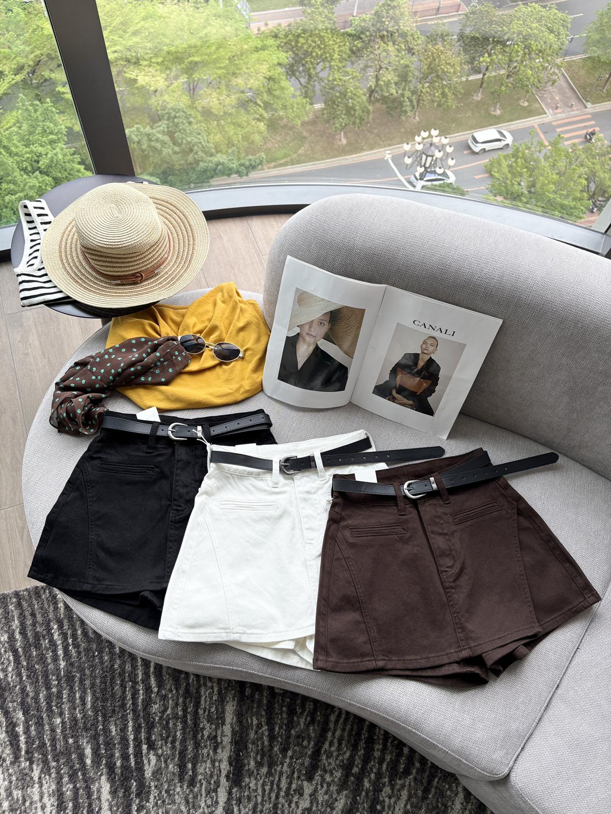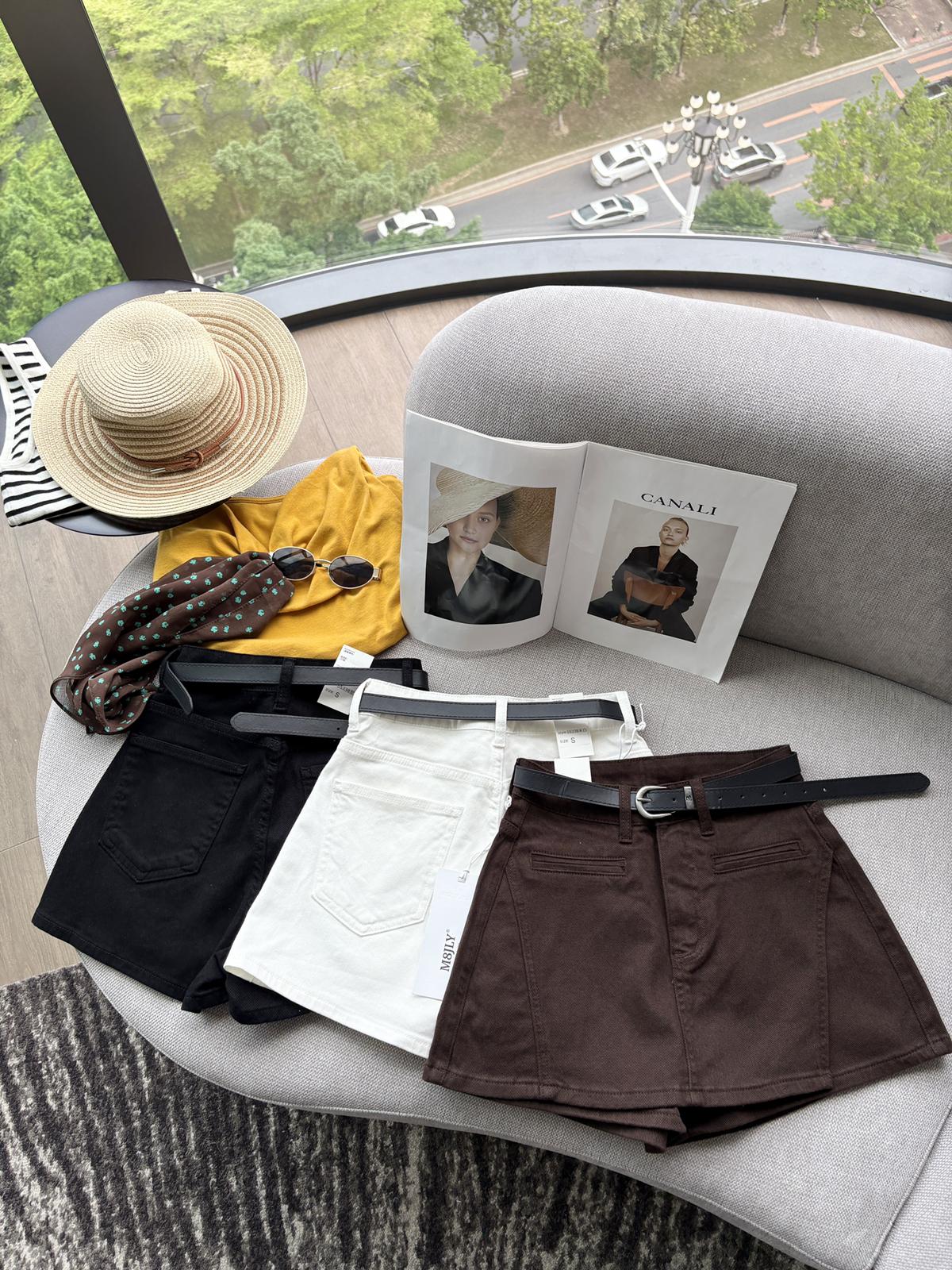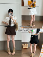 【C9077】夏季復古時尚百搭顯瘦修身A字版彈力短款裙褲(配腰帶)
