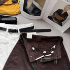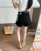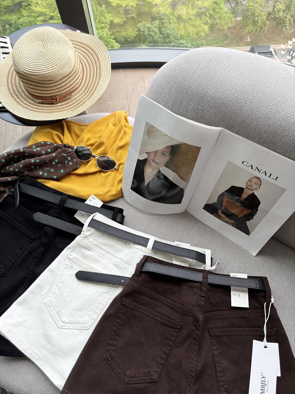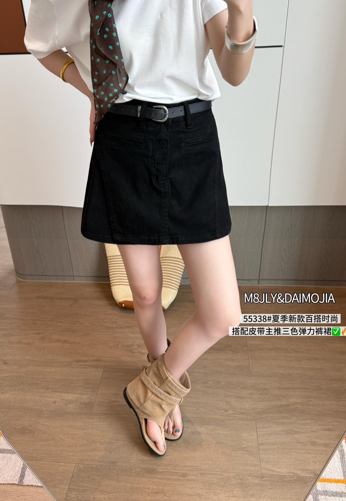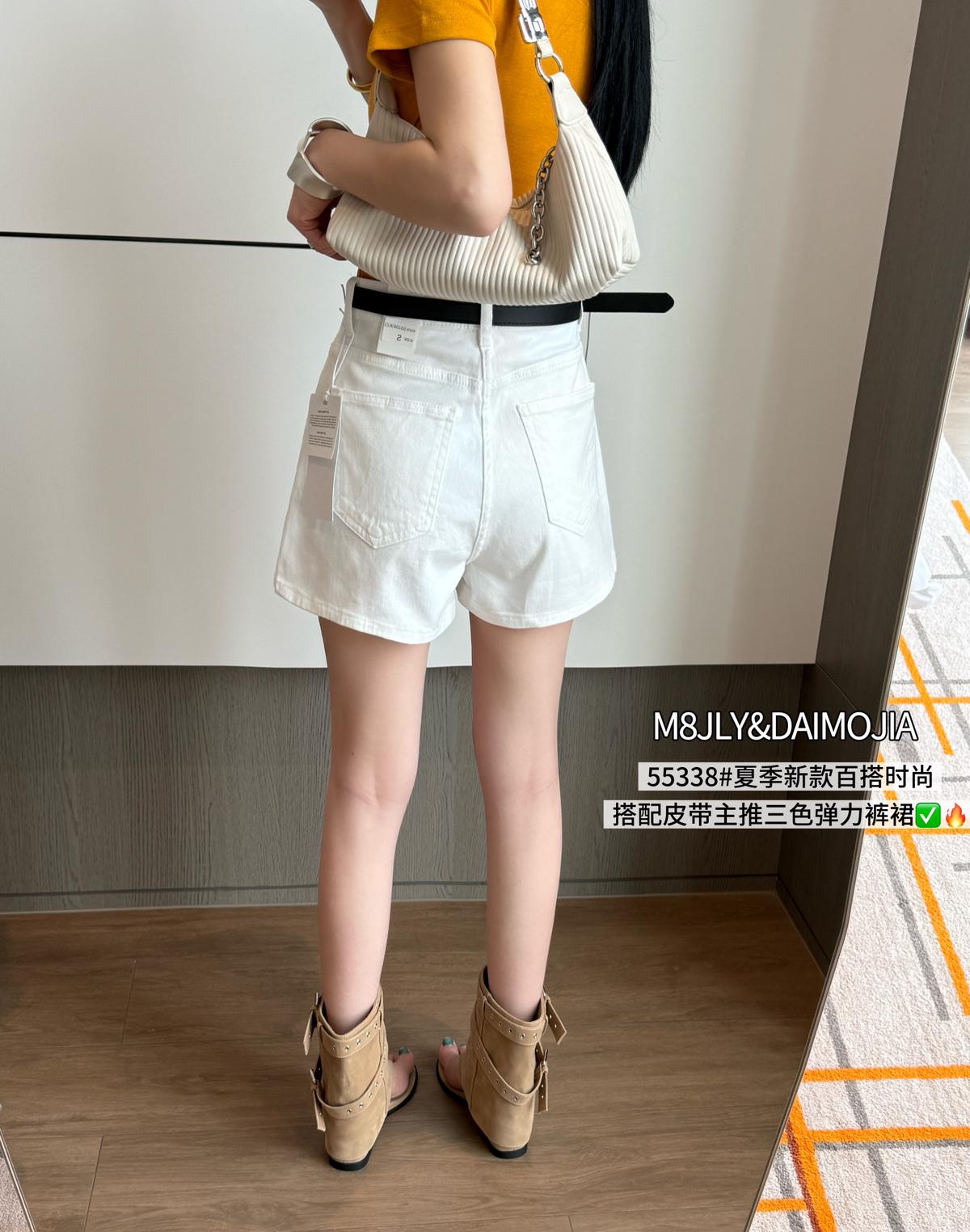 【C9077】夏季復古時尚百搭顯瘦修身A字版彈力短款裙褲(配腰帶)