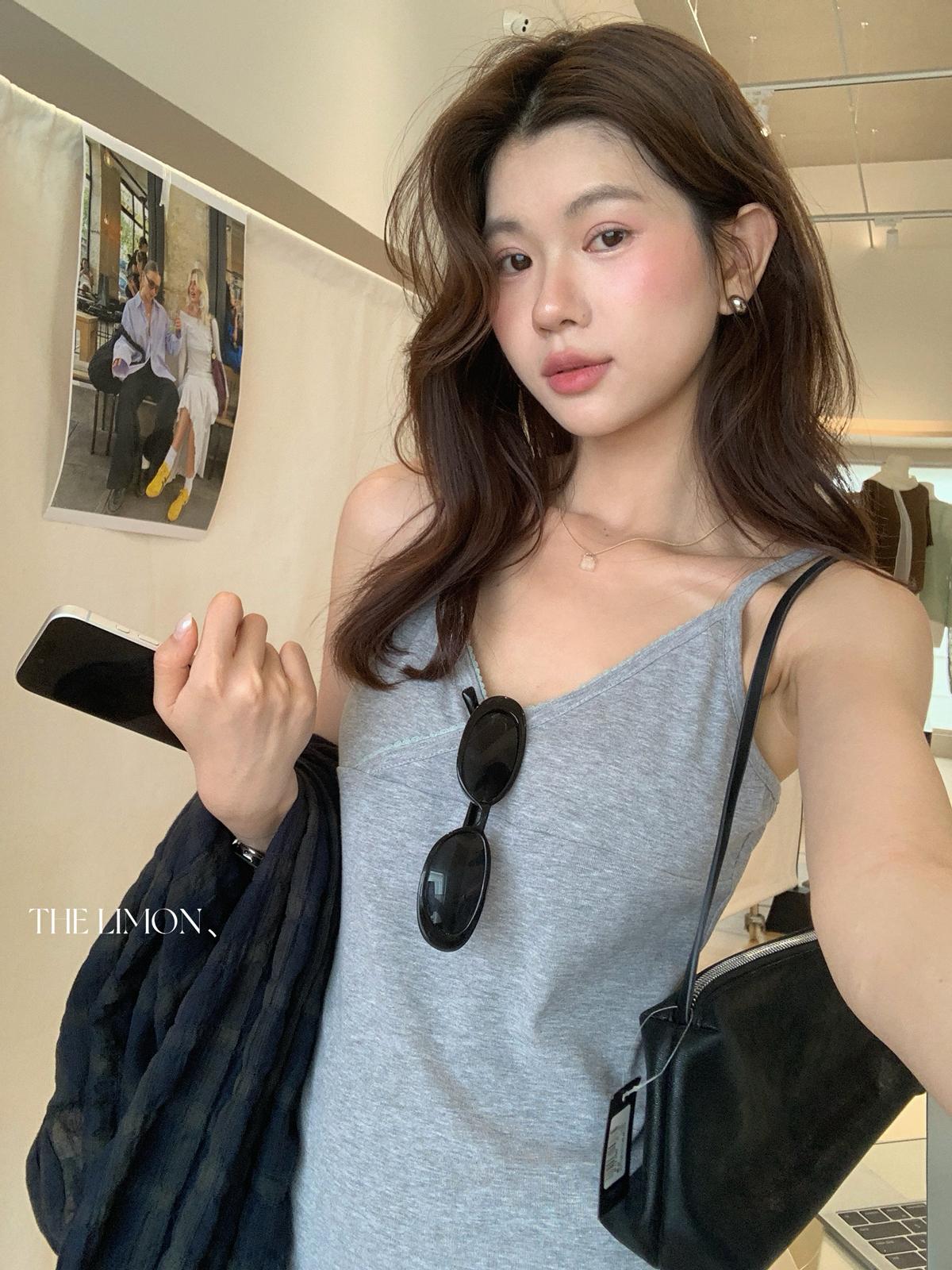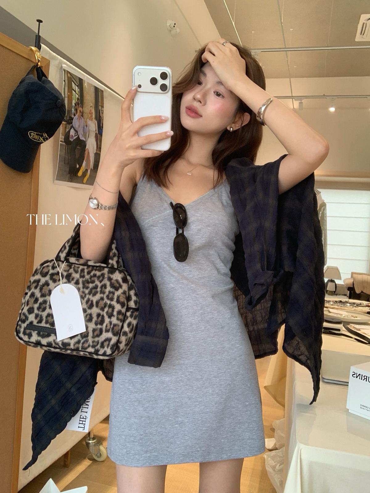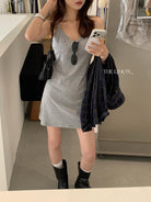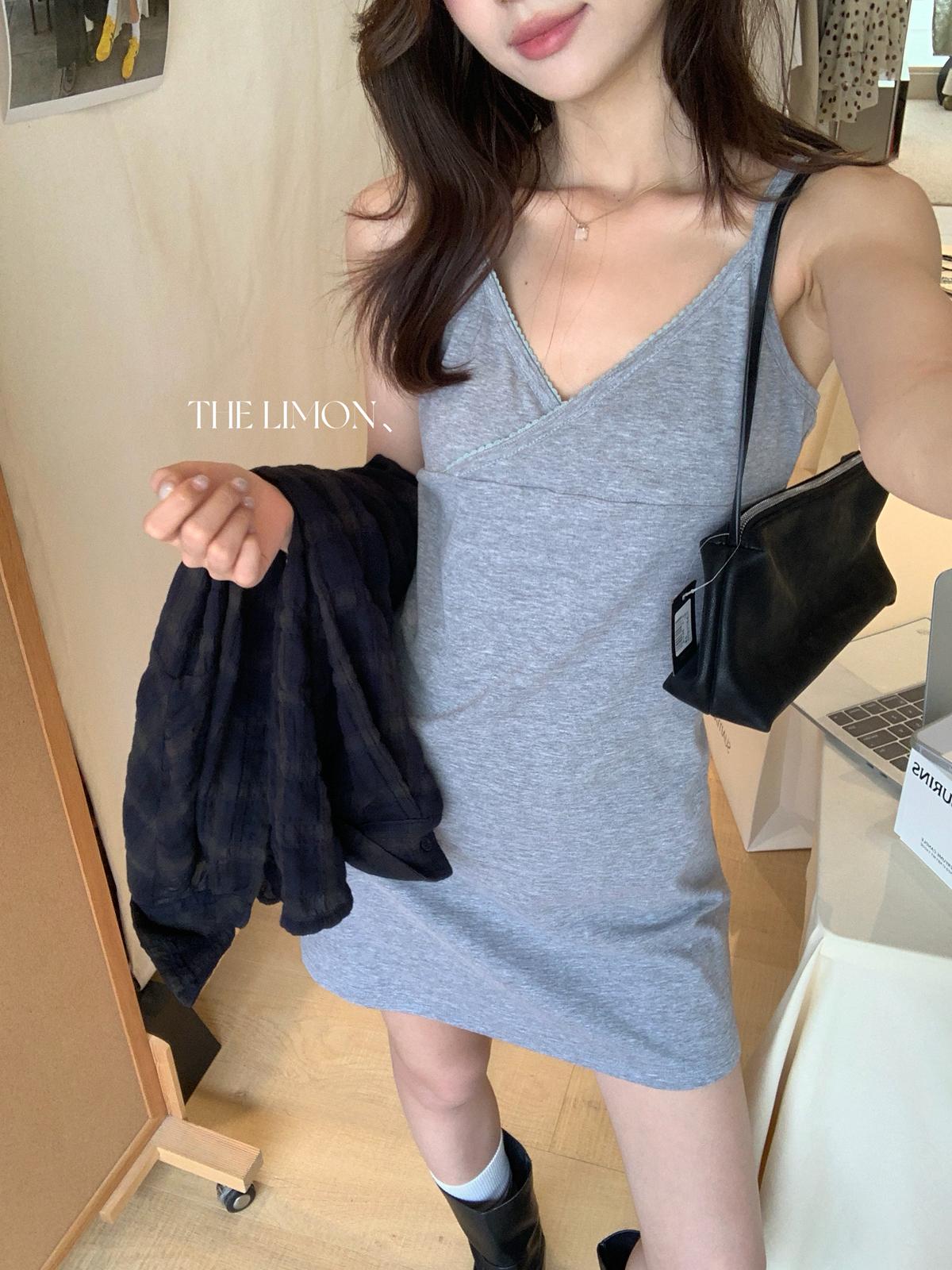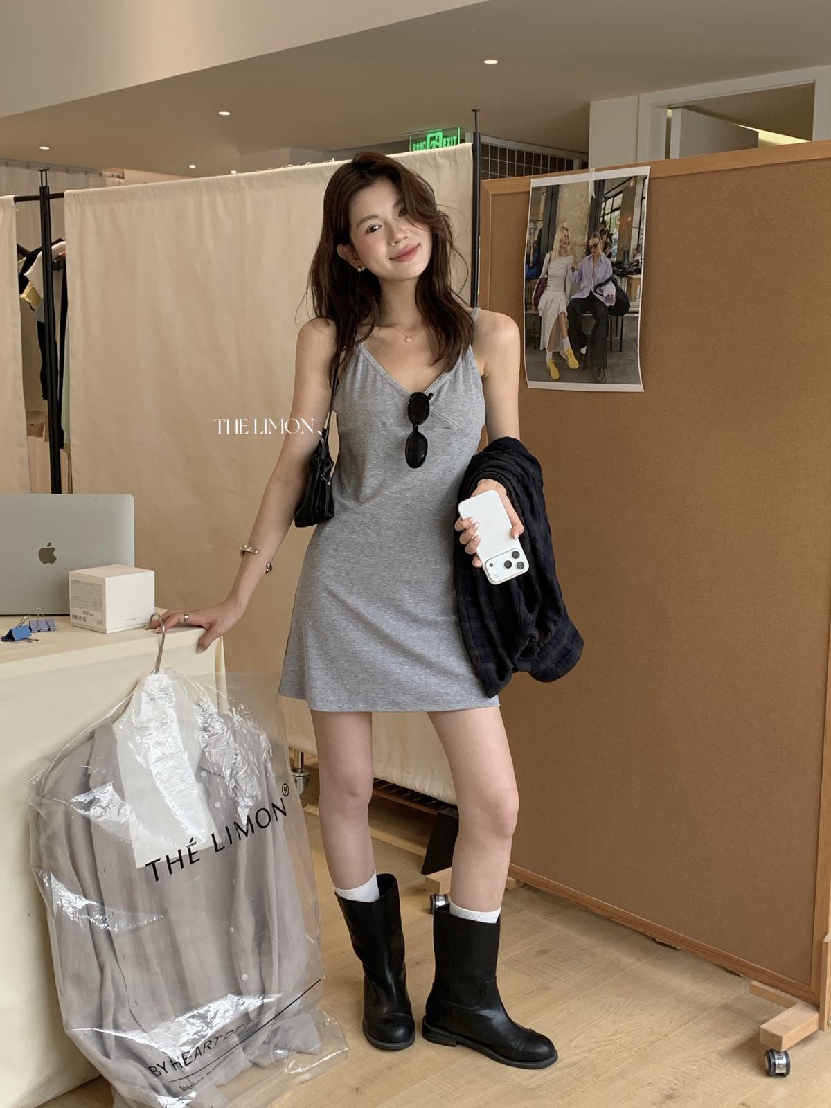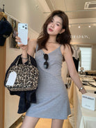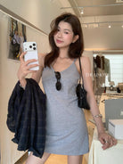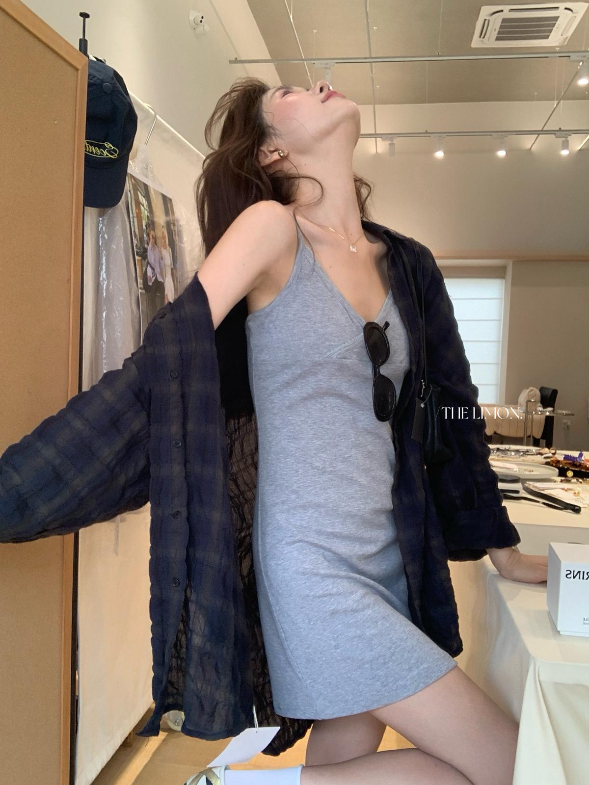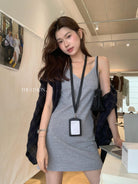 【C9080】韓系V領修身顯瘦吊帶連衣裙(單賣連衣裙)