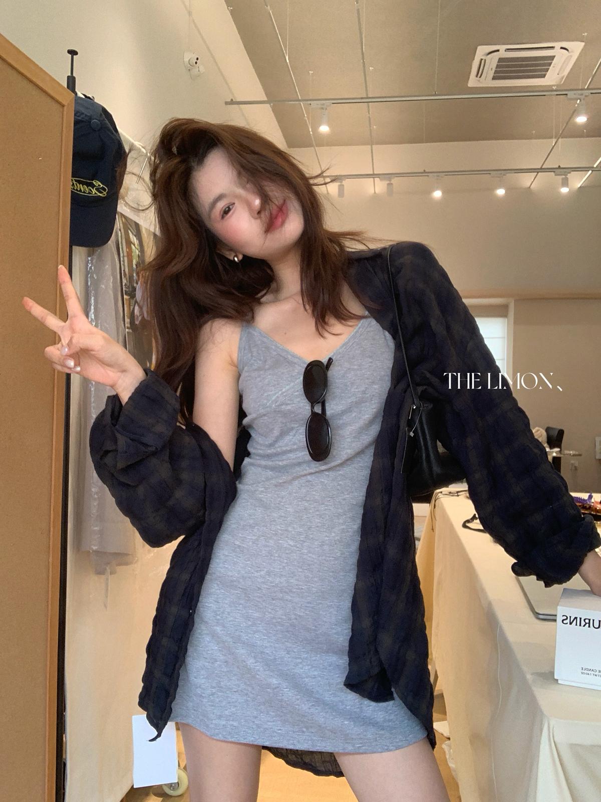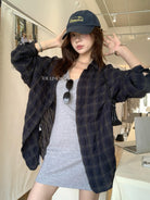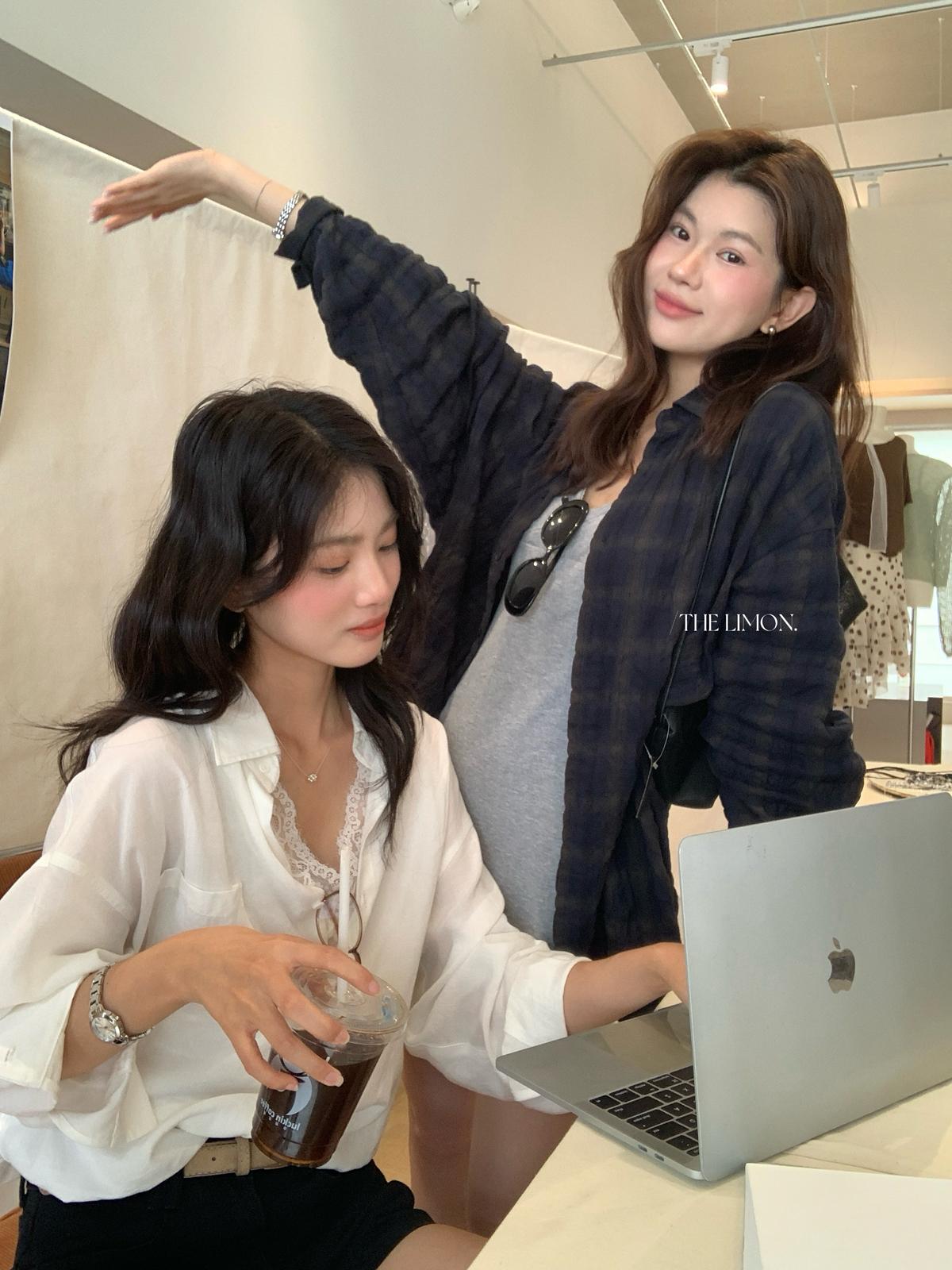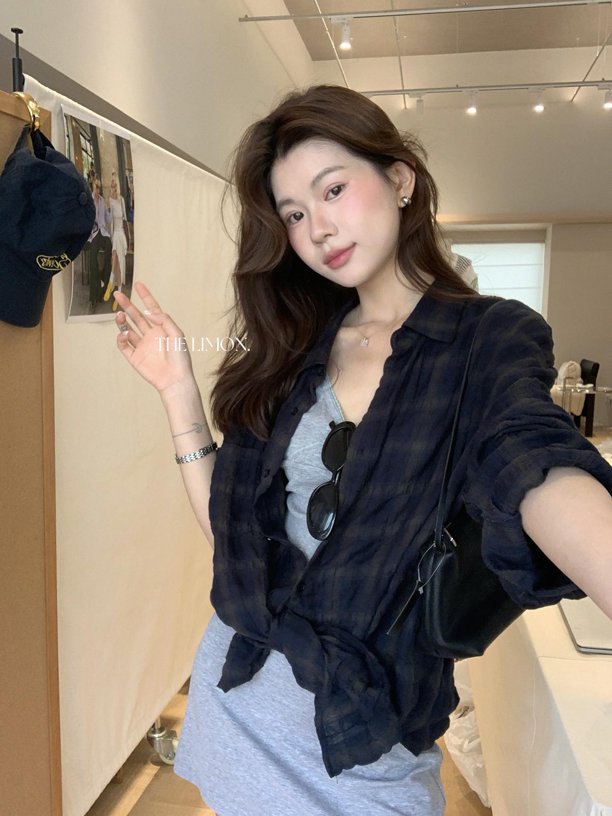 【C9081】單穿疊穿都可!輕薄皺皺格紋防曬襯衫(單賣襯衫)