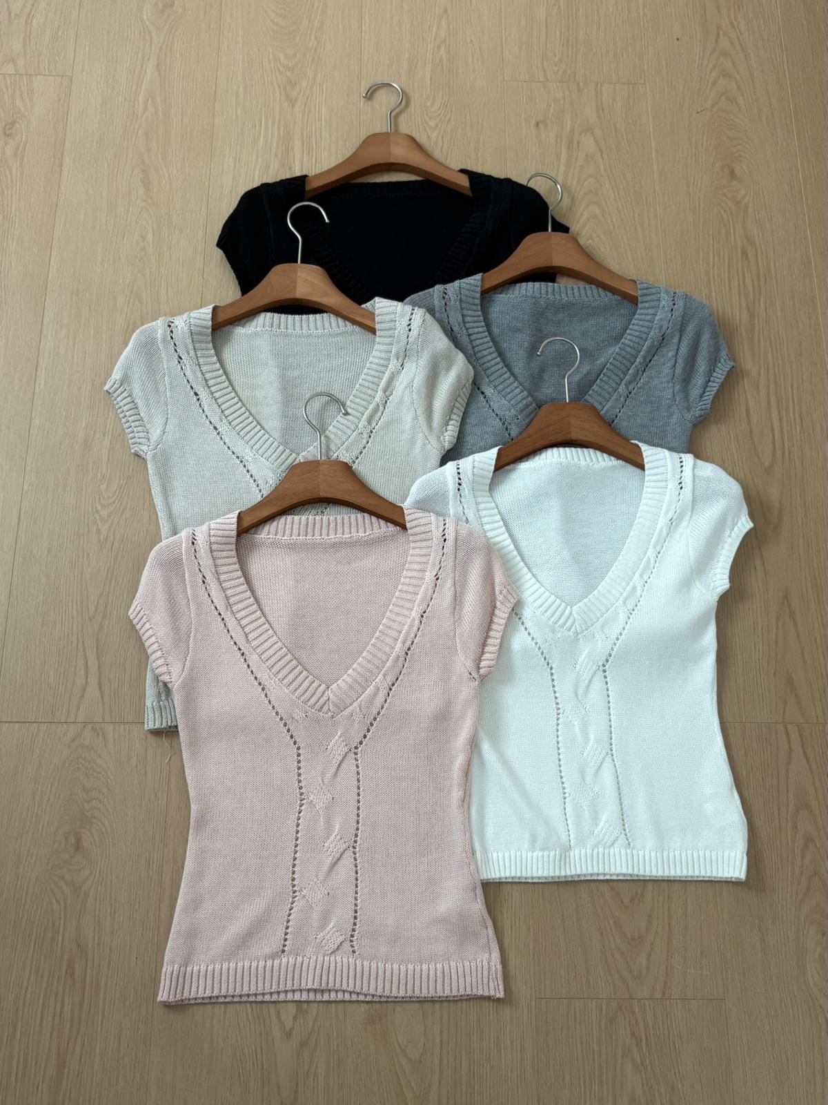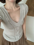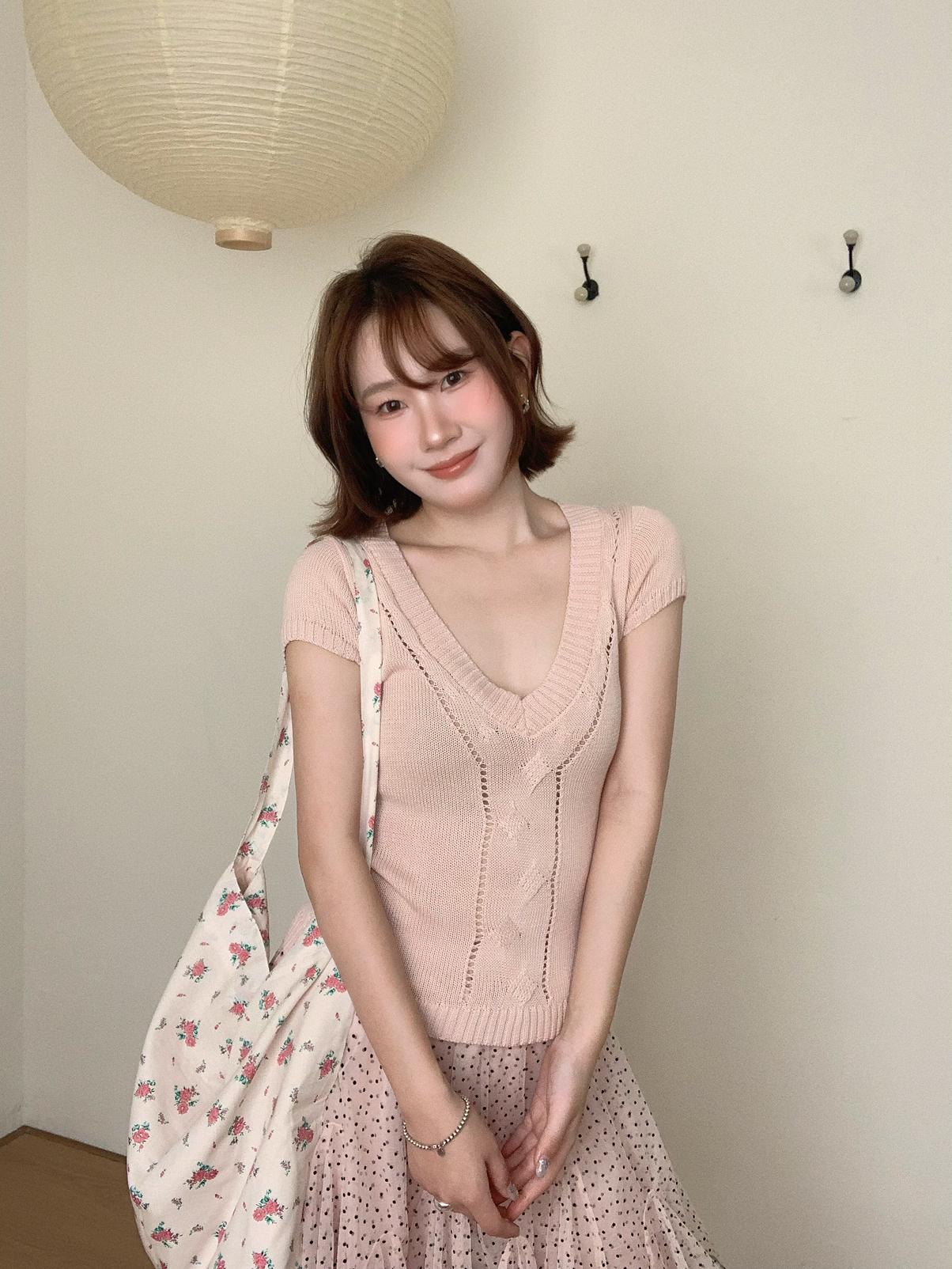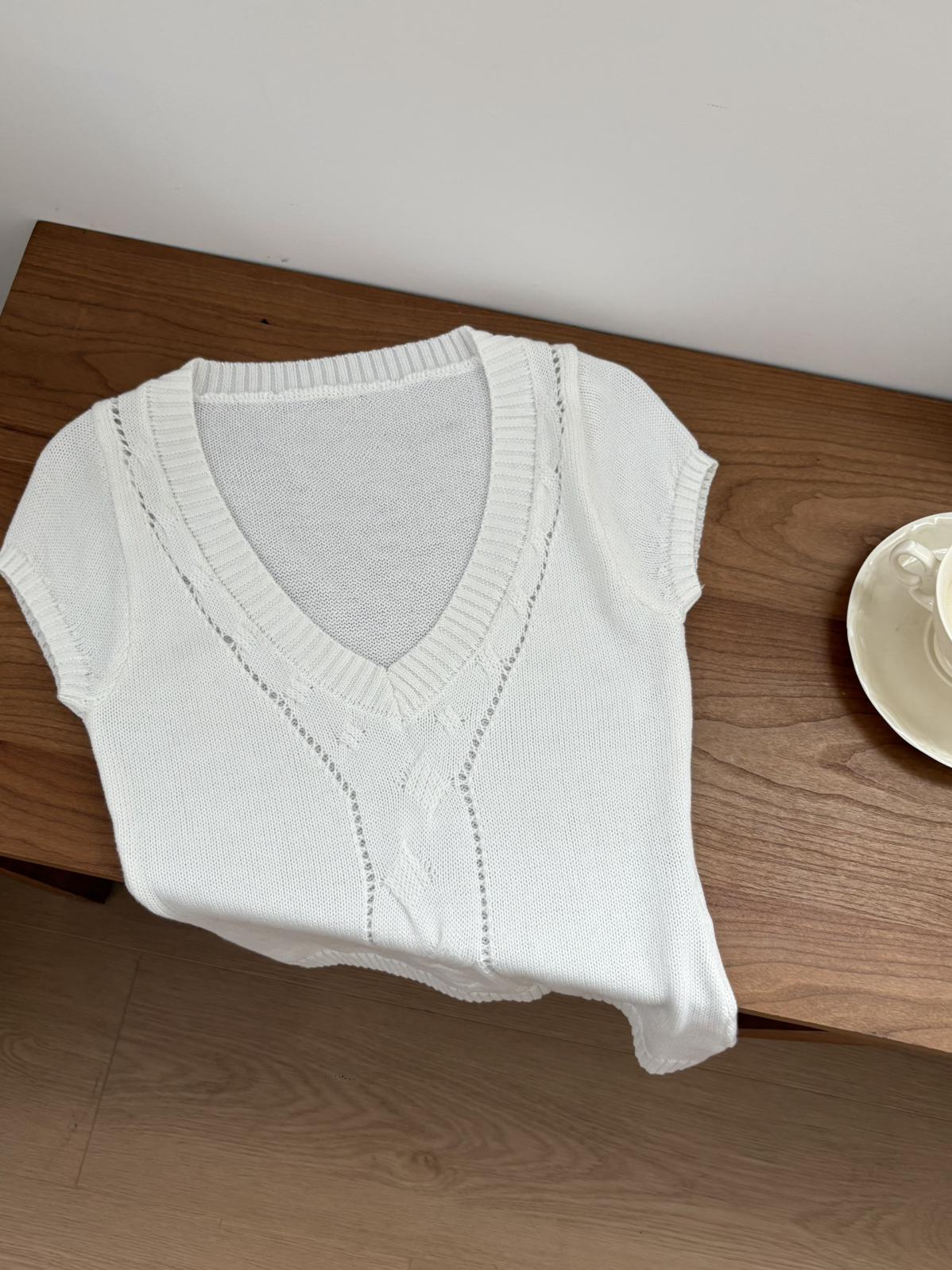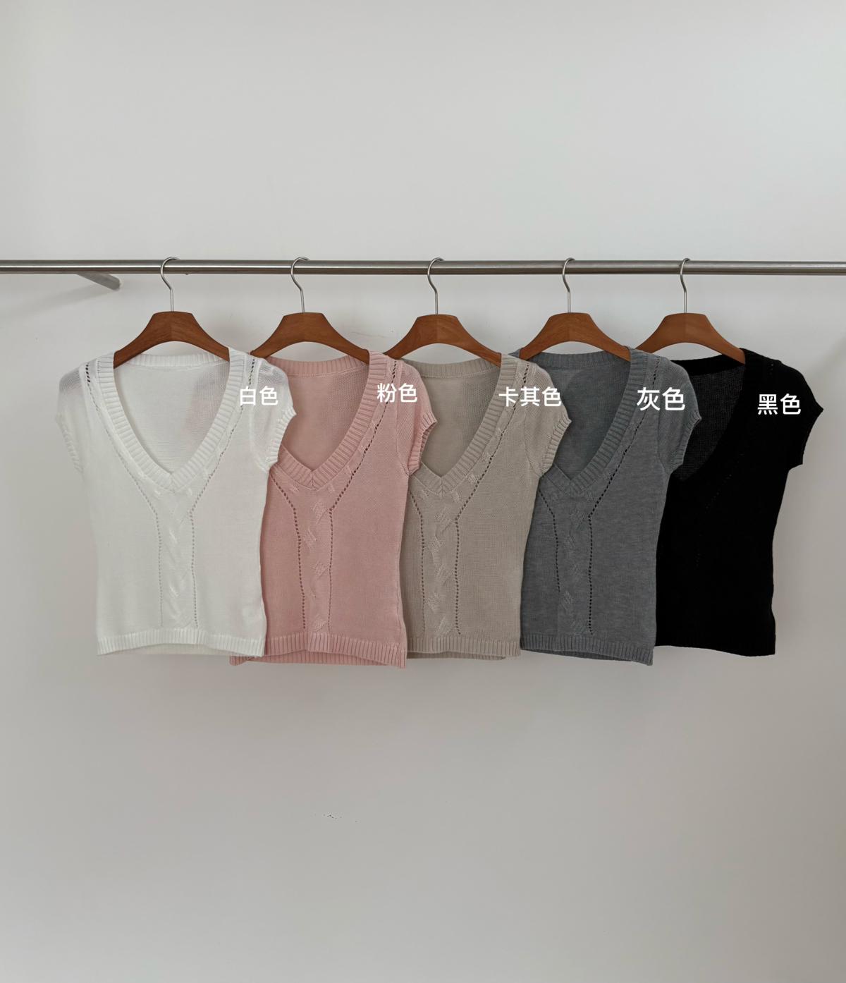 【C9093】絞花+鏤空雙重交替織法純欲修身針織短袖針織衫