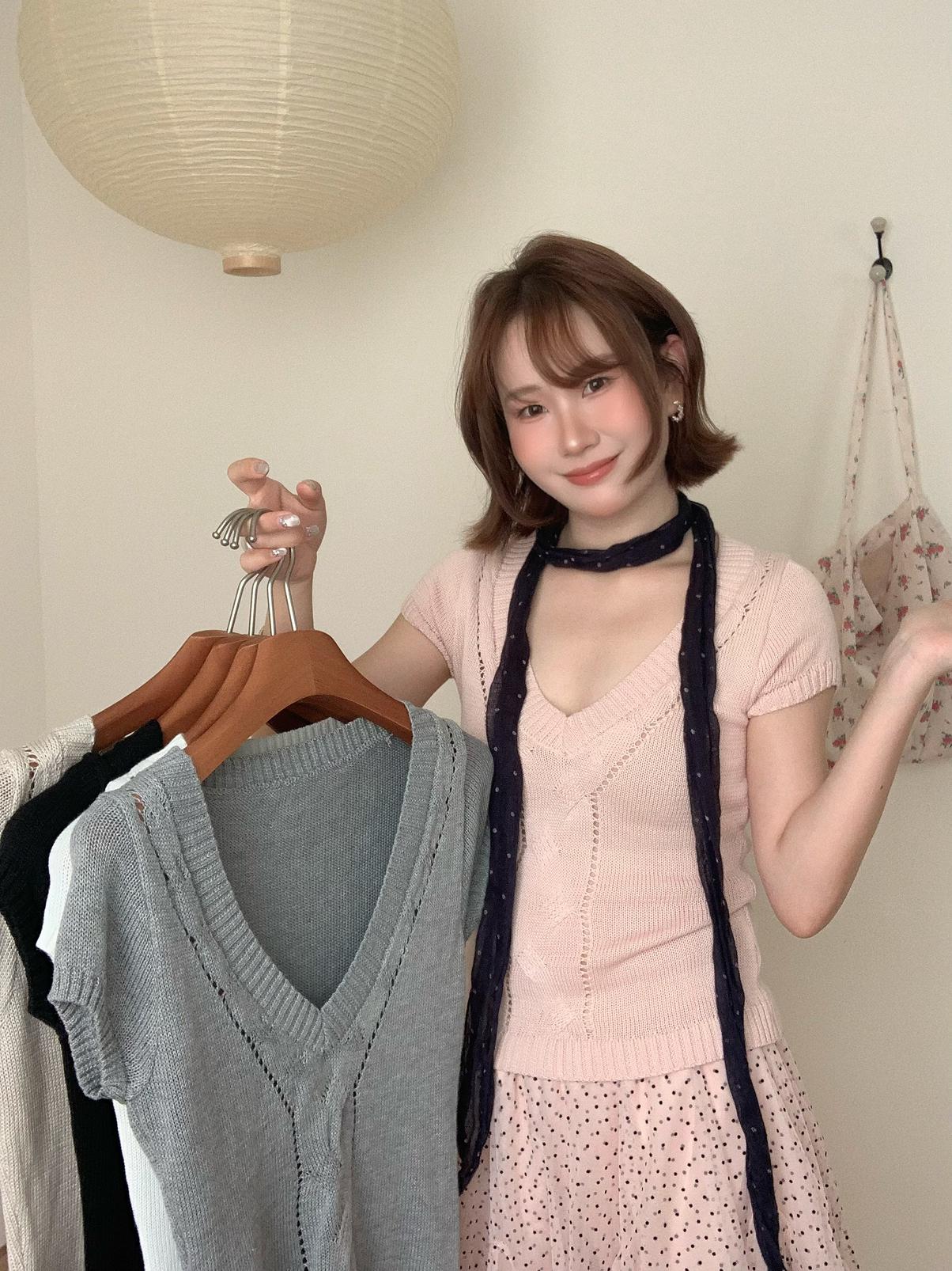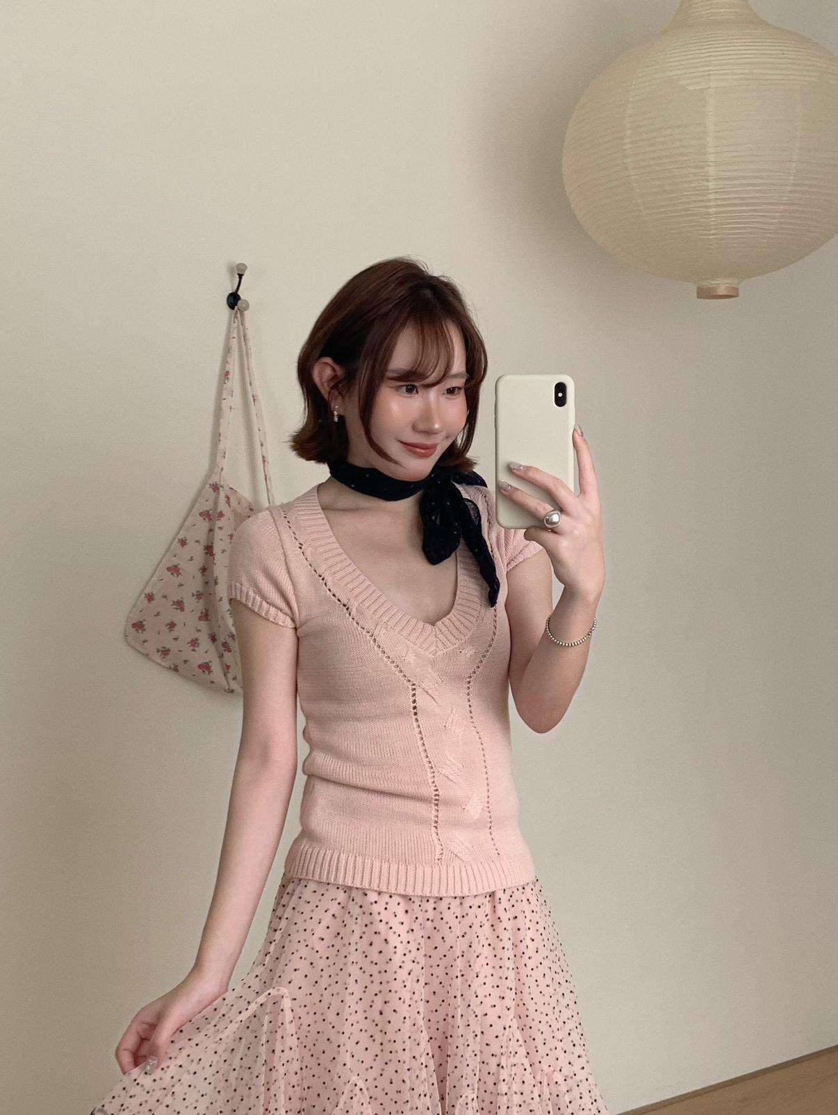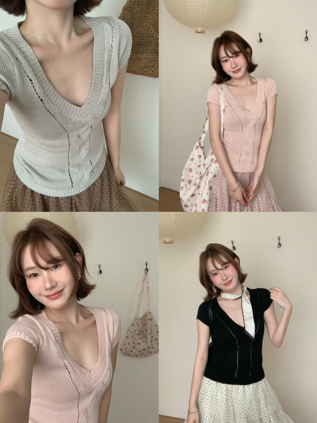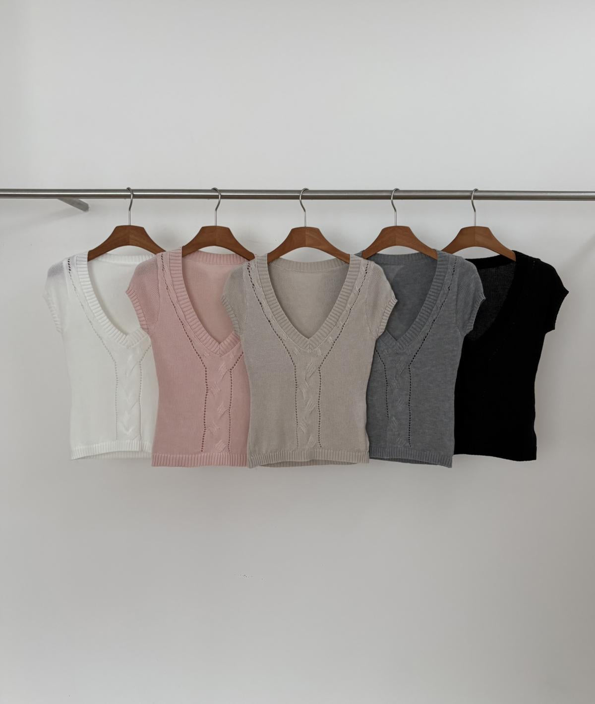 【C9093】絞花+鏤空雙重交替織法純欲修身針織短袖針織衫