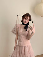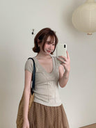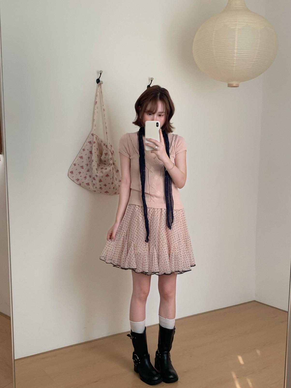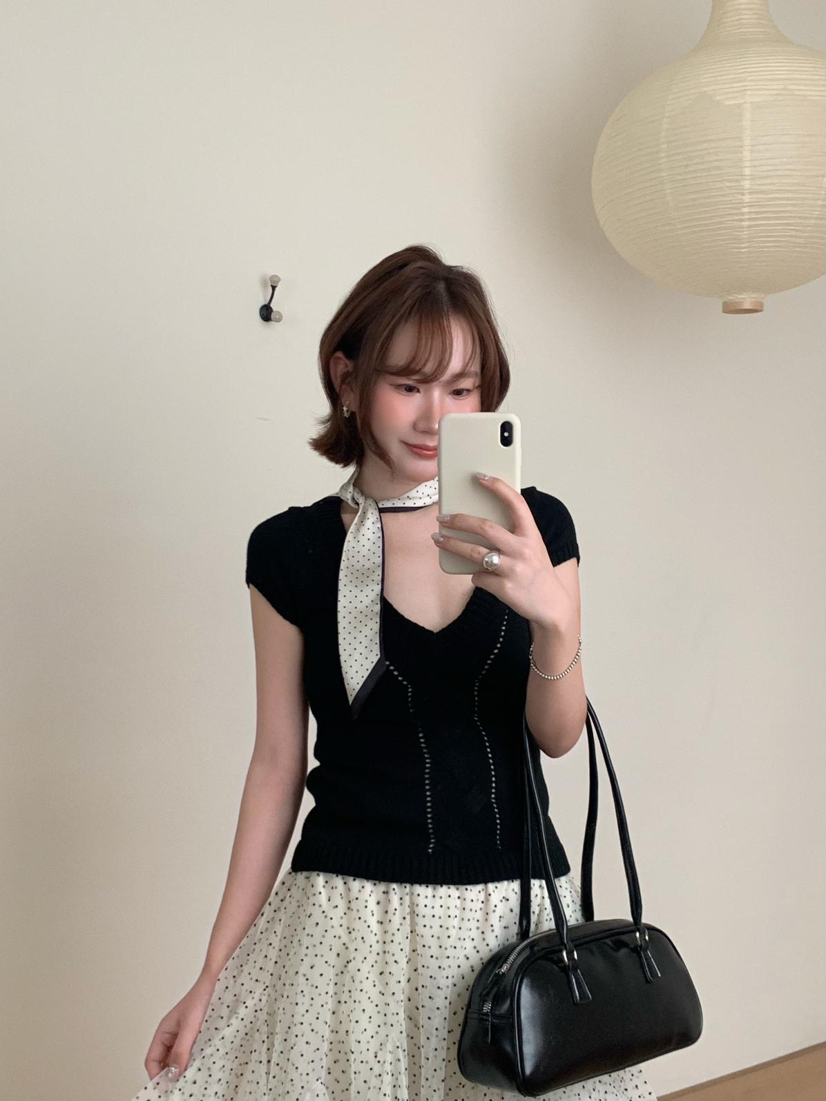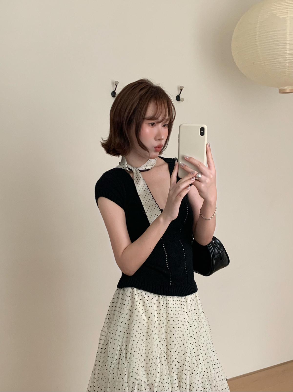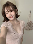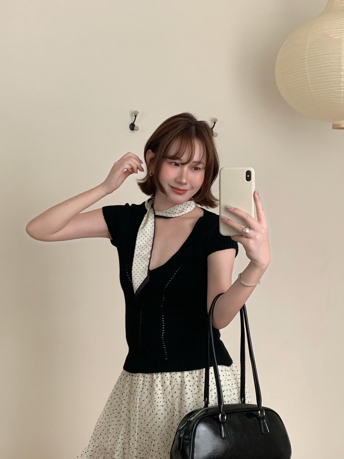 【C9093】絞花+鏤空雙重交替織法純欲修身針織短袖針織衫