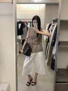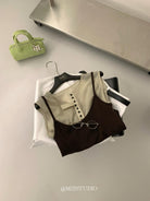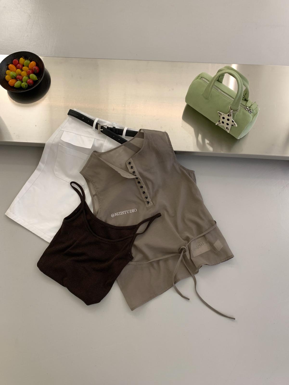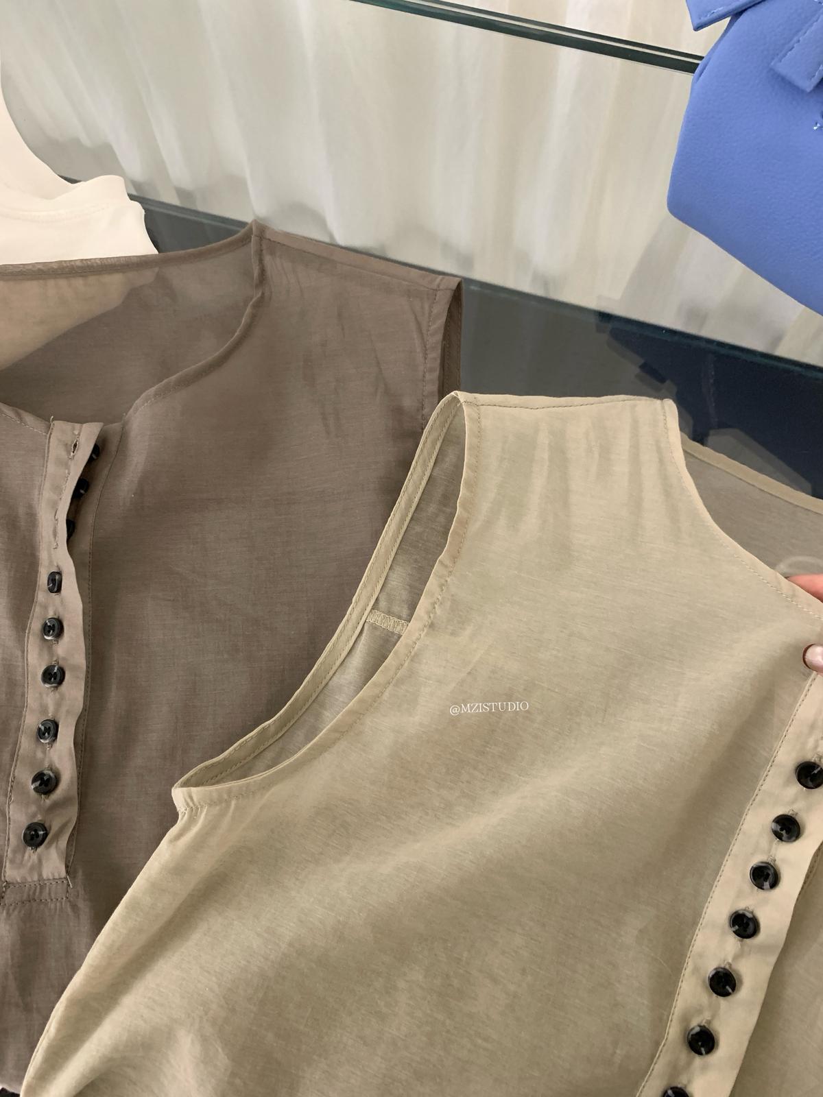 3. 【C9129】濃度可可韓系清透簡約夏日鈕釦V領繫帶寬鬆無袖小衫(配腰繩)(不含項鍊/背心)