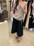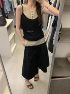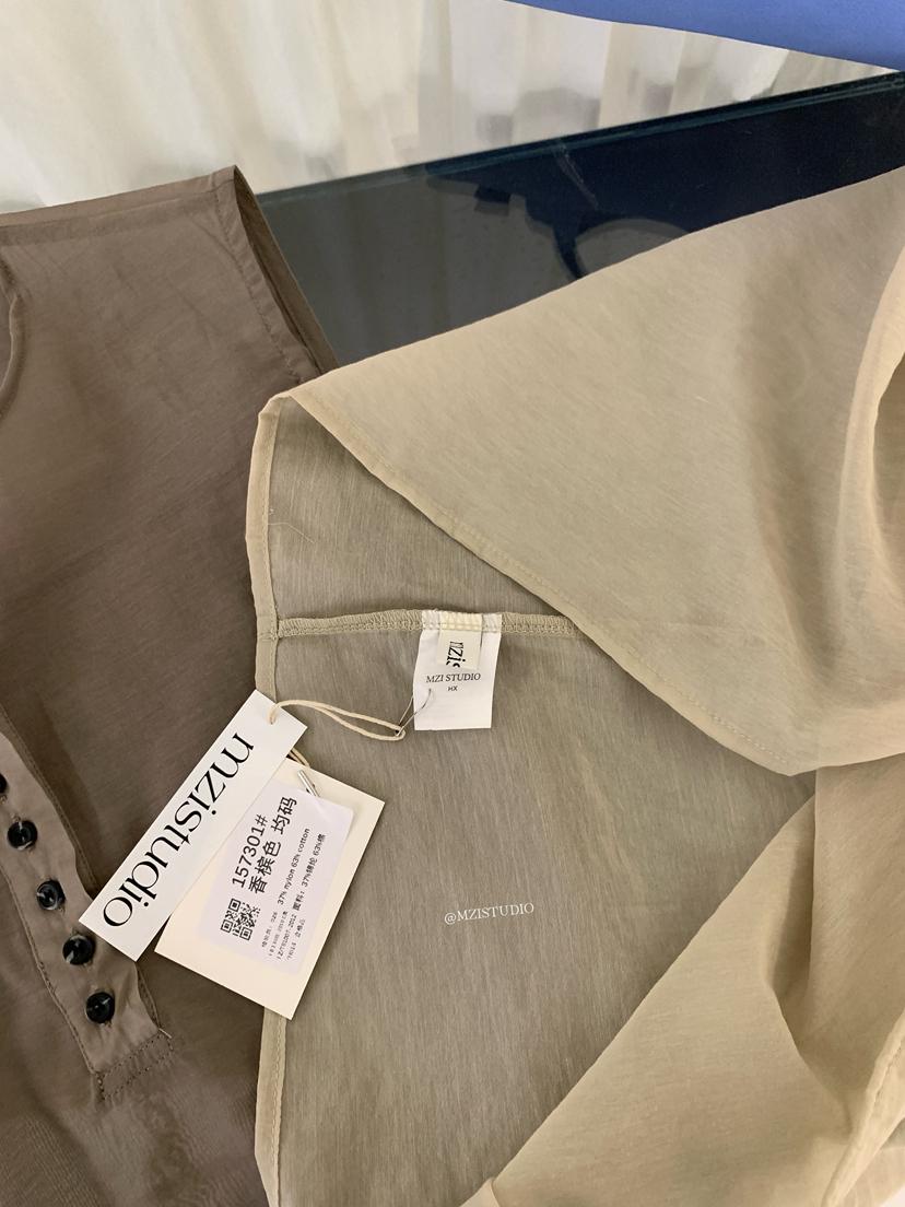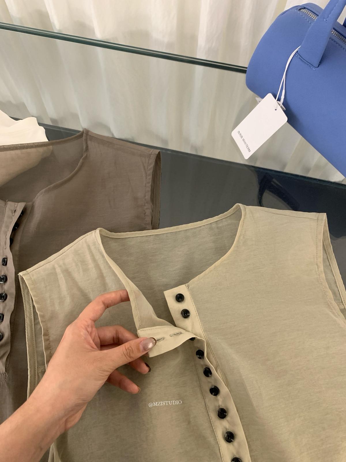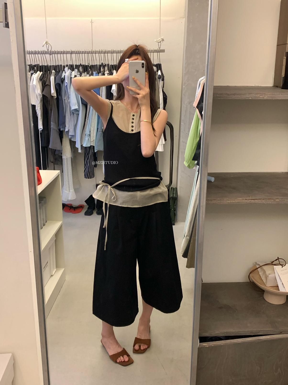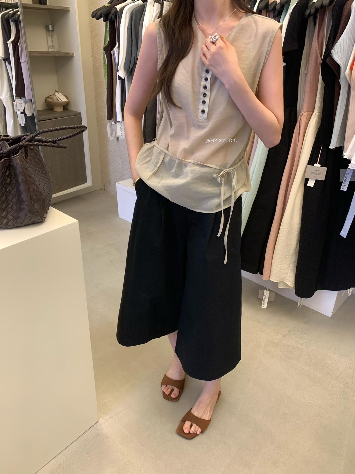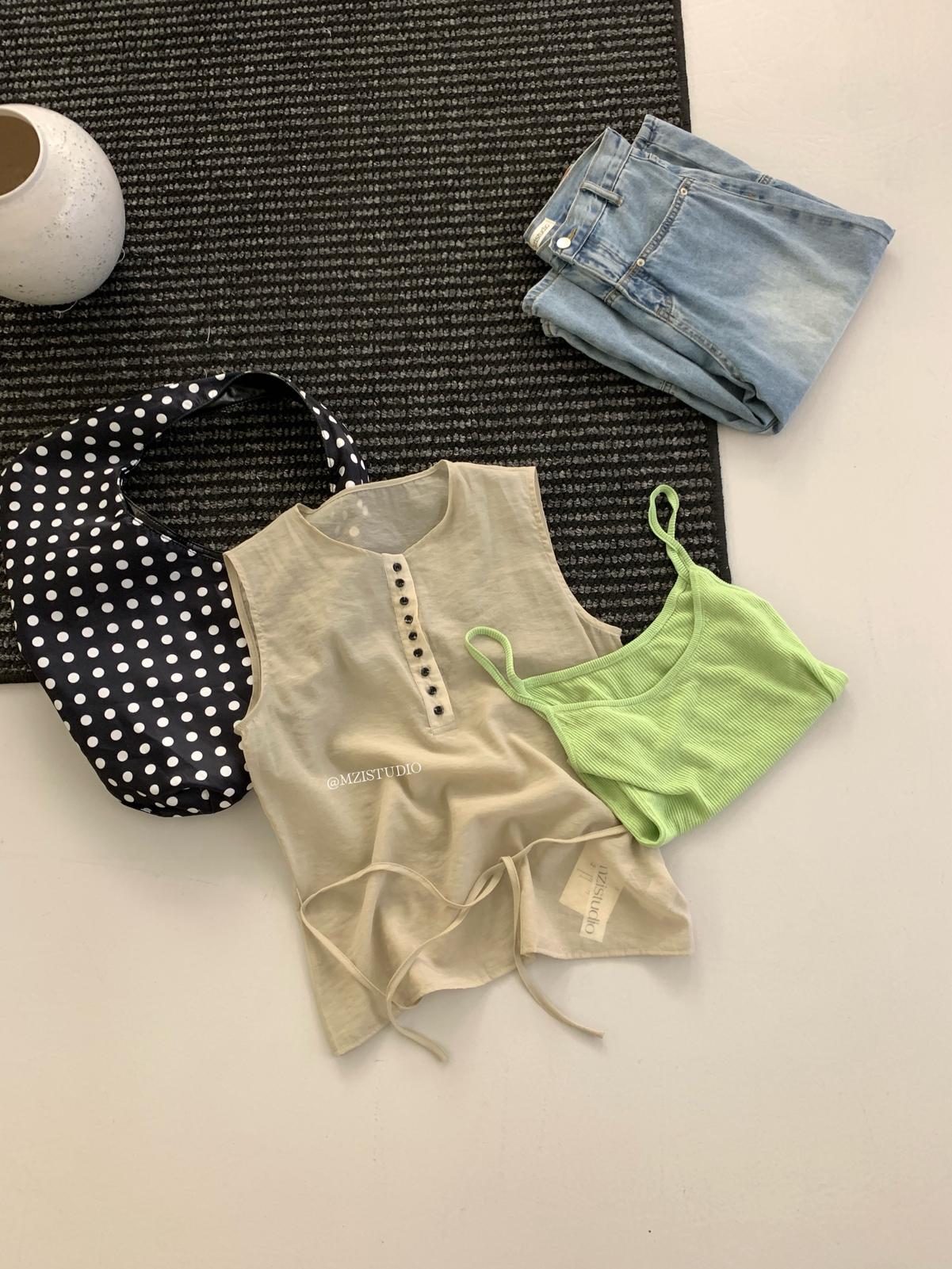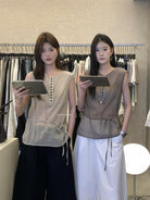 【C9129】濃度可可韓系清透簡約夏日鈕釦V領繫帶寬鬆無袖小衫(配腰繩)(不含項鍊/背心)