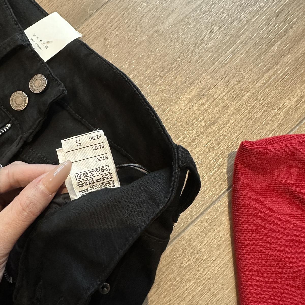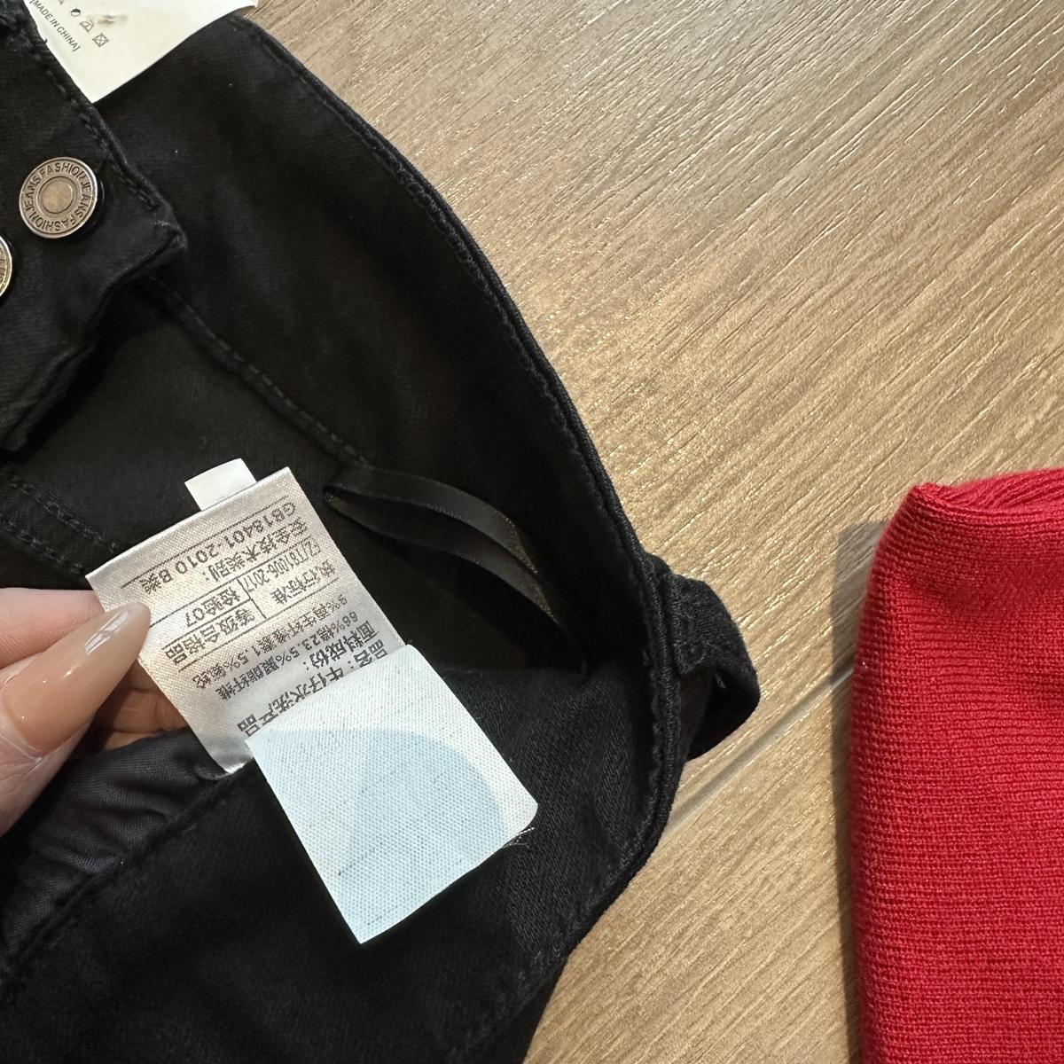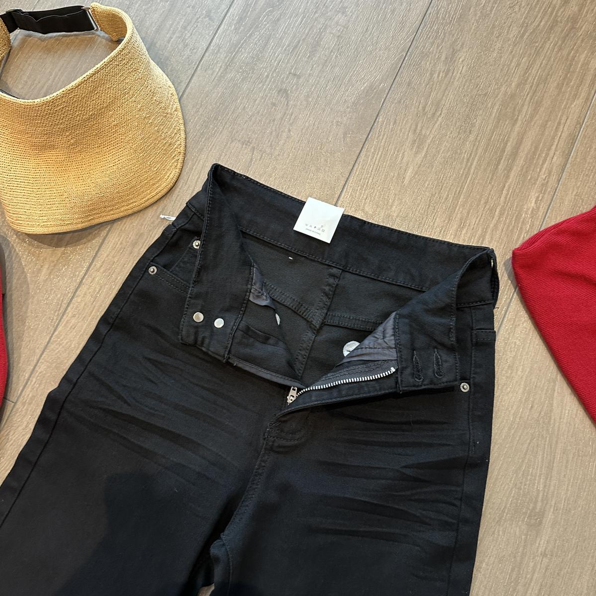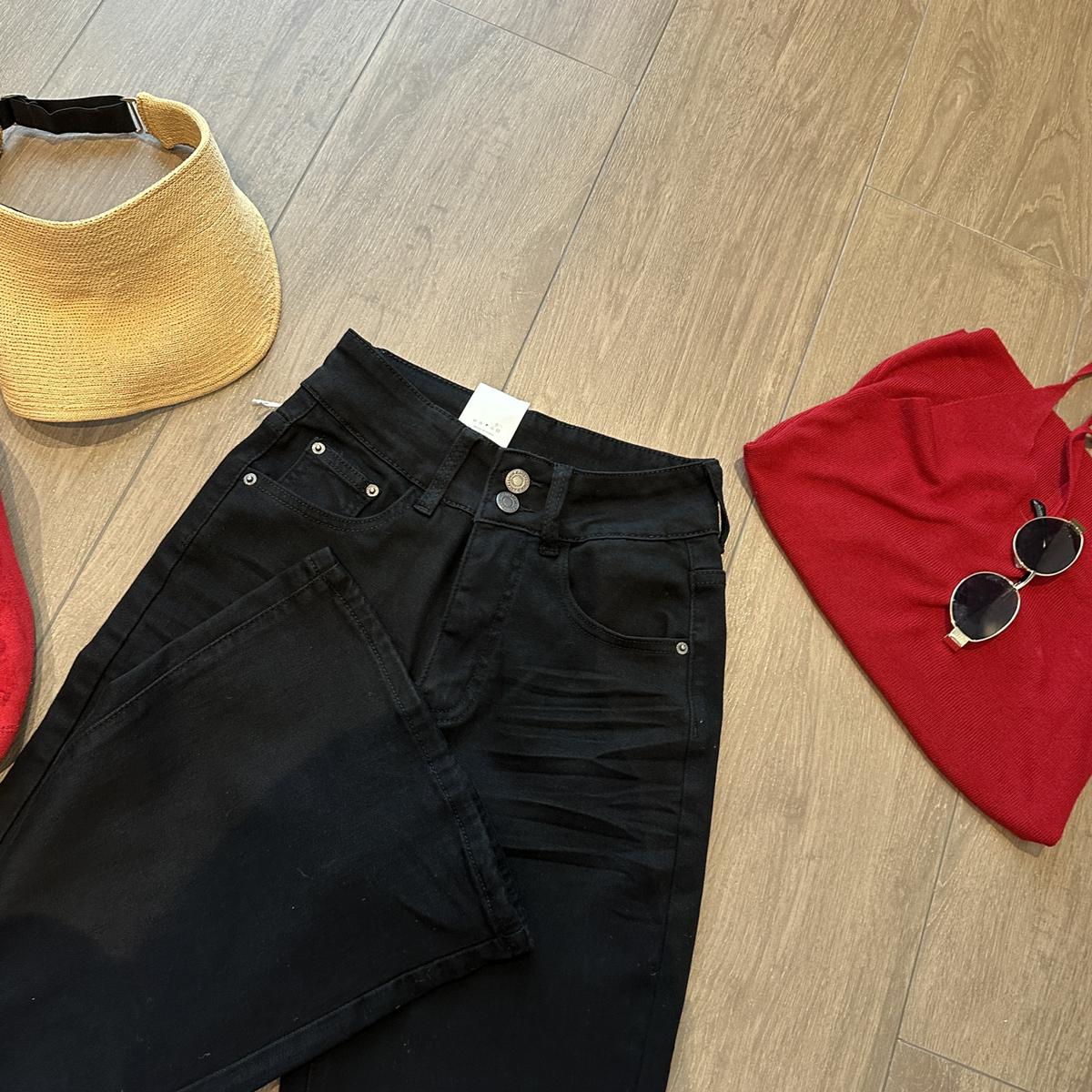 【C9237】大碼純黑色高腰兩粒扣設計顯瘦氣質彈力喇叭褲牛仔褲(最大可穿200斤)