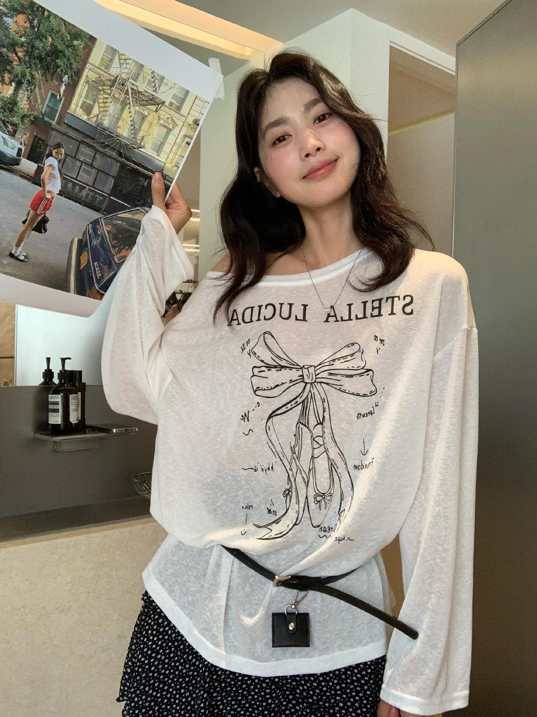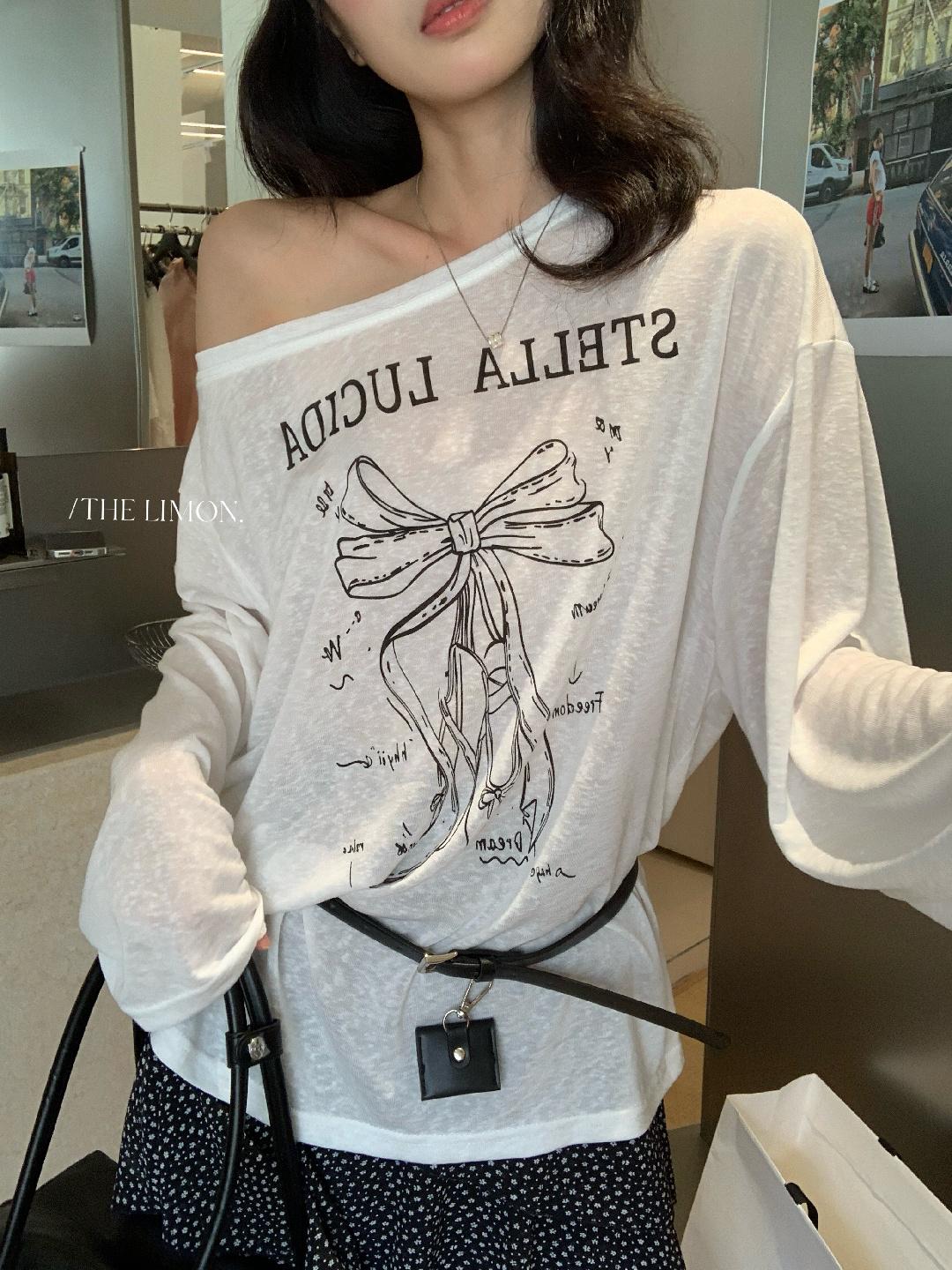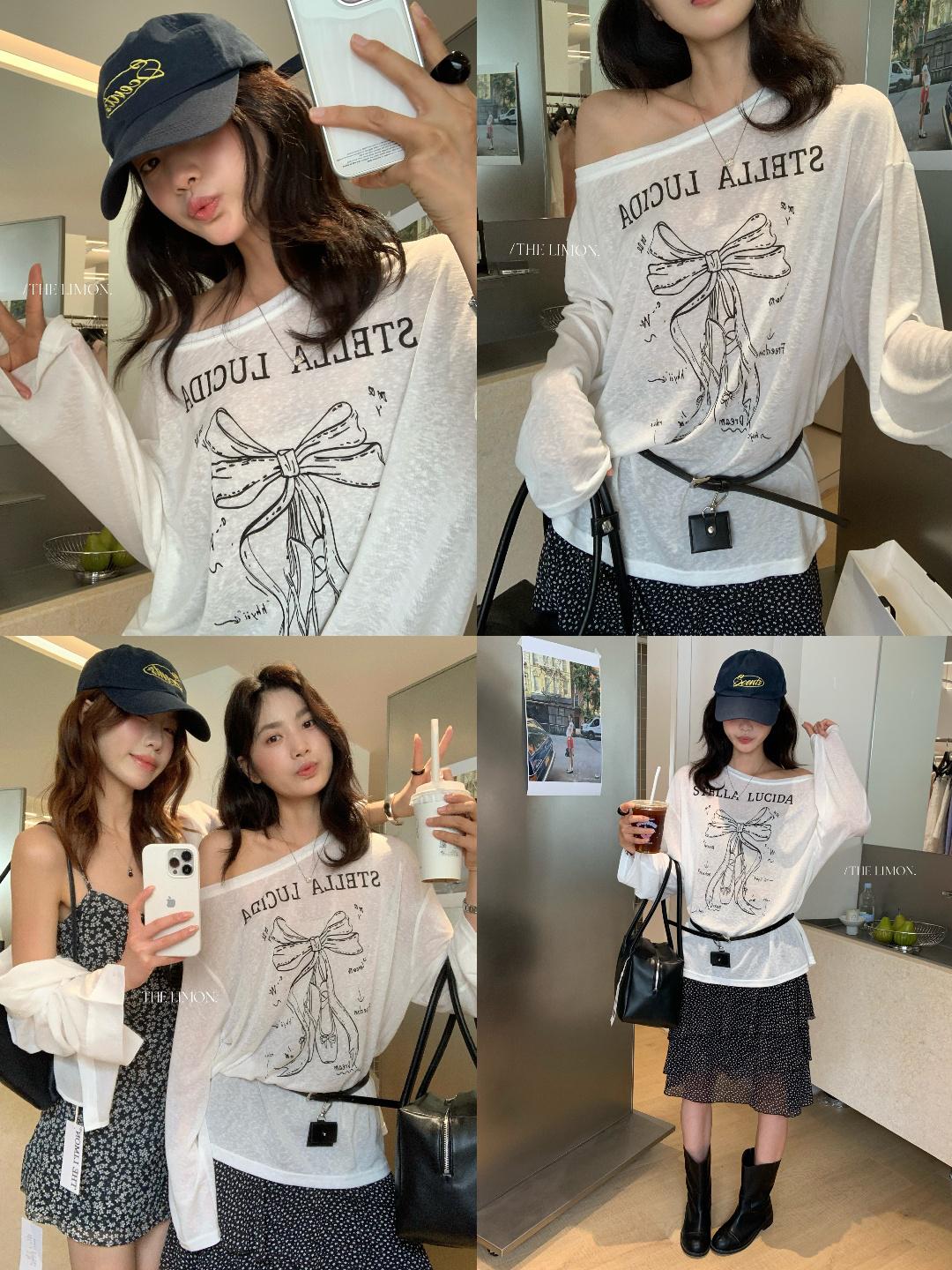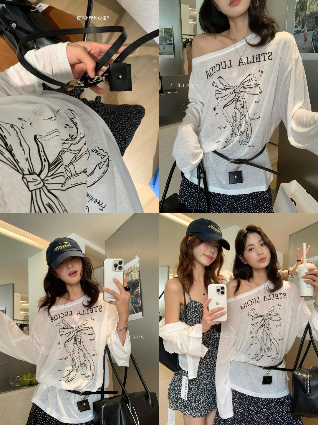 【C9238】設計感創意蝴蝶結印花防曬長袖T恤(配腰包皮帶)