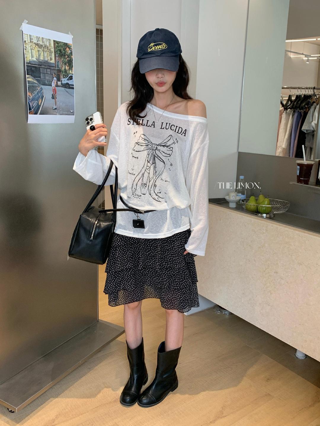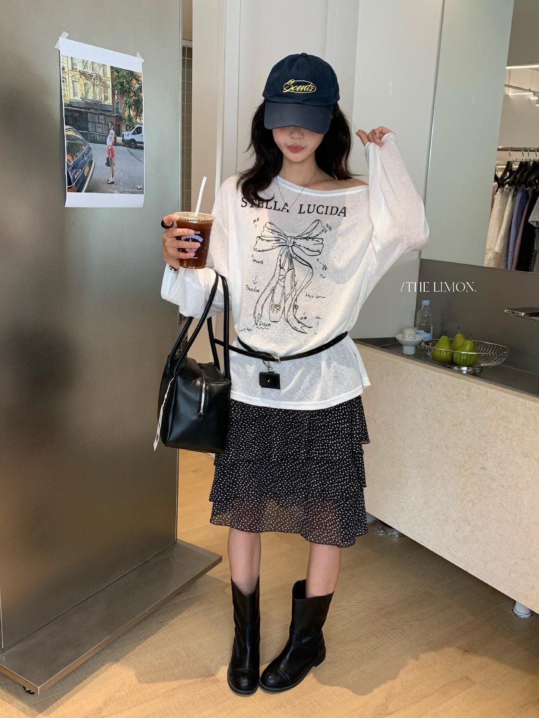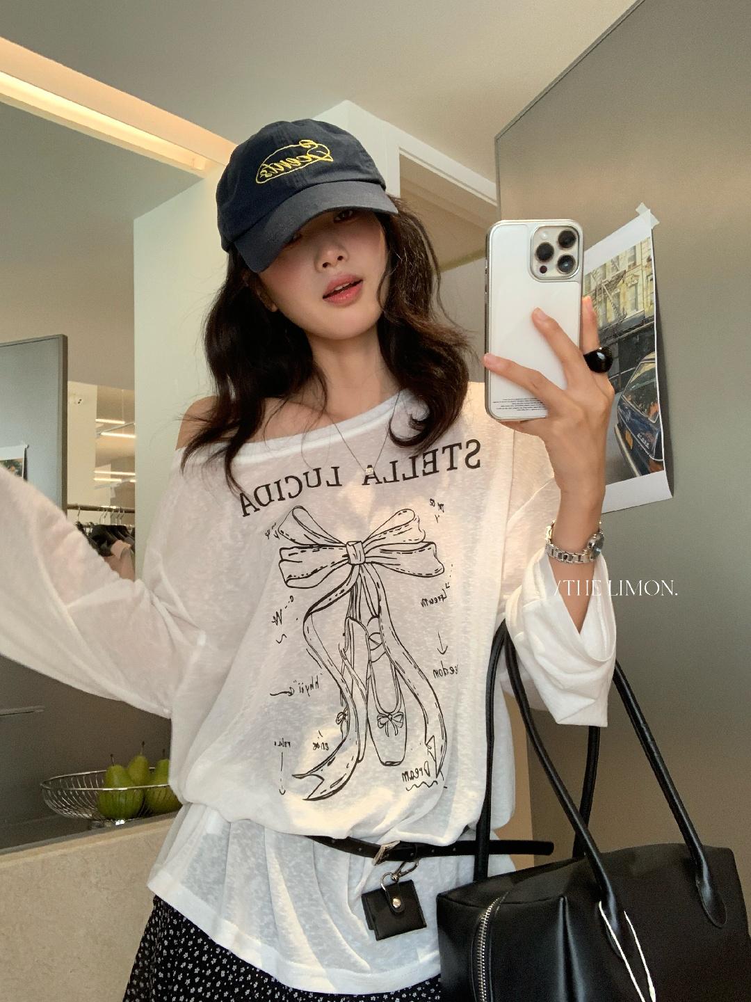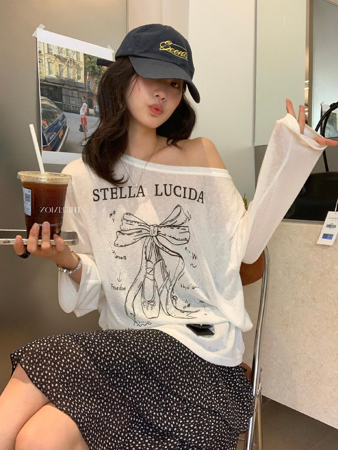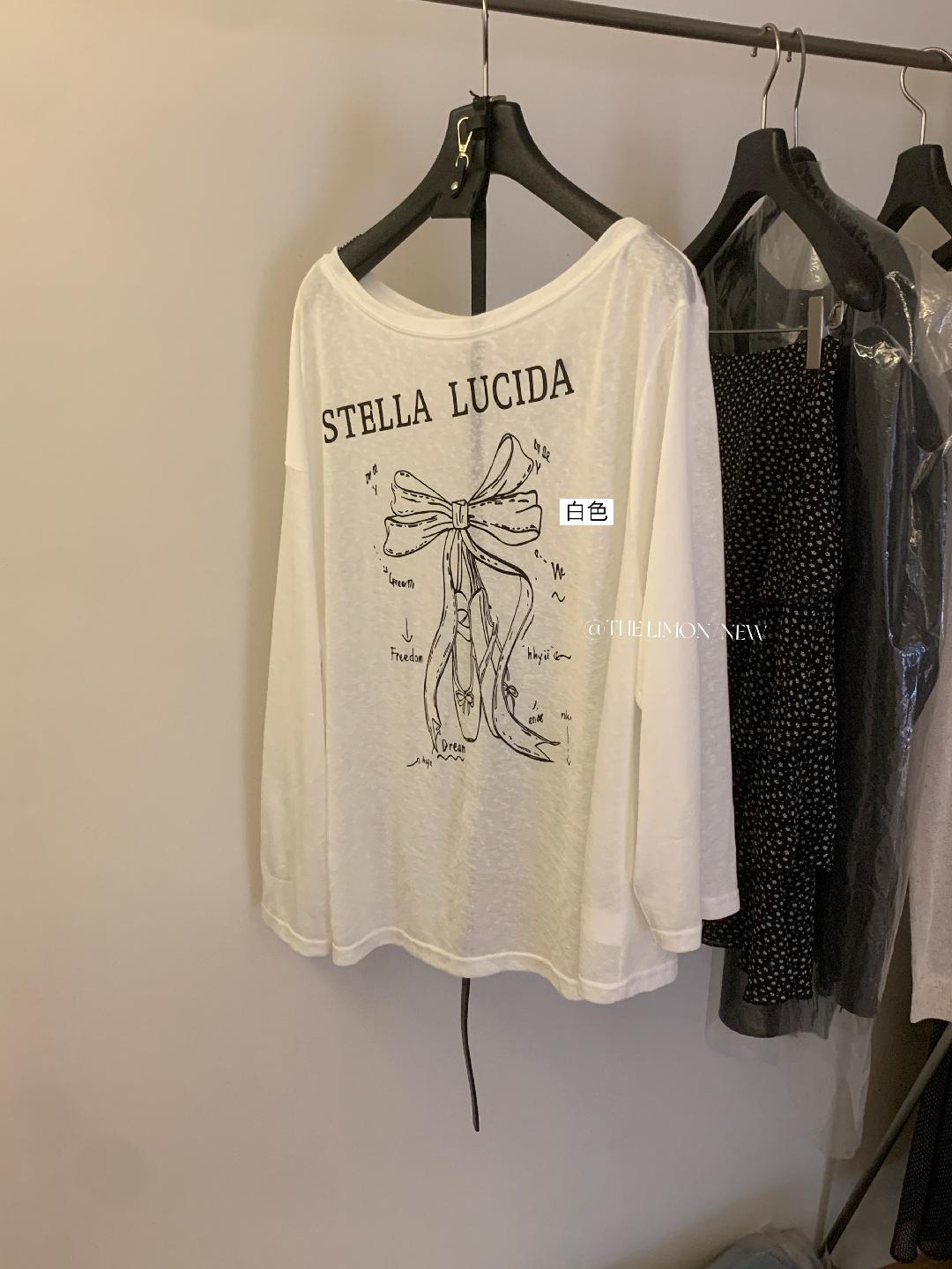 【C9238】設計感創意蝴蝶結印花防曬長袖T恤(配腰包皮帶)