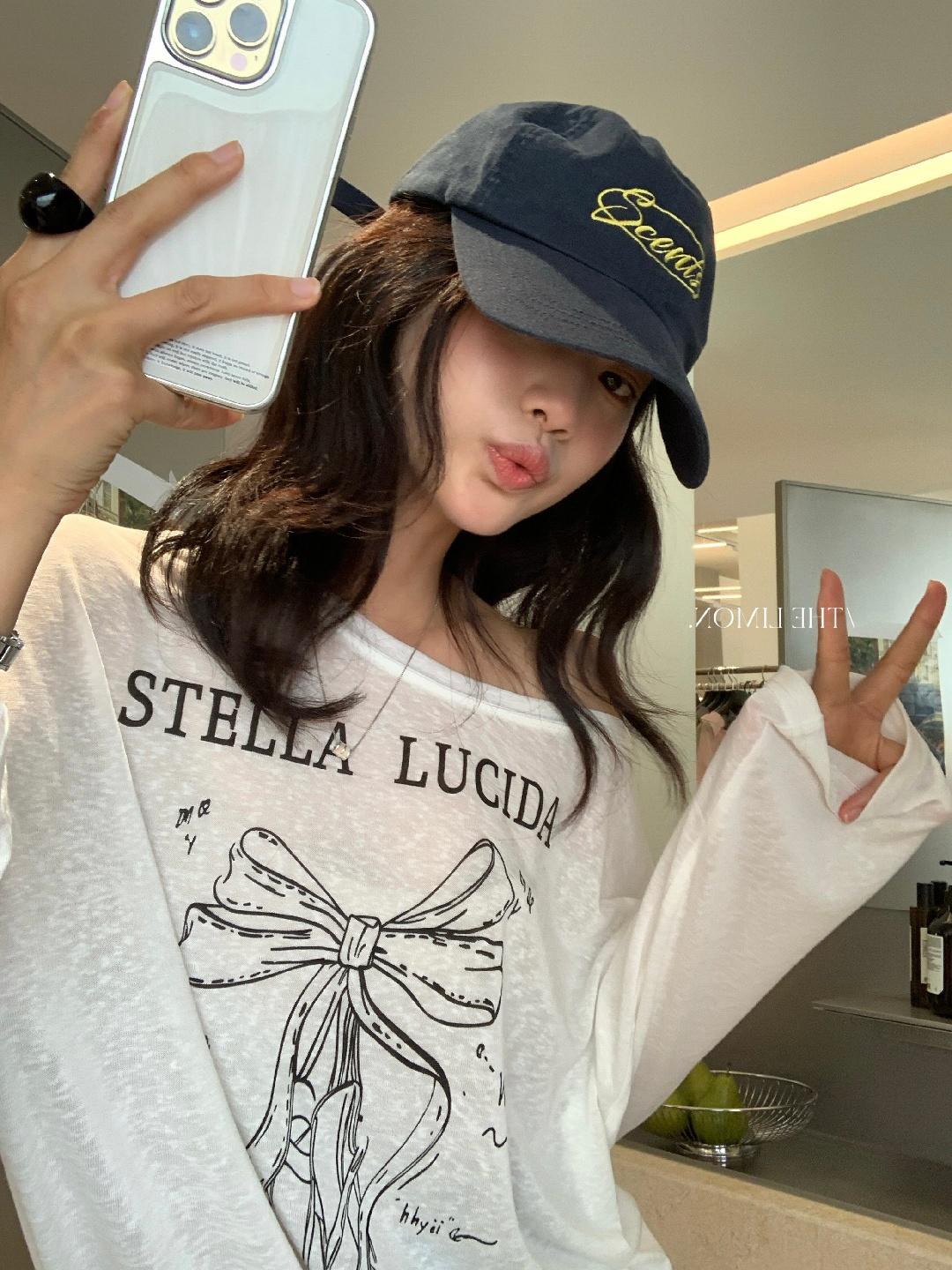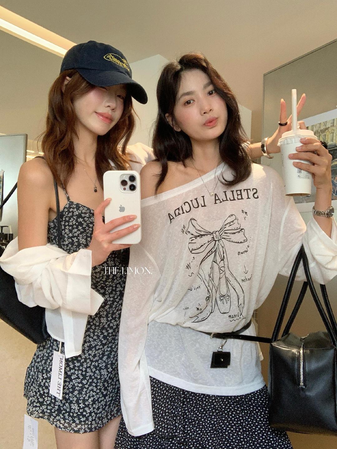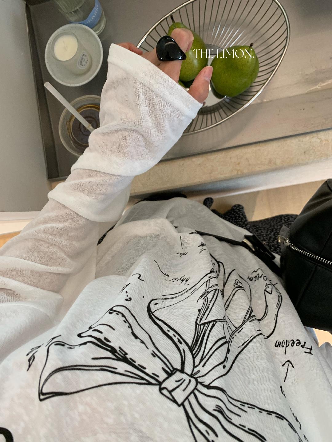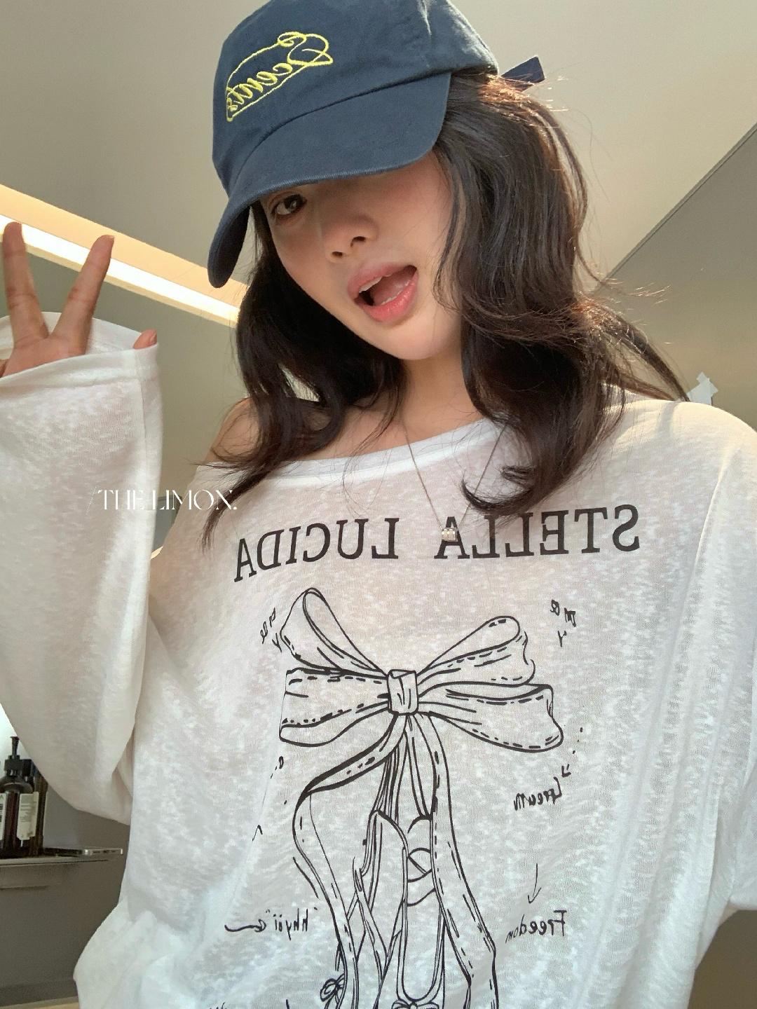 【C9238】設計感創意蝴蝶結印花防曬長袖T恤(配腰包皮帶)