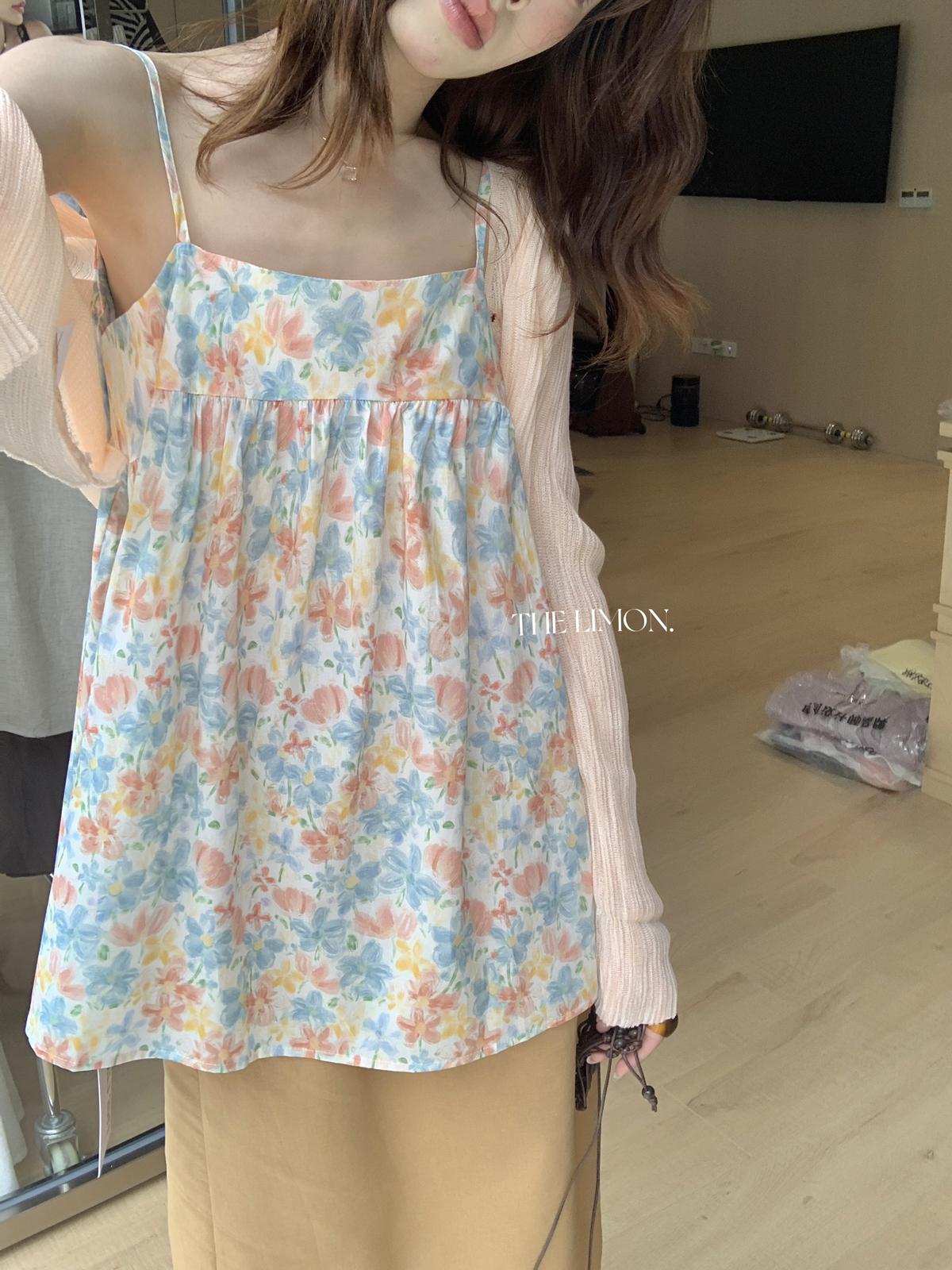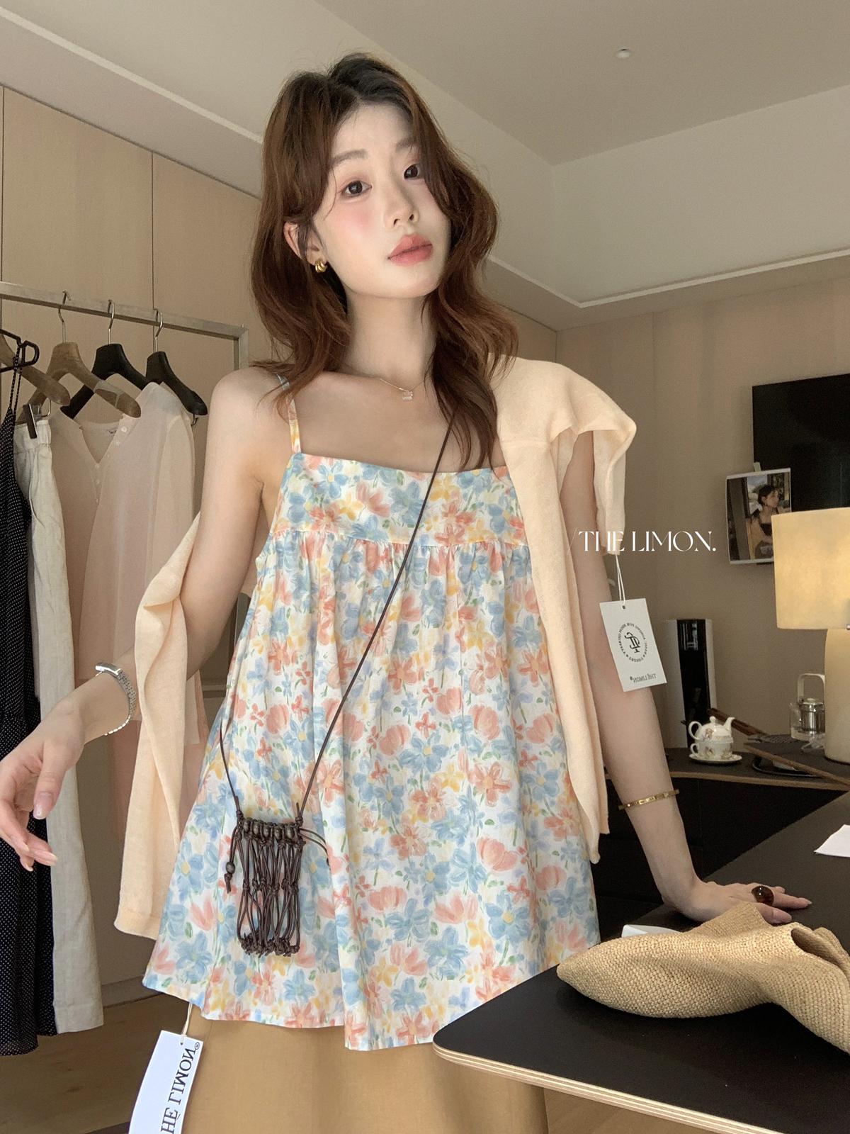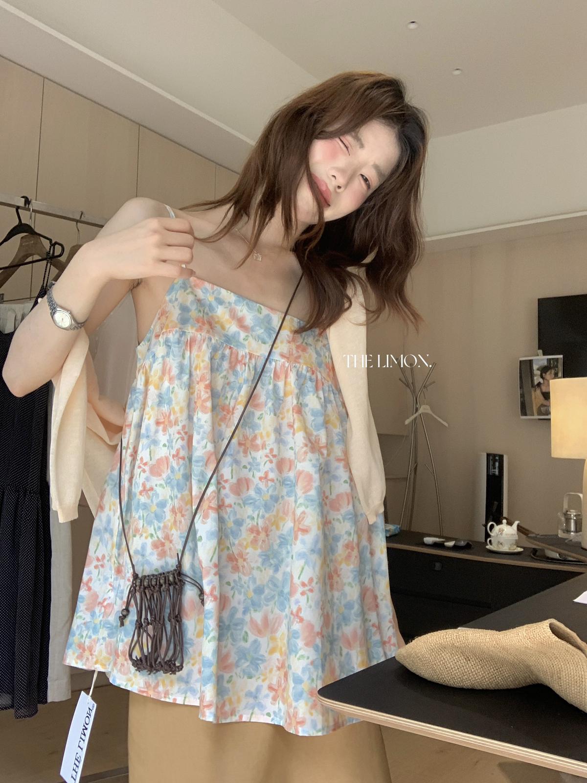 【C9244】26年夏上新!甜美度假油畫渲染吊帶背心(只賣背心)