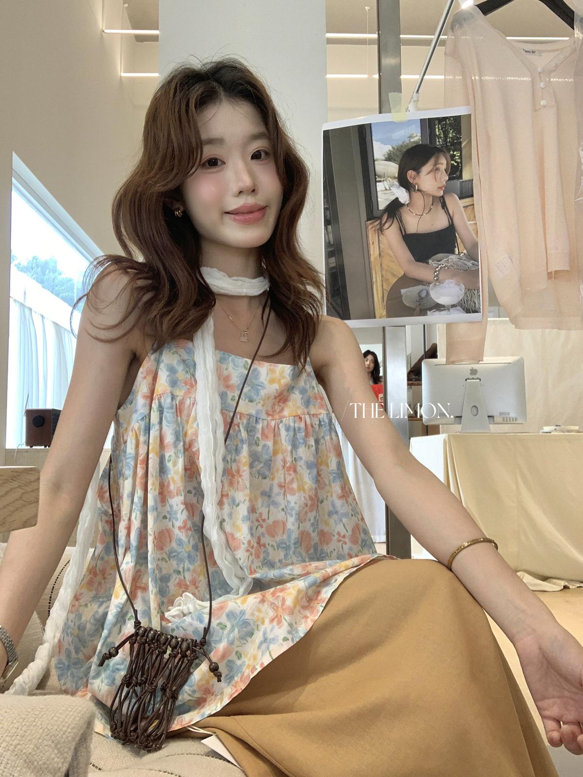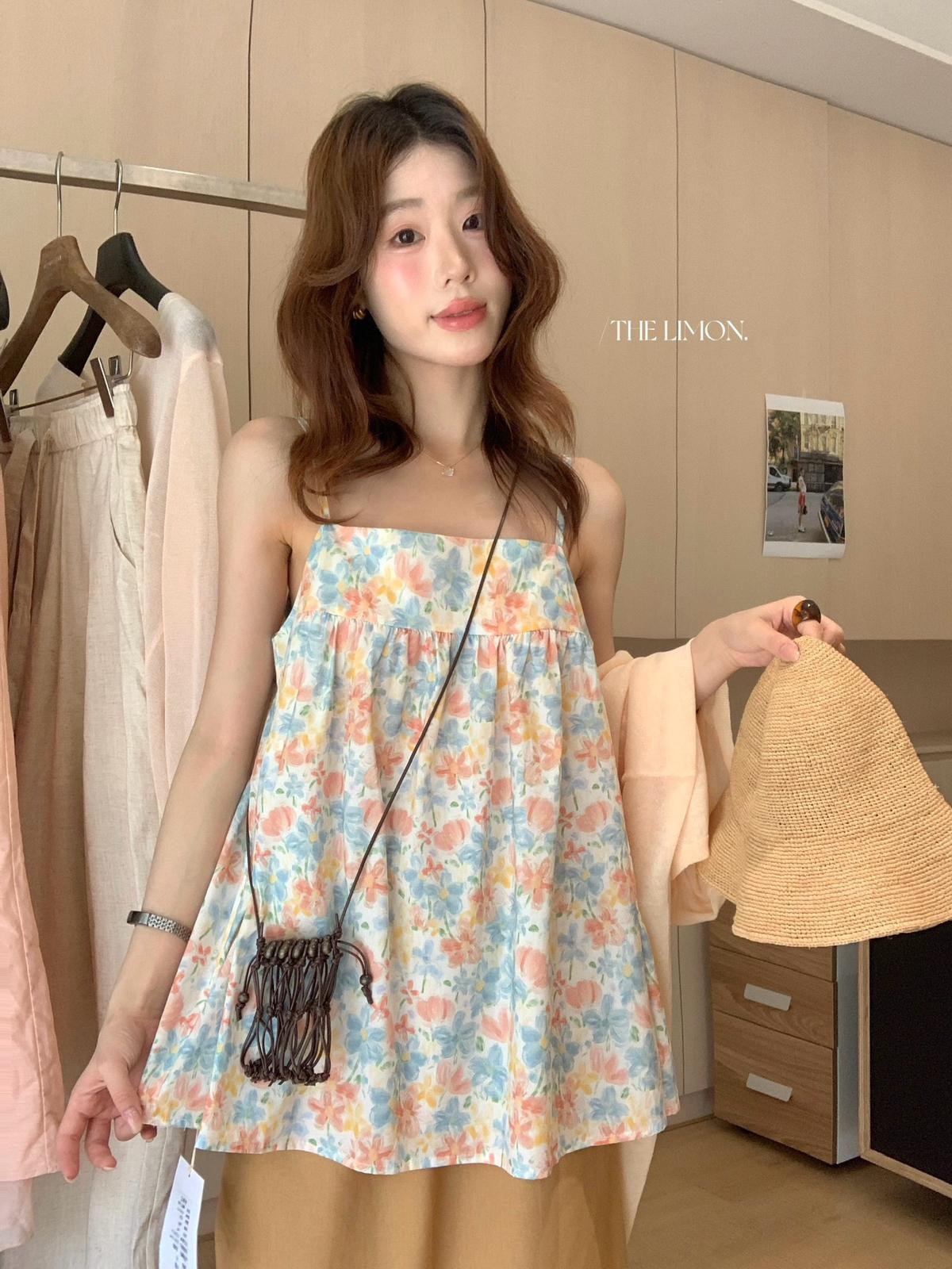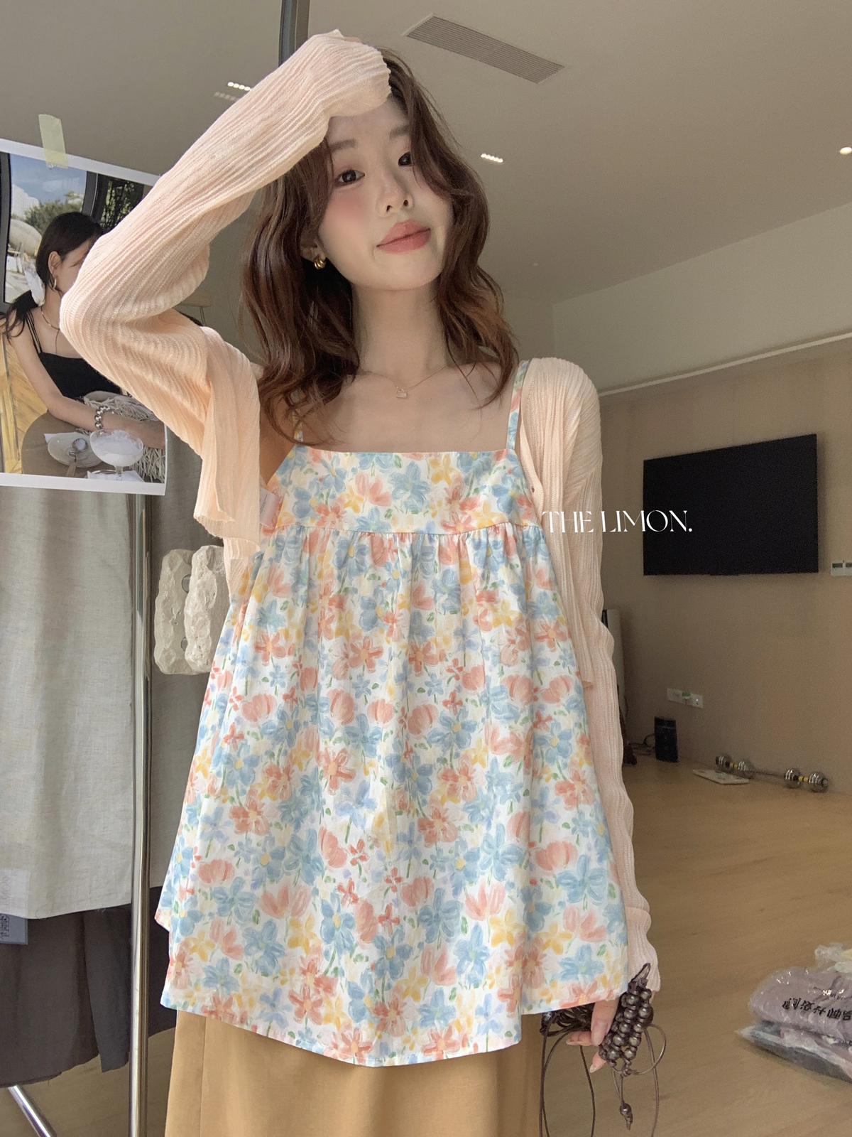 【C9244】26年夏上新!甜美度假油畫渲染吊帶背心(只賣背心)