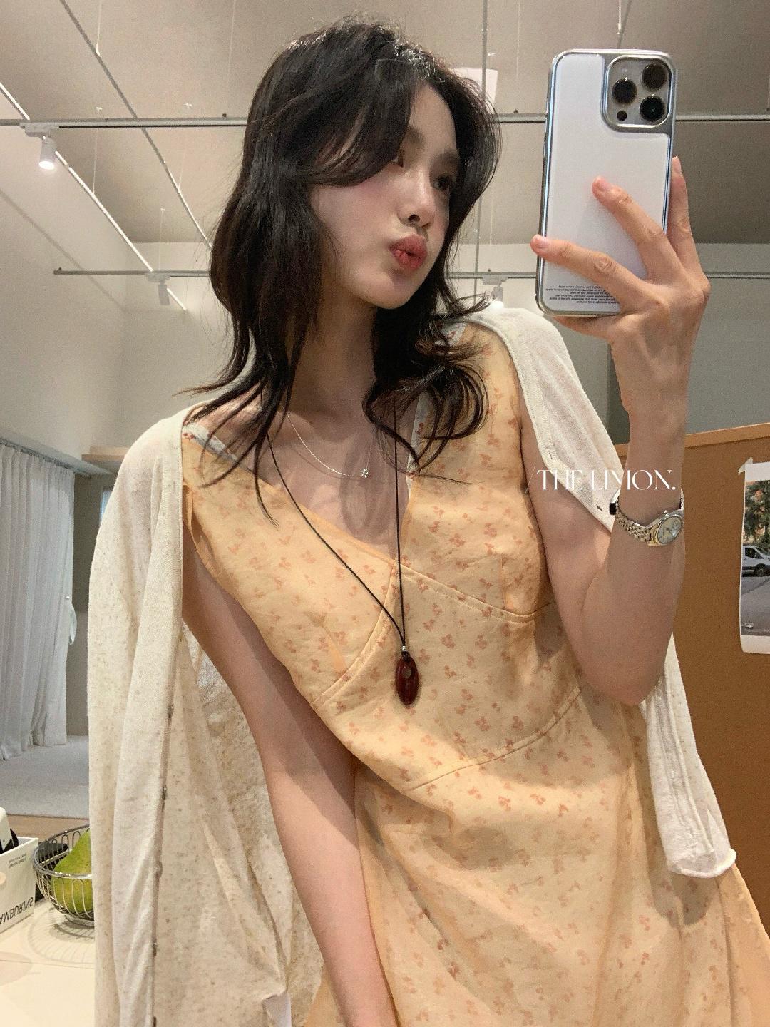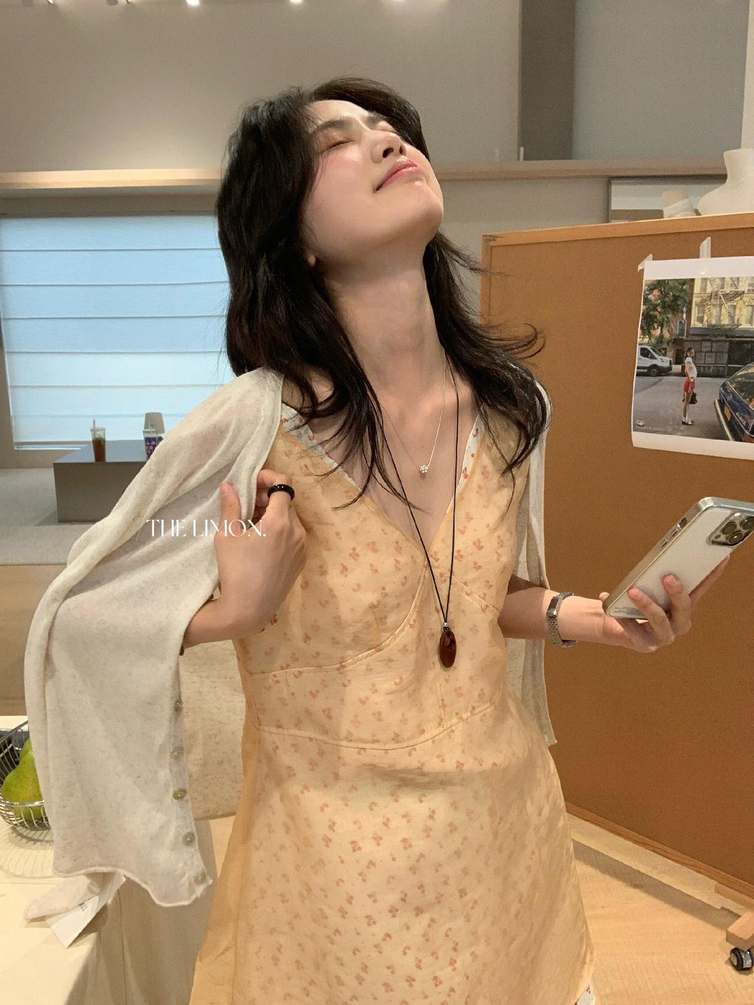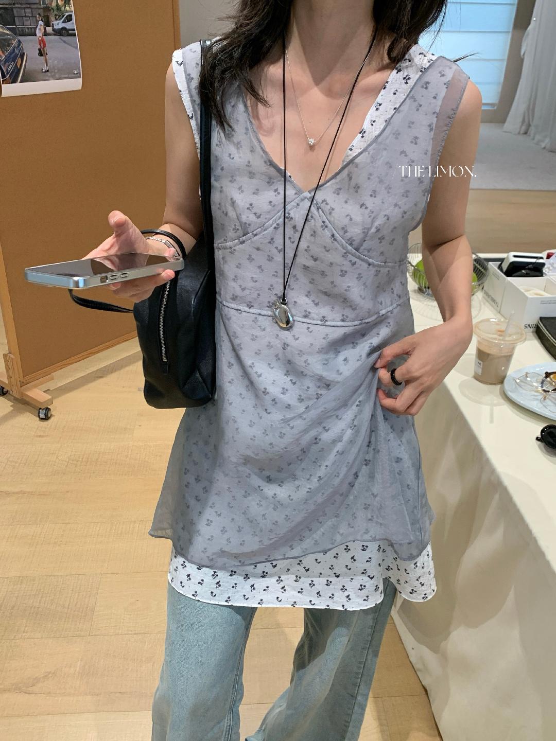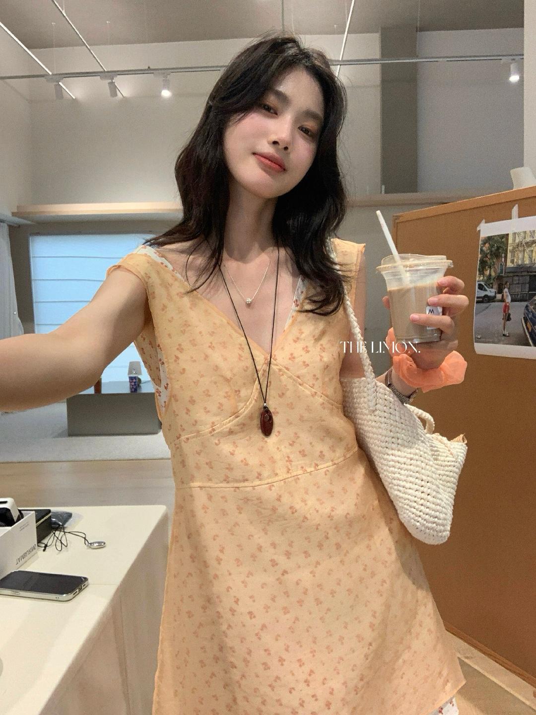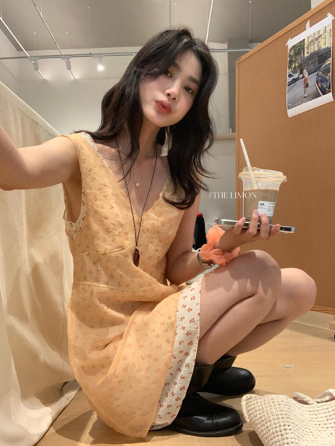 【C9245】26年夏上新!V領假兩件網紗碎花背心裙連衣裙