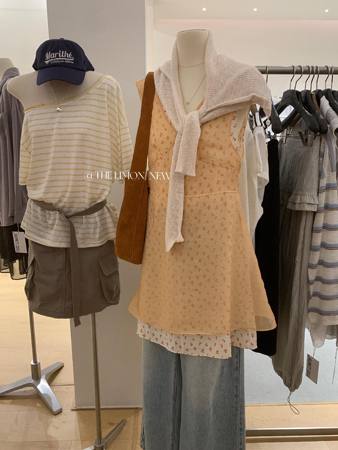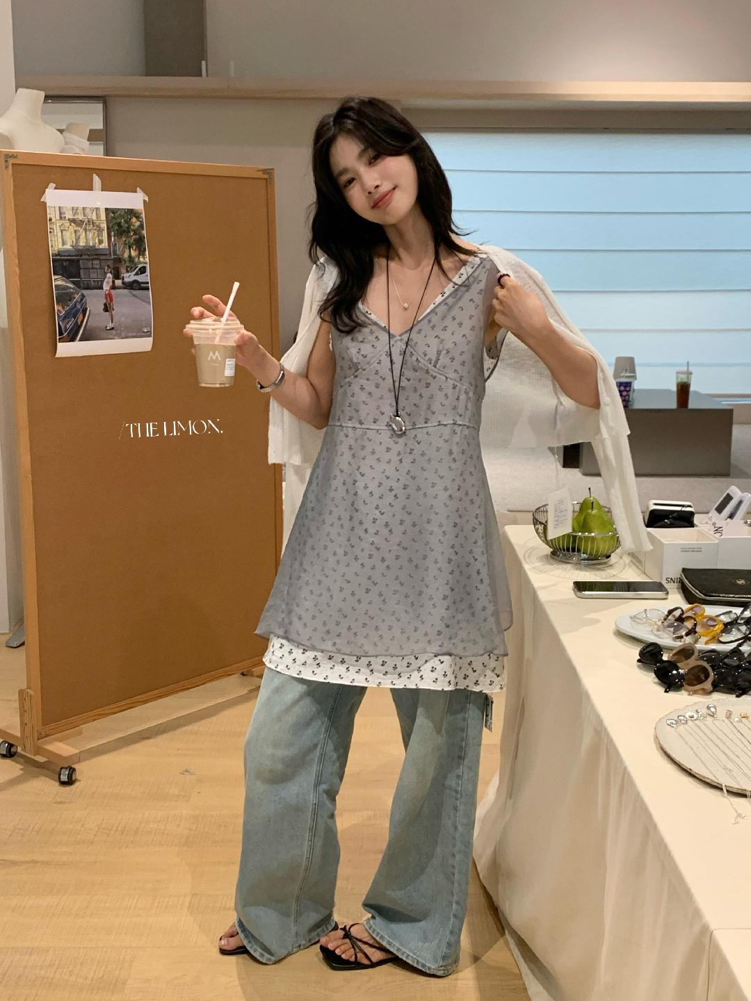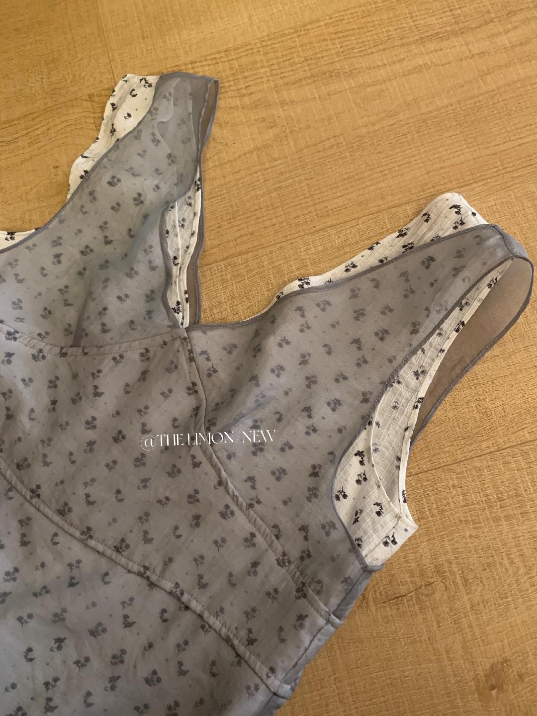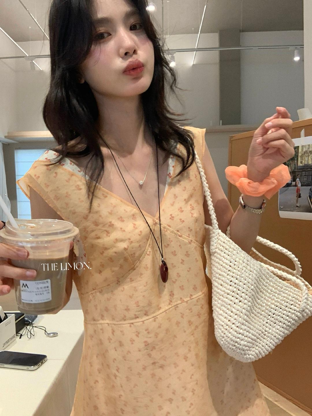 【C9245】26年夏上新!V領假兩件網紗碎花背心裙連衣裙