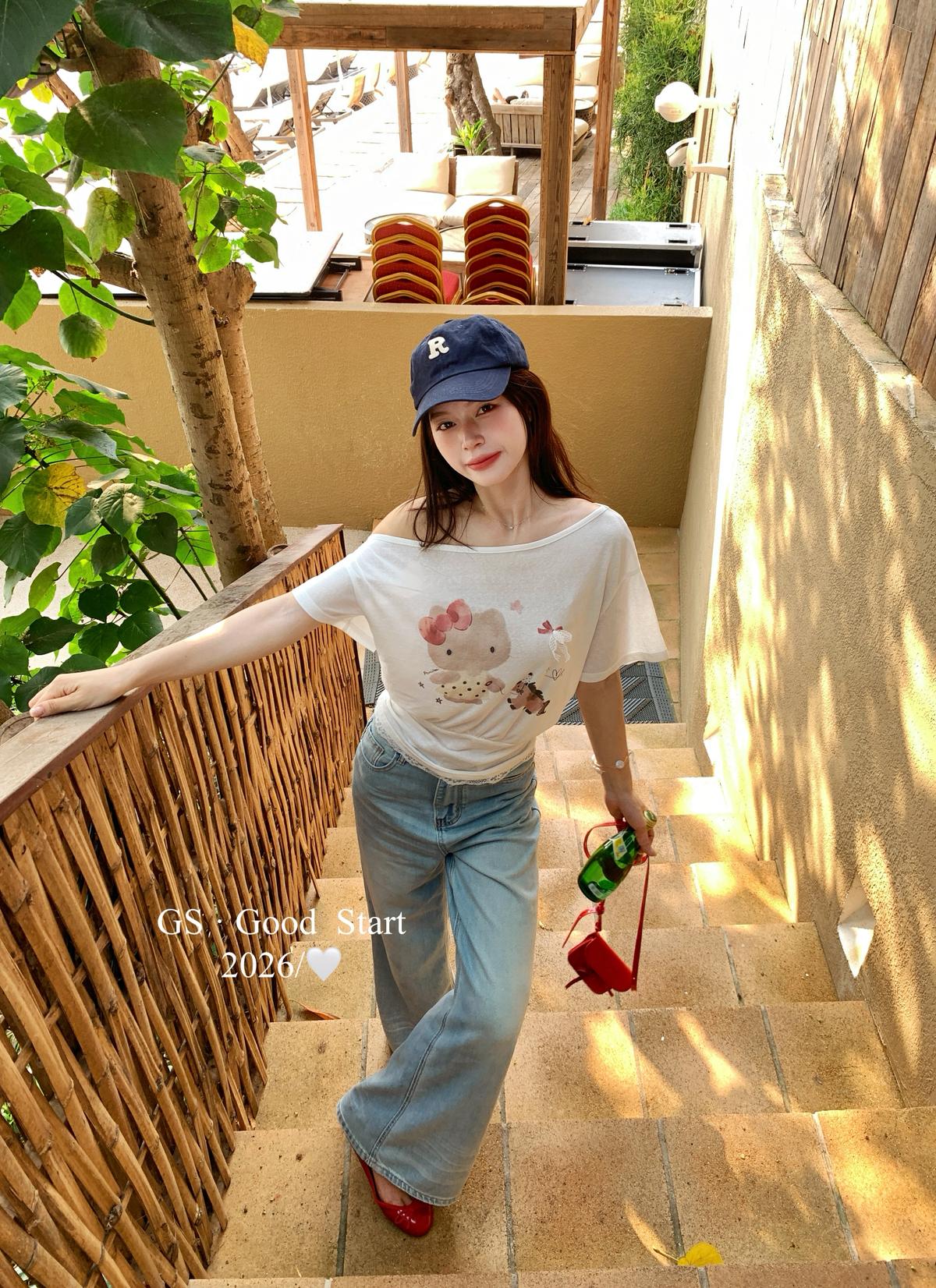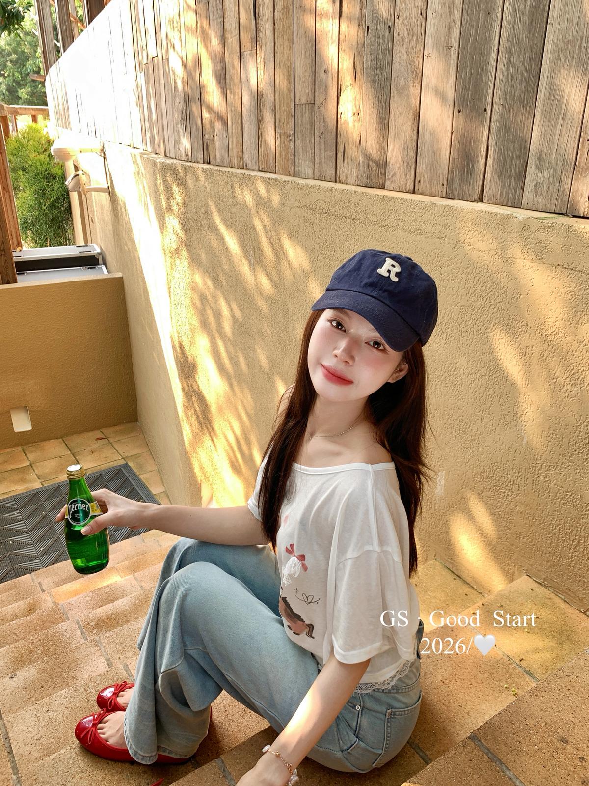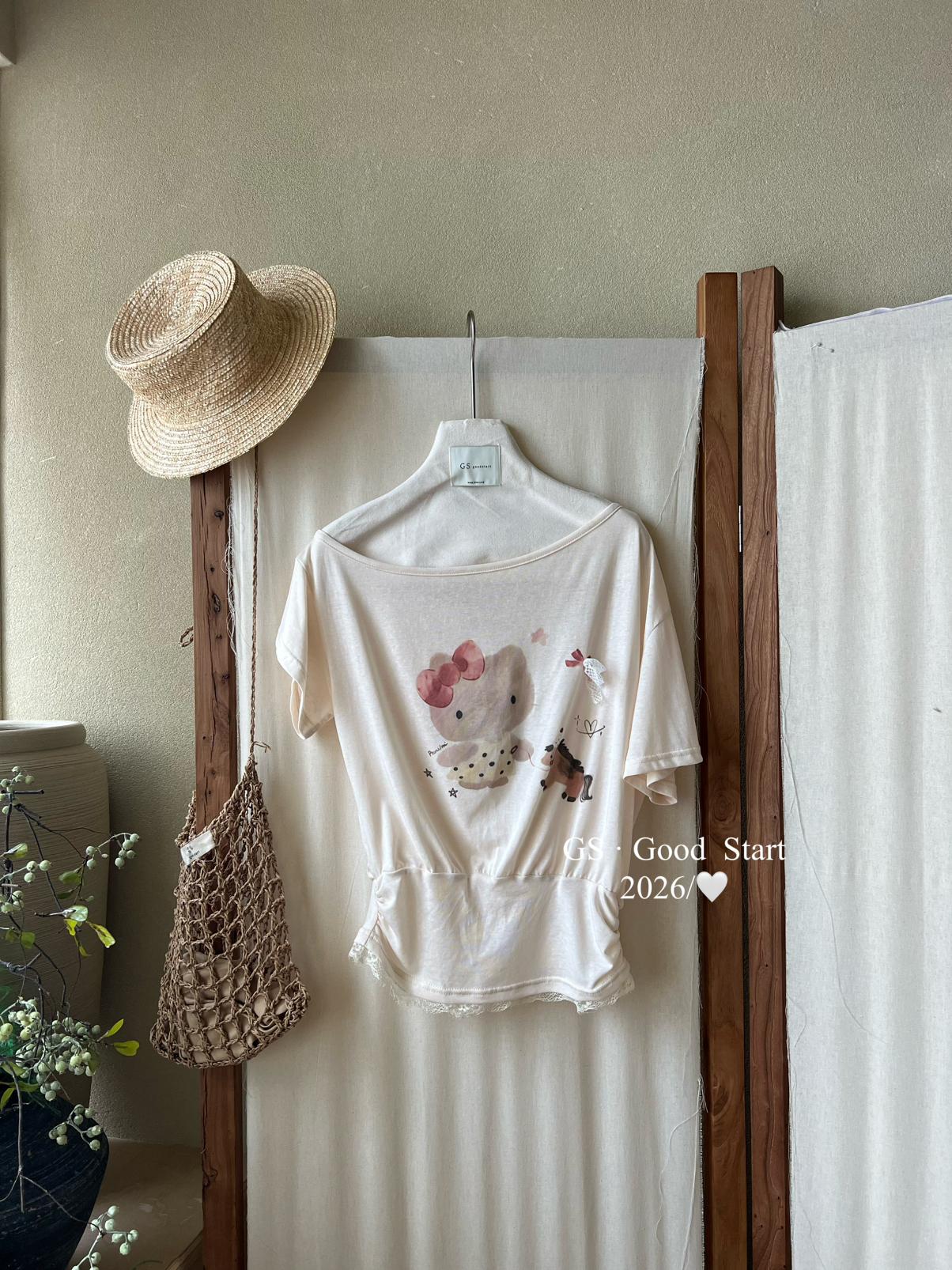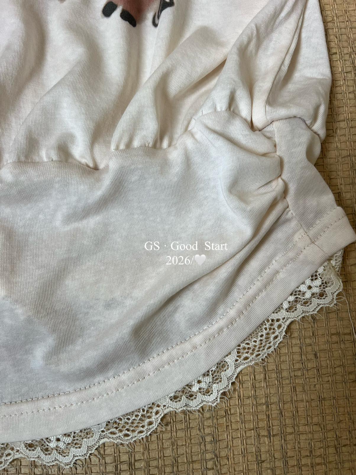 【C9247】好賣buff疊滿!鬆弛輕甜系*強推!夏季休閒趣味印花露肩短袖小衫(不含下裝)