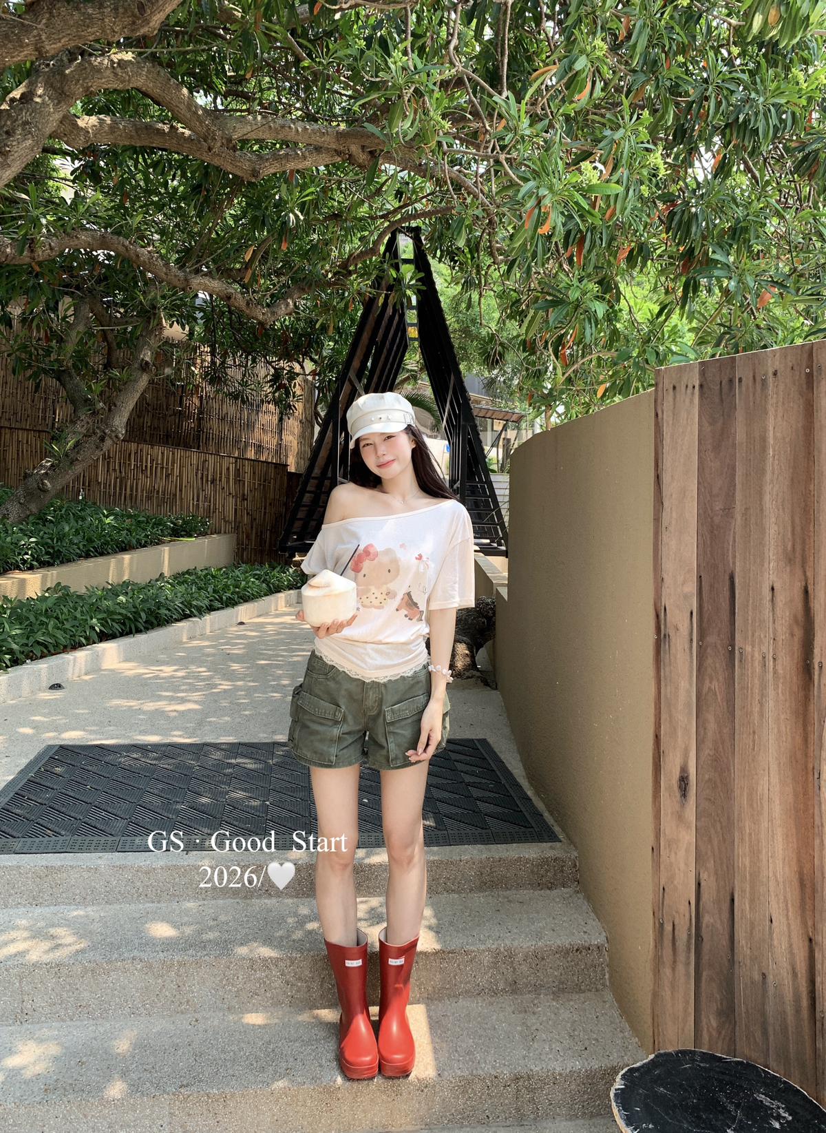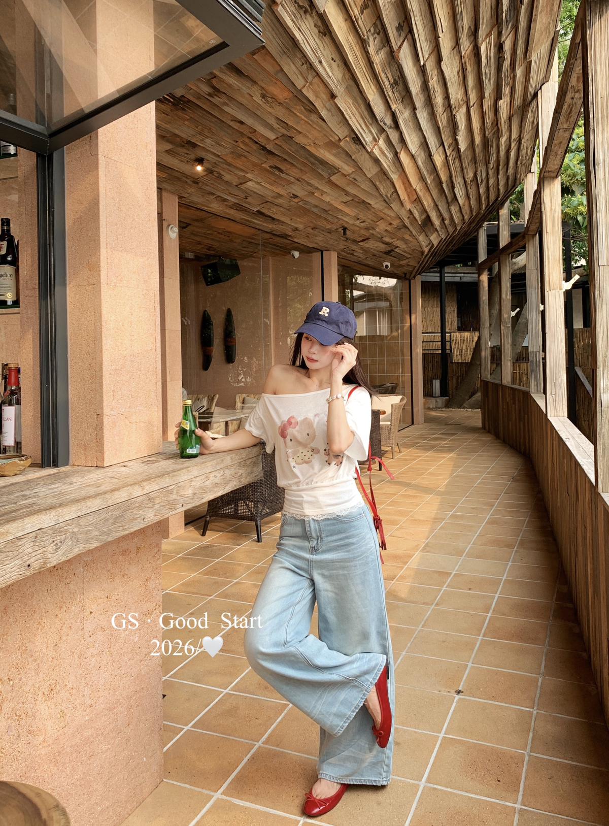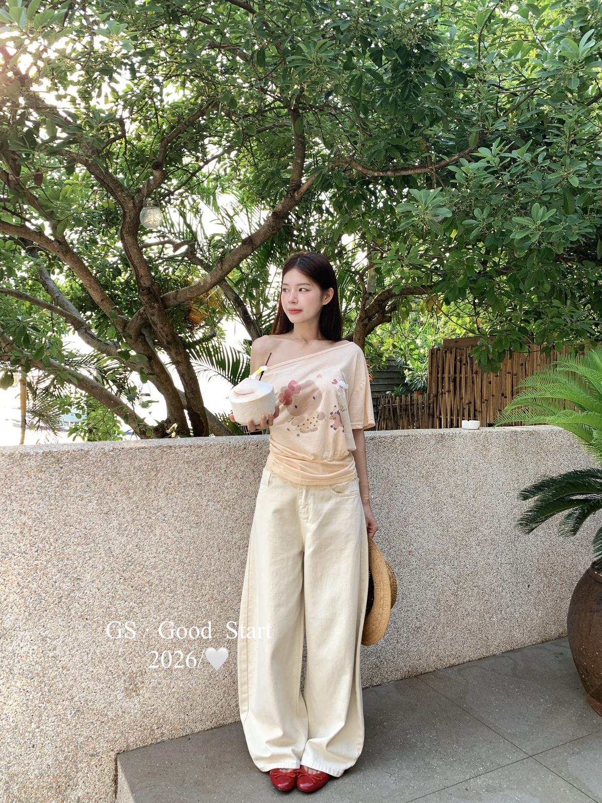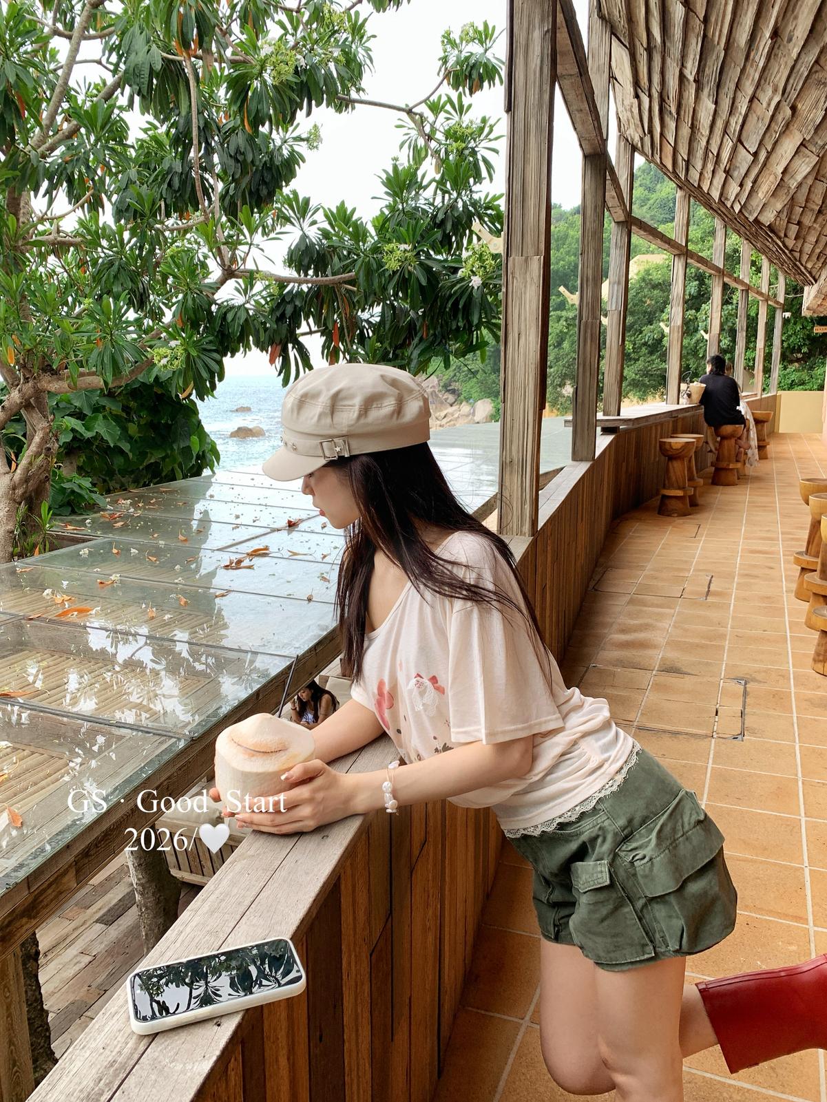 【C9247】好賣buff疊滿!鬆弛輕甜系*強推!夏季休閒趣味印花露肩短袖小衫(不含下裝)