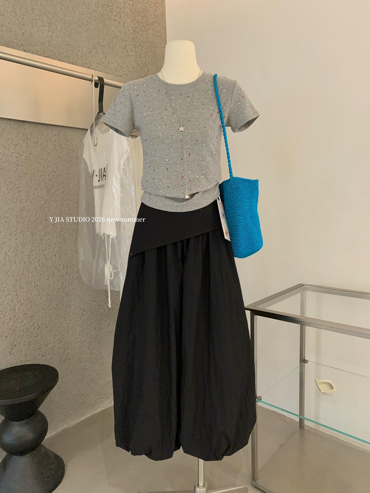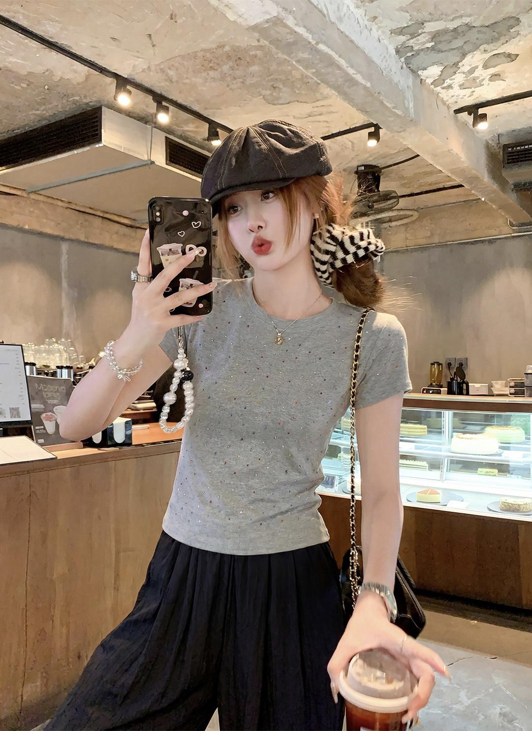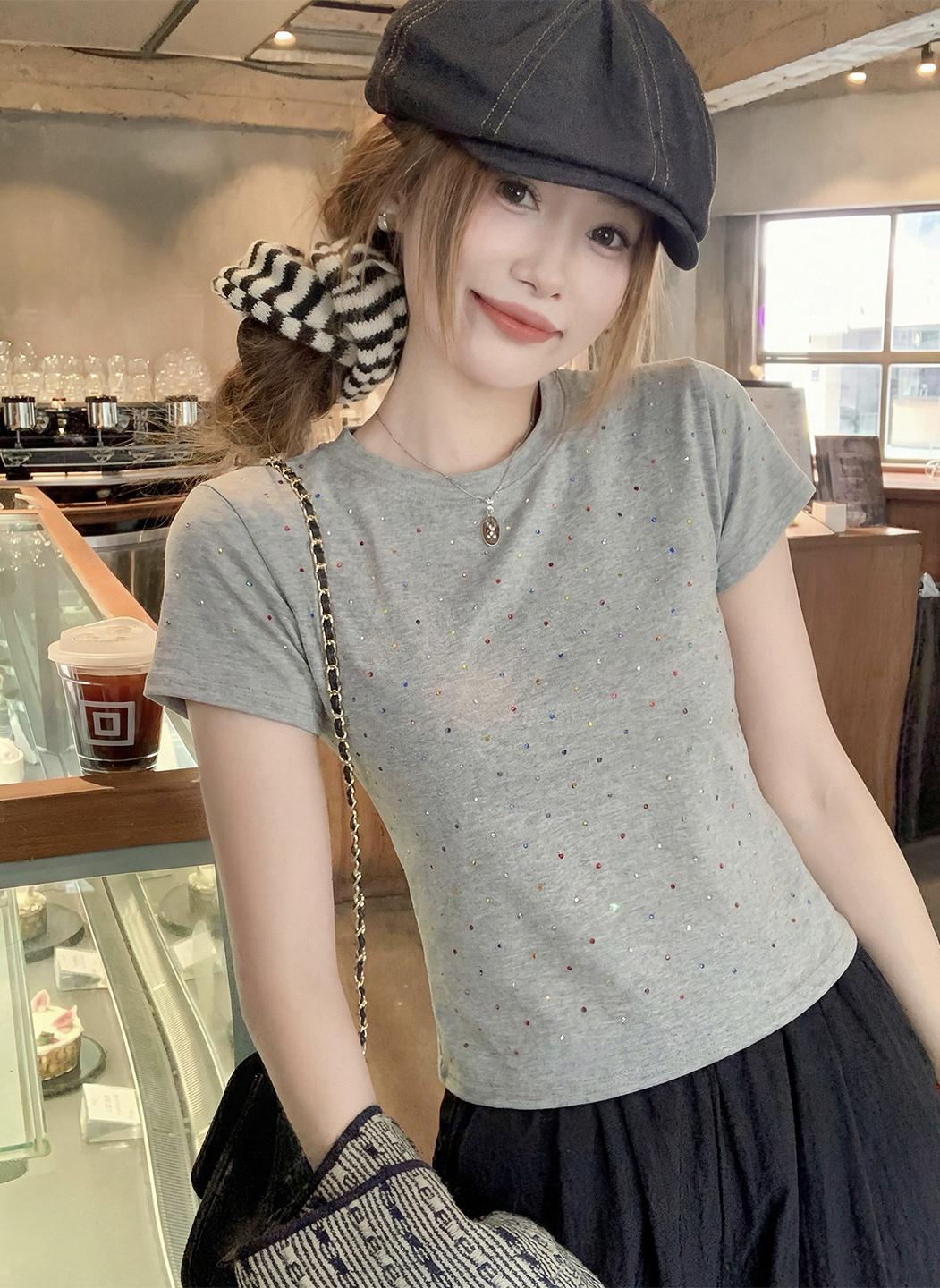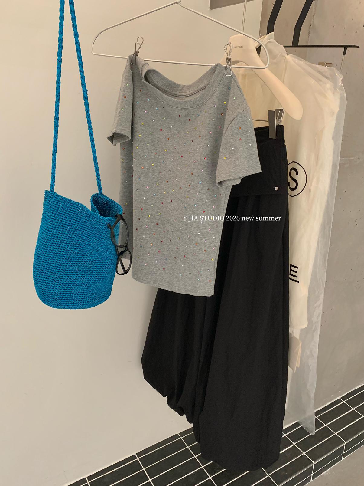 【C9296】Ins燙鑽波點短款正肩短袖T恤(不配包包只賣短袖)