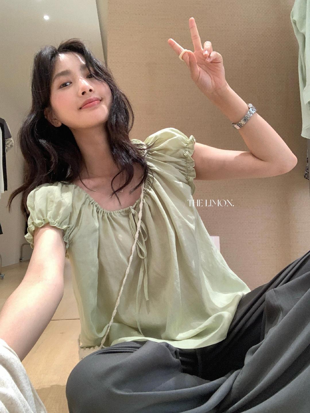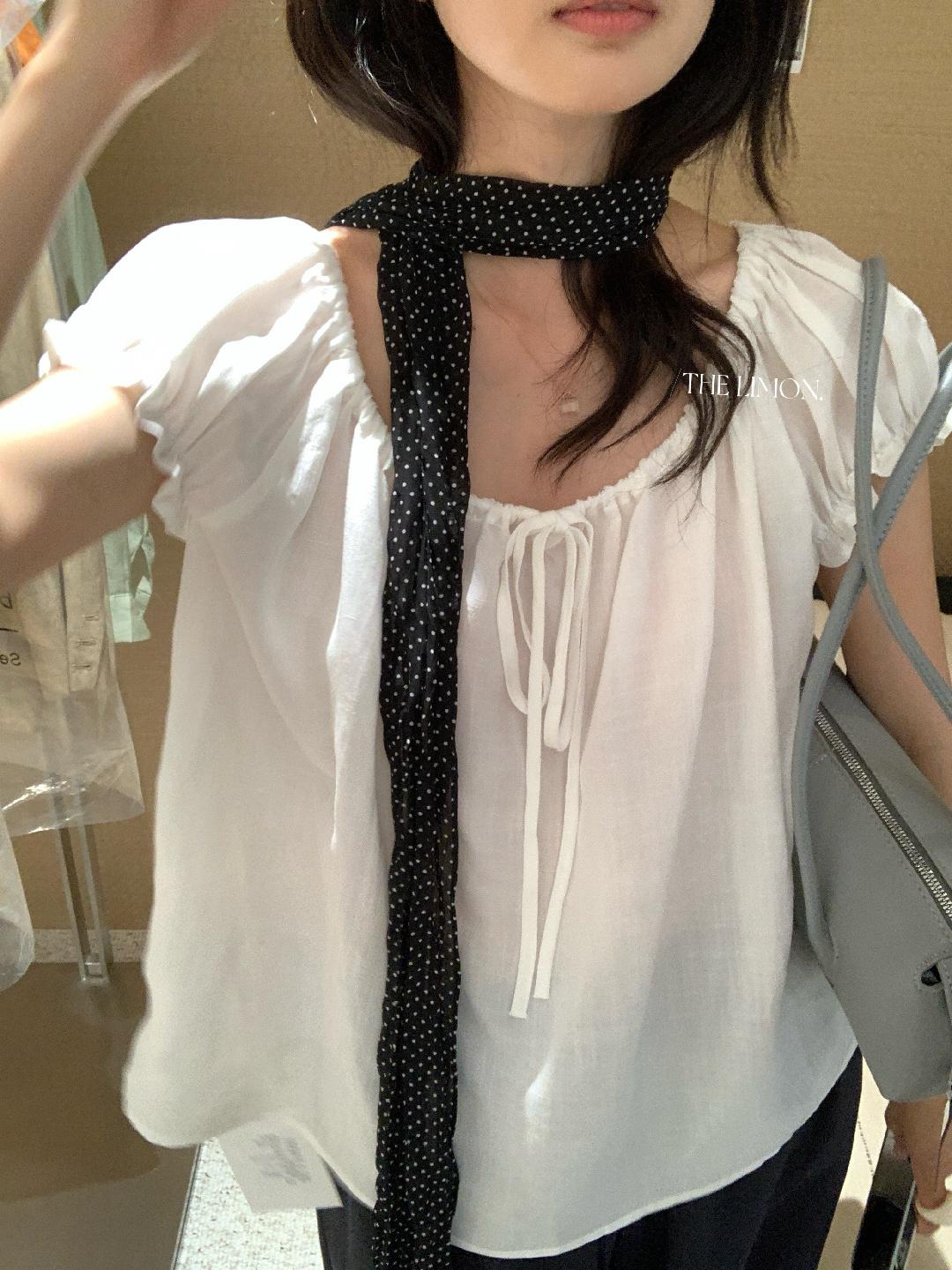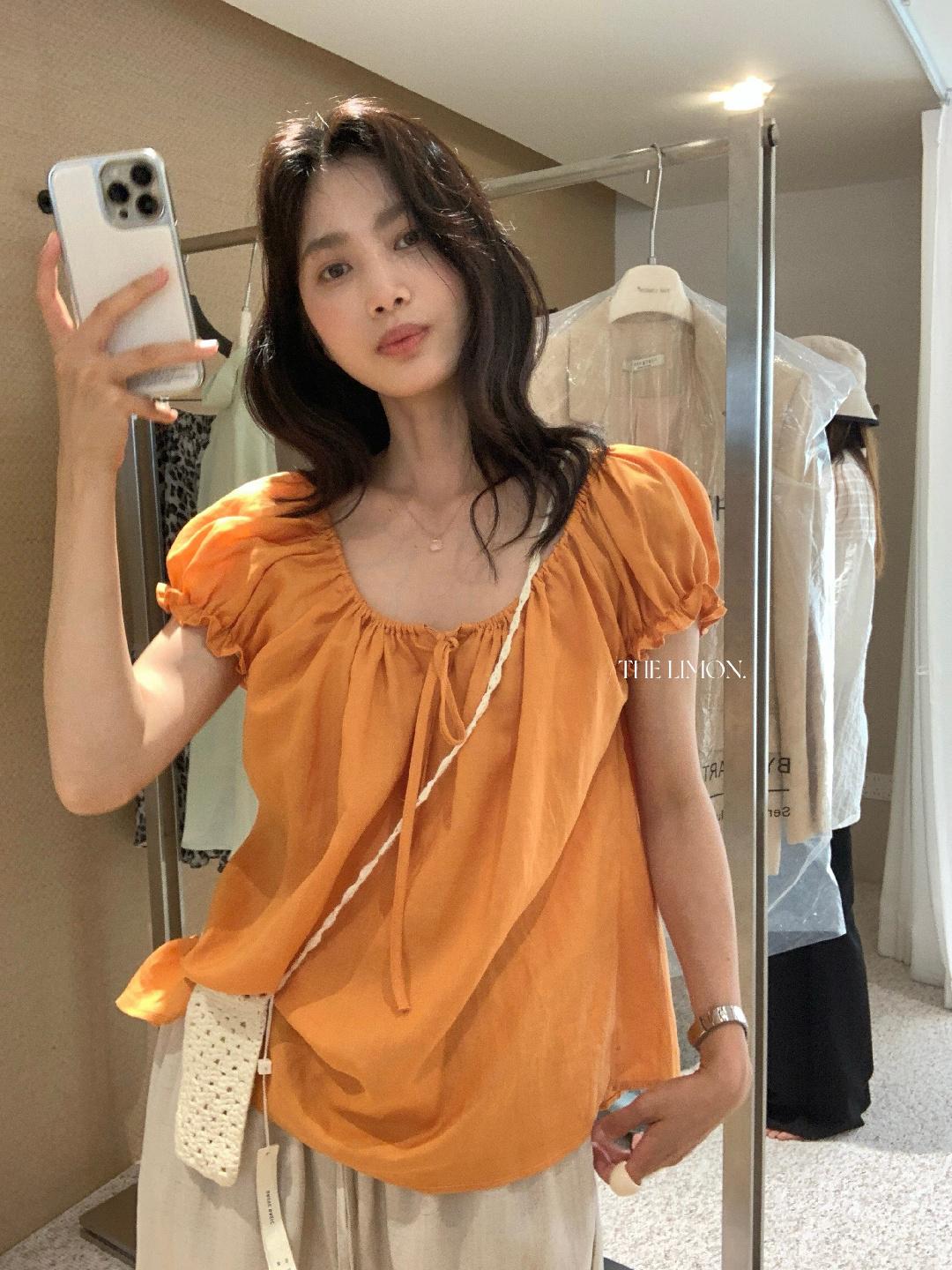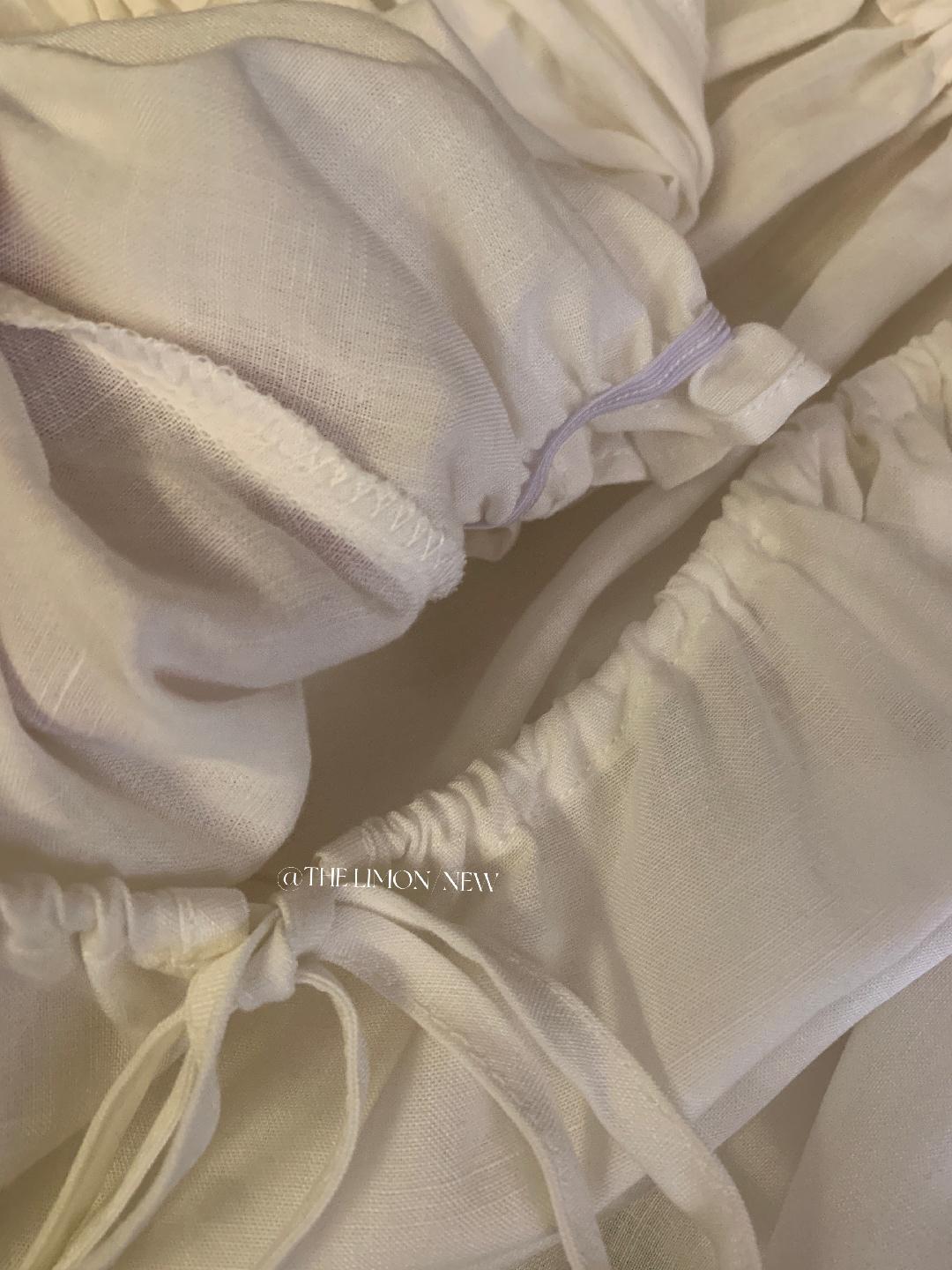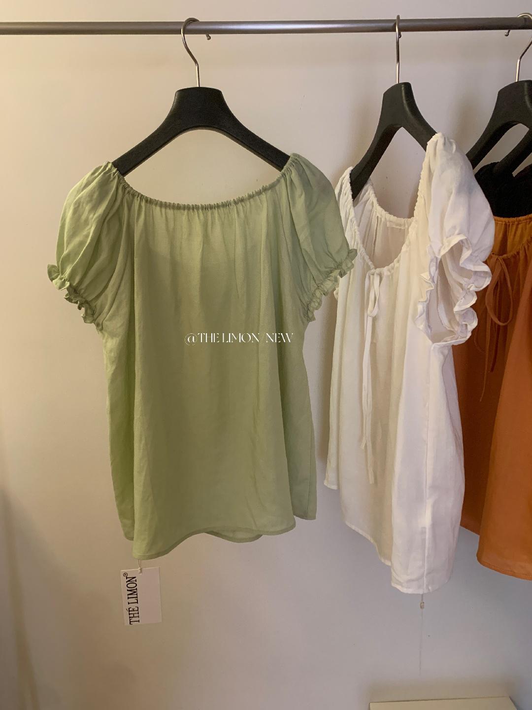 【C9309】抽繩可調節一字肩圓領(含麻有麻結麻點屬正常)小衫