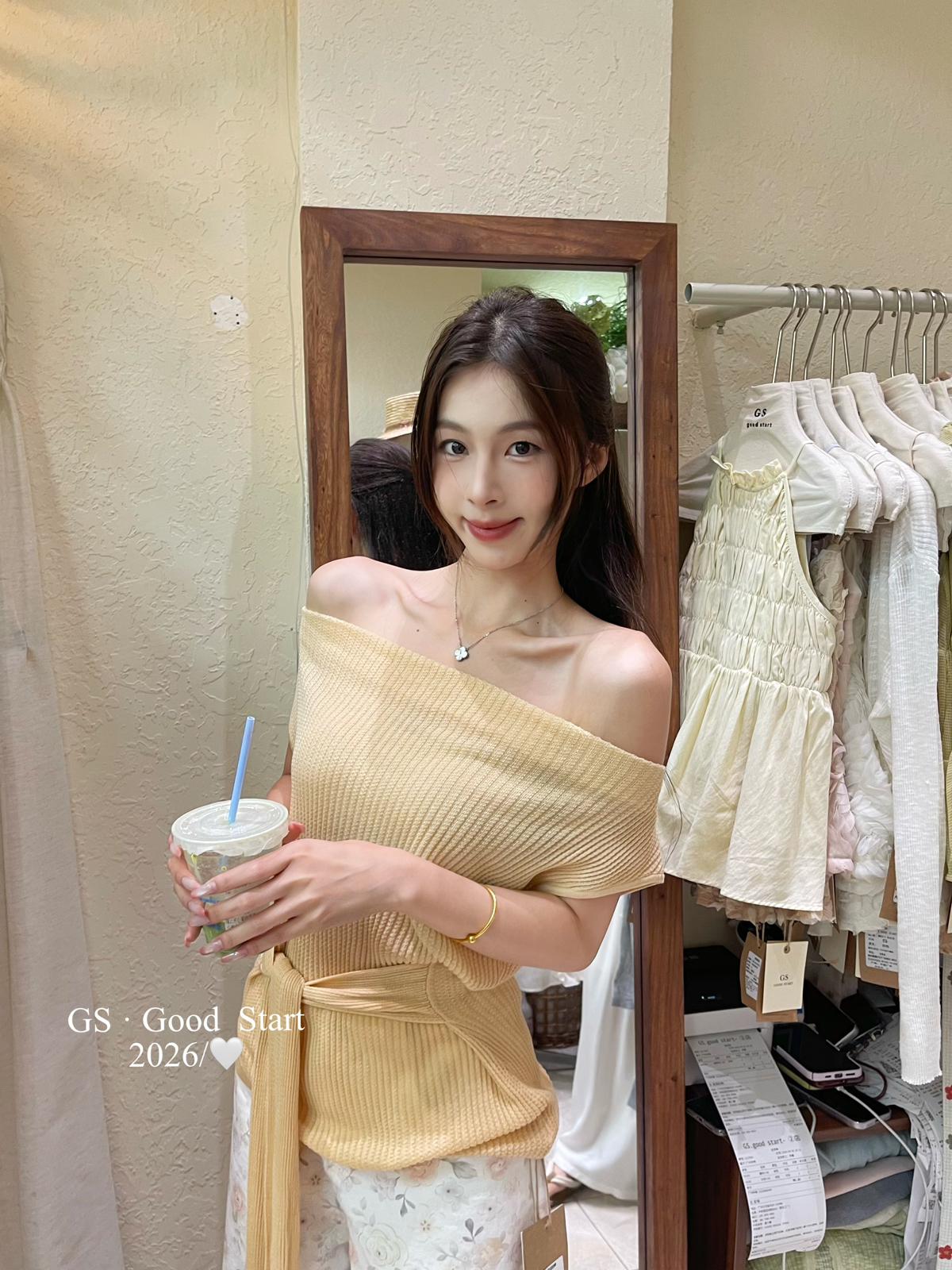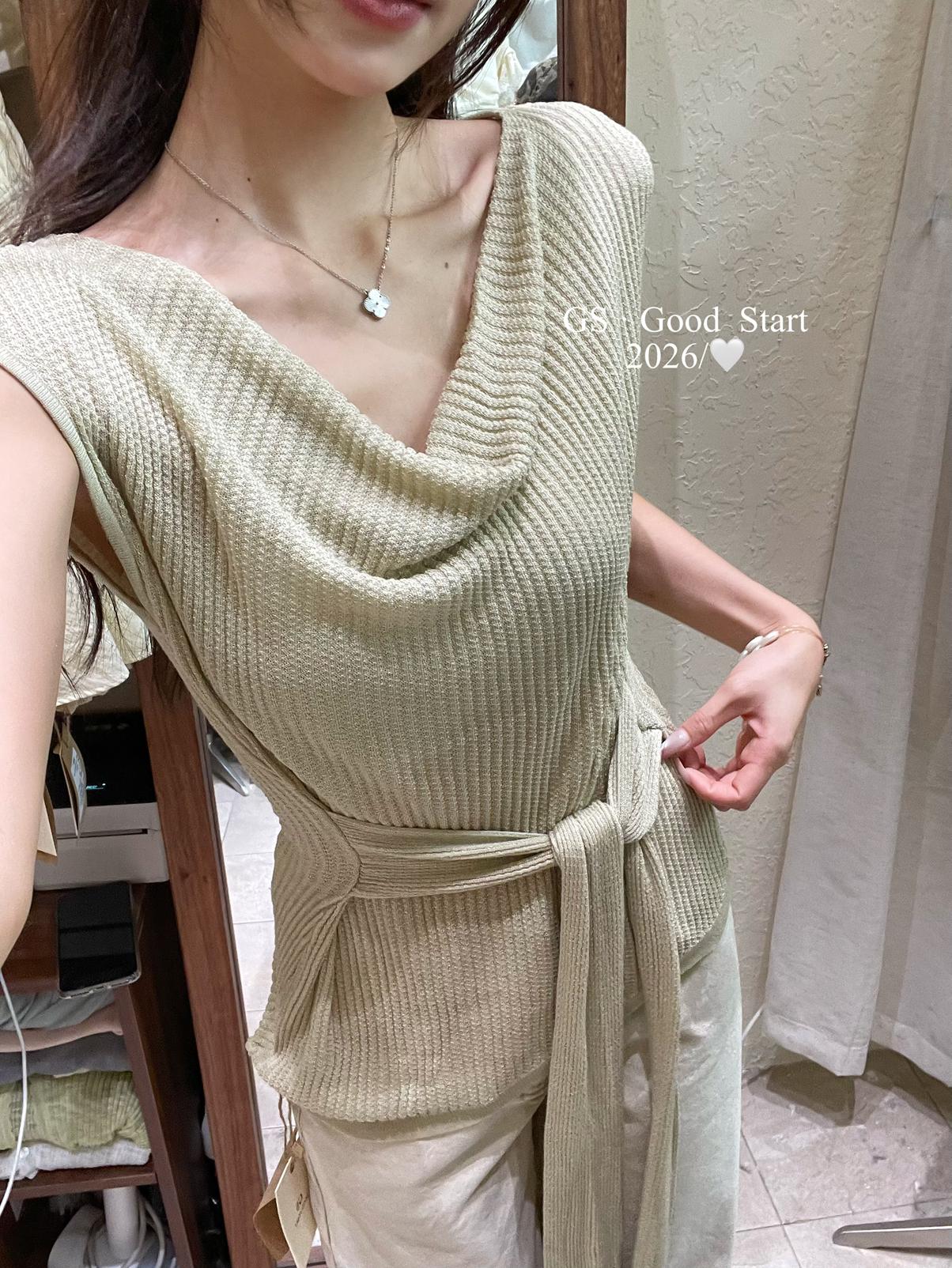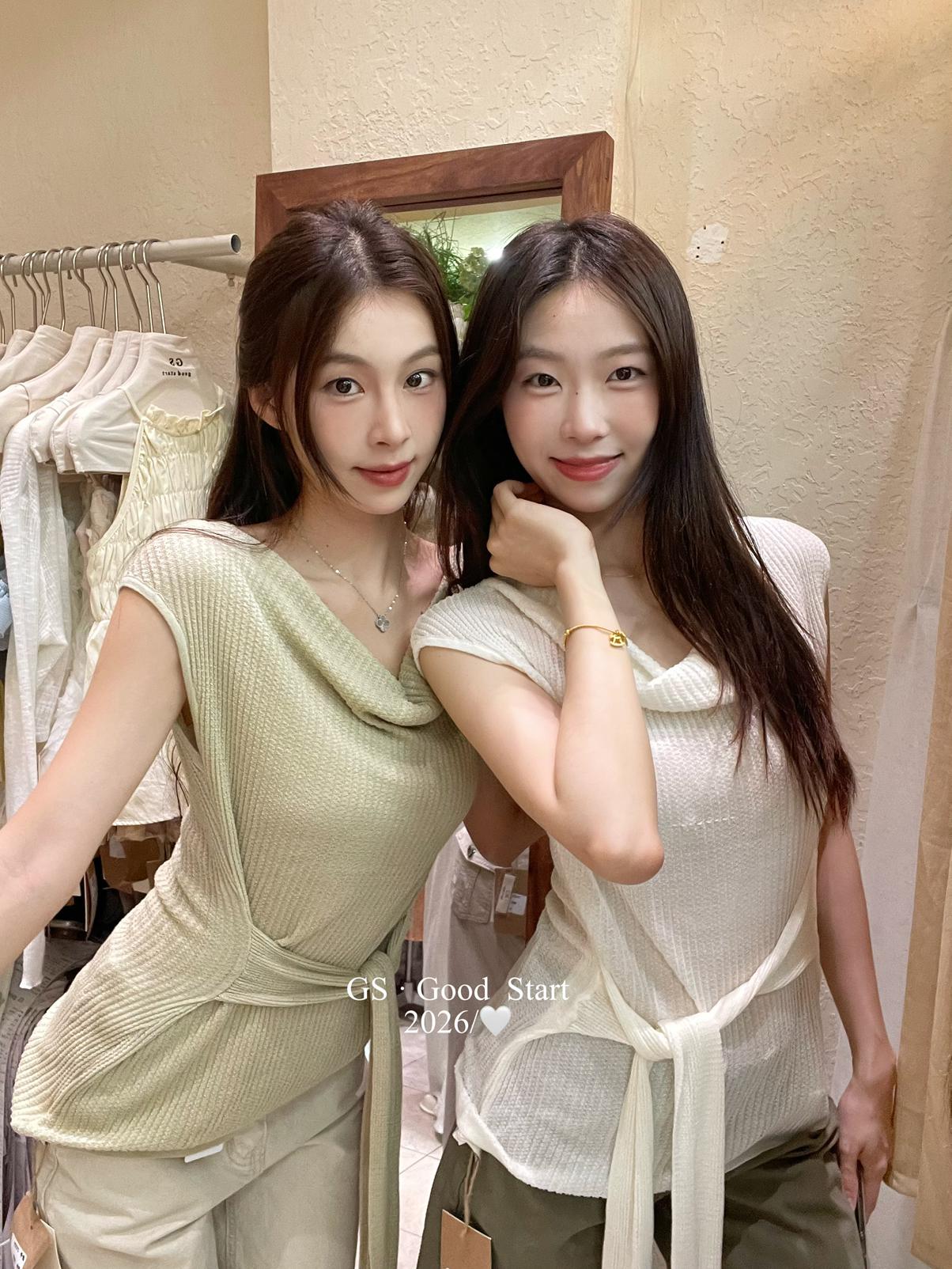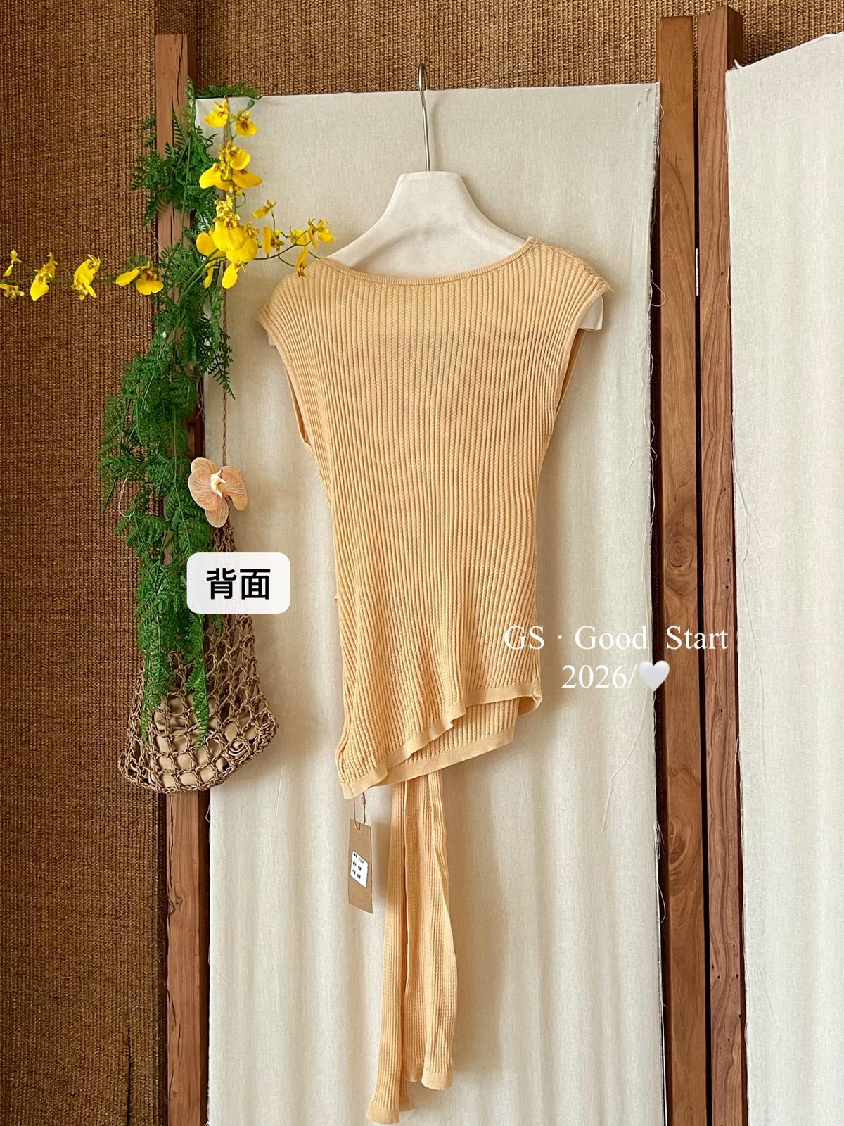 【C9310】好賣系列!氣質掛*韓劇女主~夏季溫柔簡約蕩領綁帶設計針織小衫