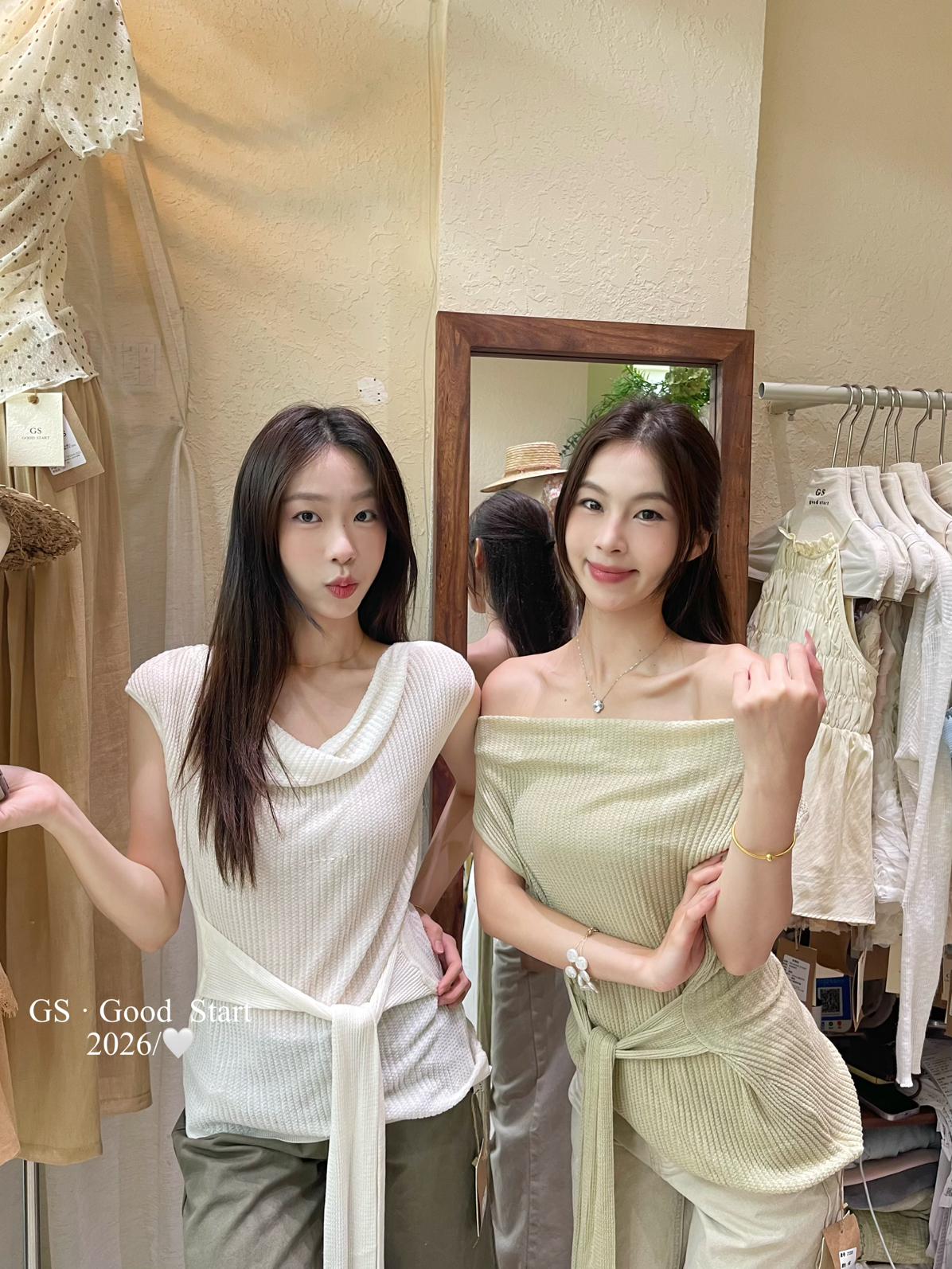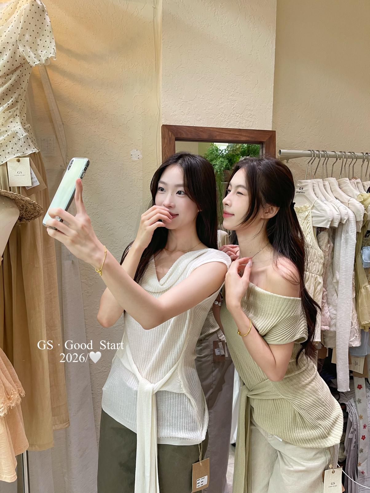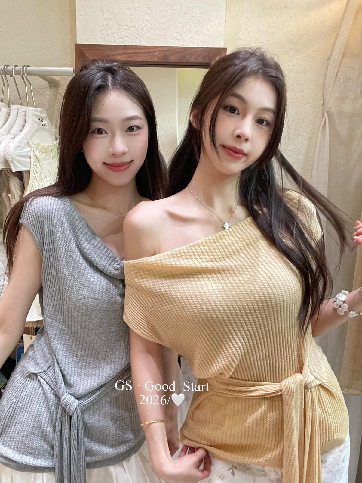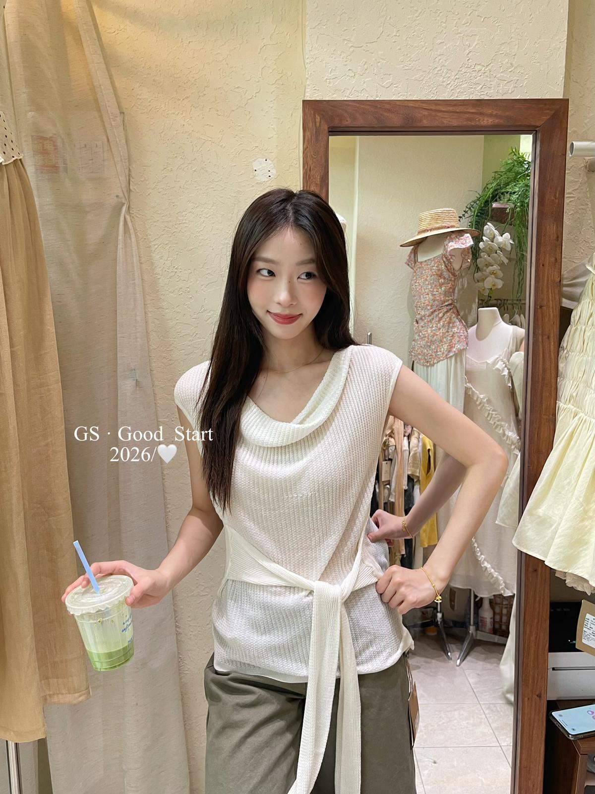【C9310】好賣系列!氣質掛*韓劇女主~夏季溫柔簡約蕩領綁帶設計針織小衫
