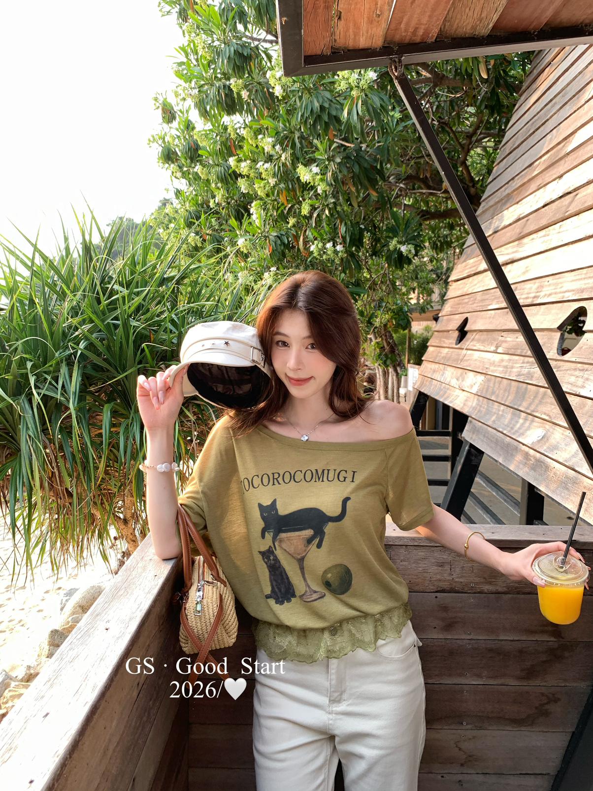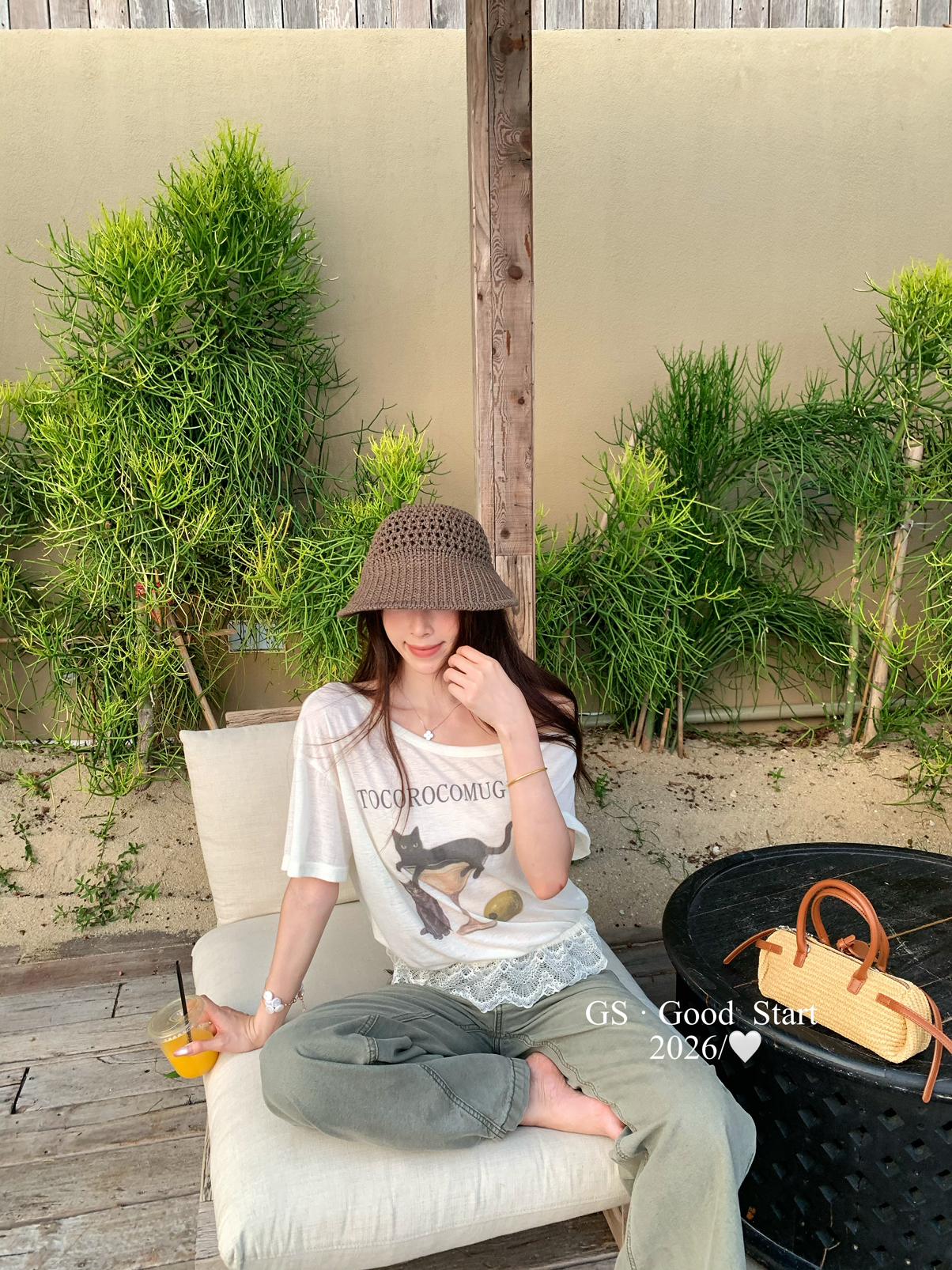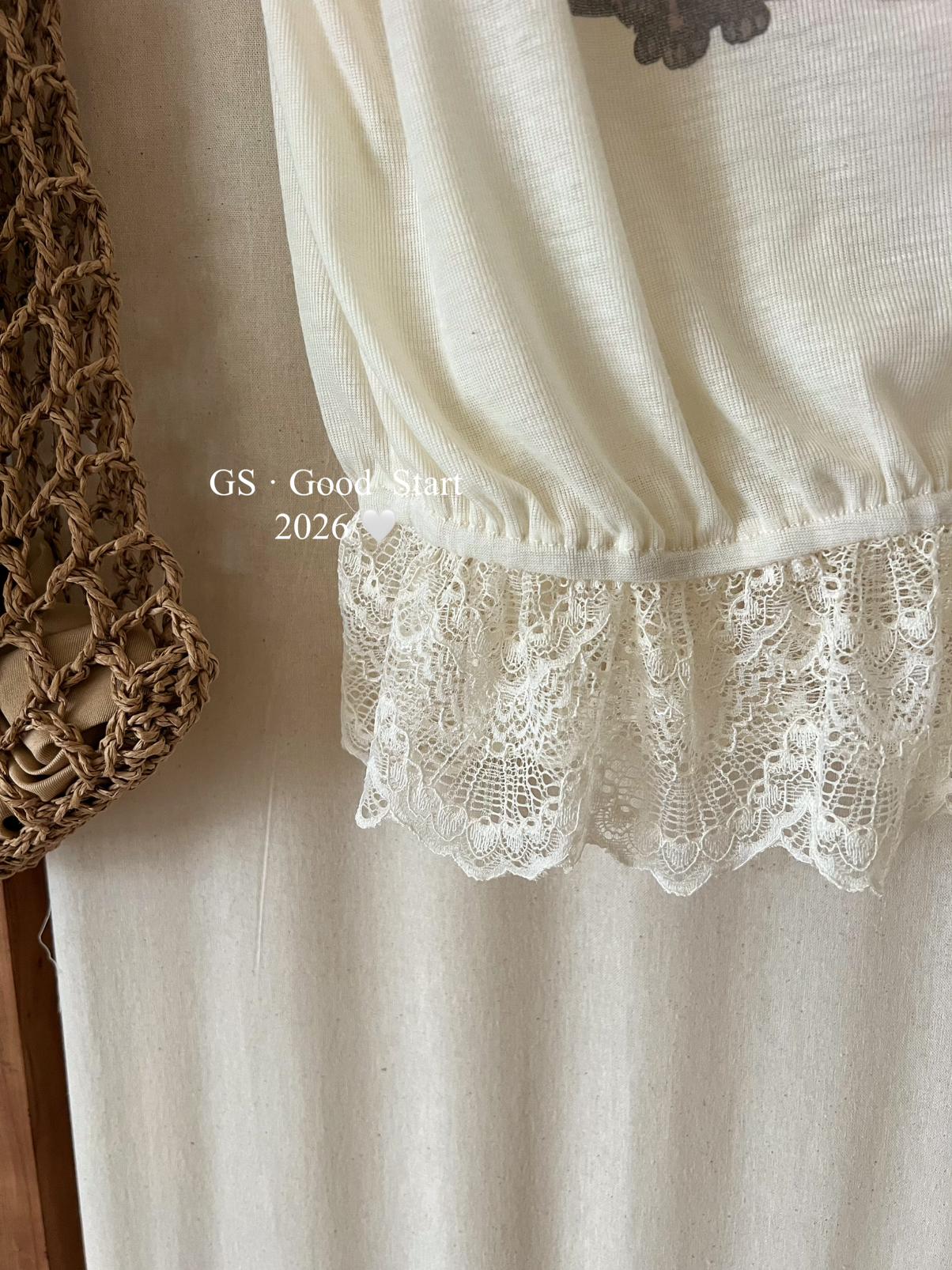 【C9314】韓網流量*小黑貓印花_秒變IG時髦精!夏季趣味印花蕾絲拼接短袖T恤