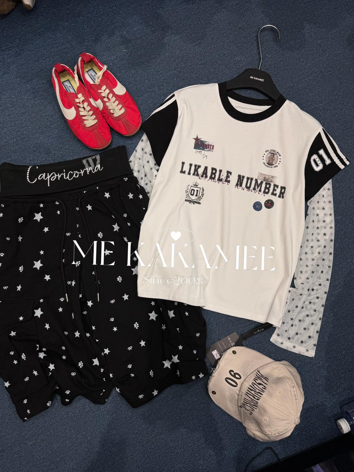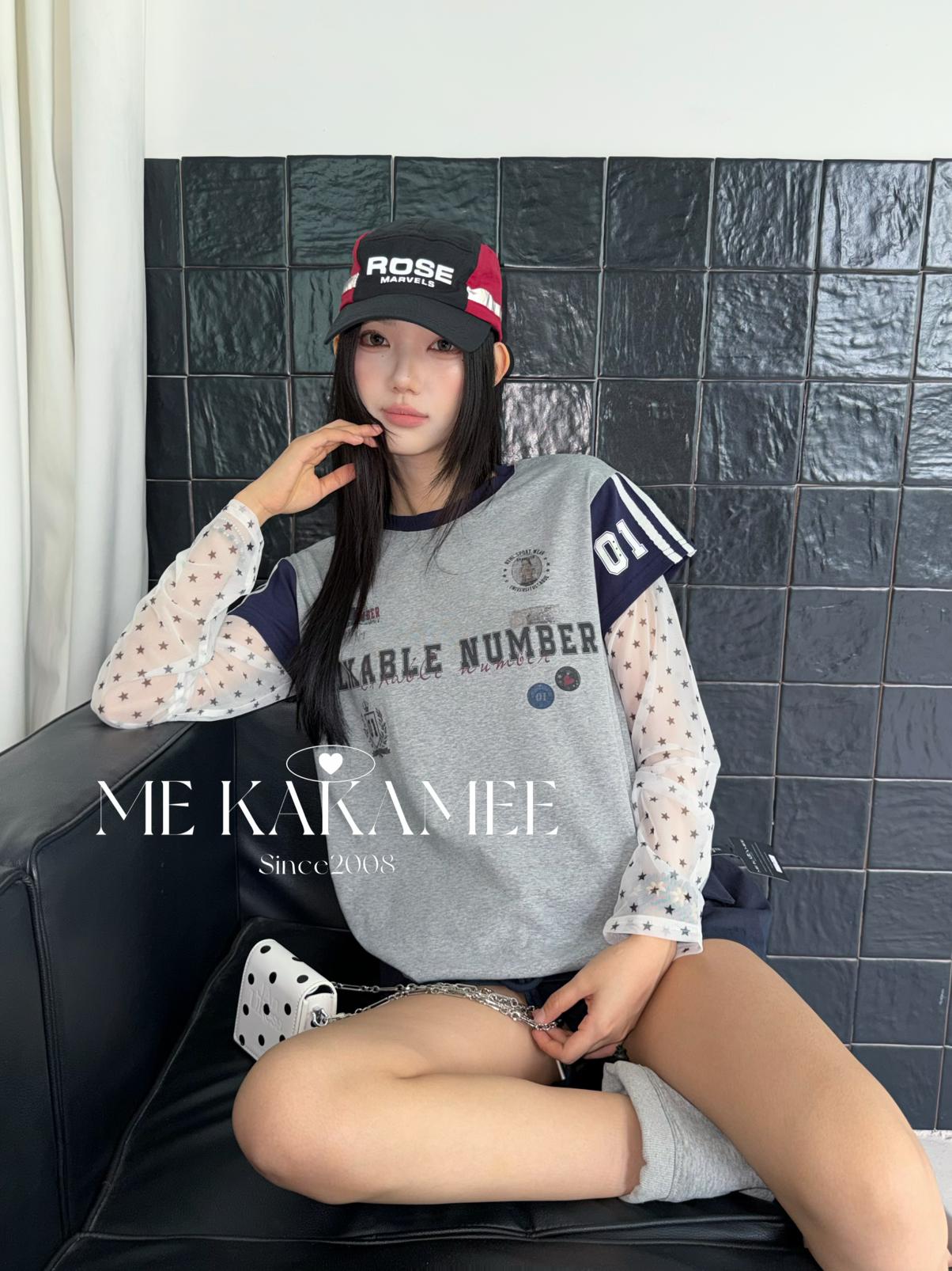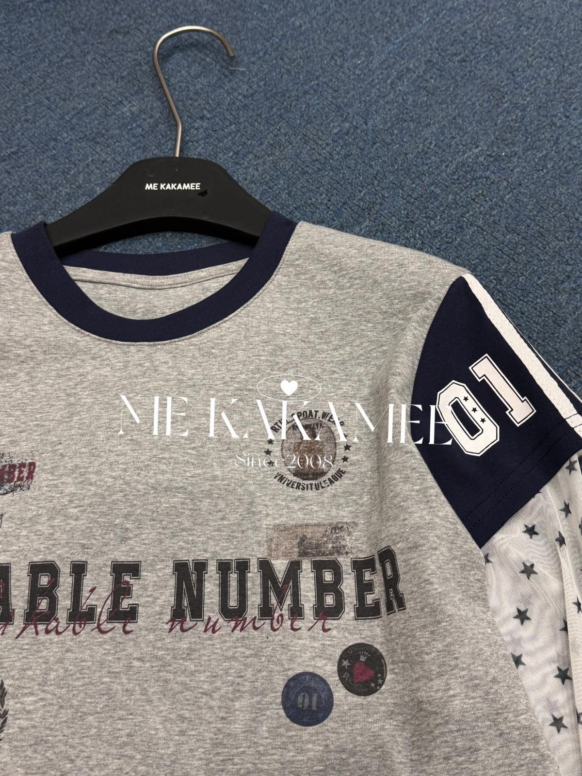 【C9320】夏新品美式復古假兩件星星網紗拼接防曬袖長袖T恤(只賣T恤)