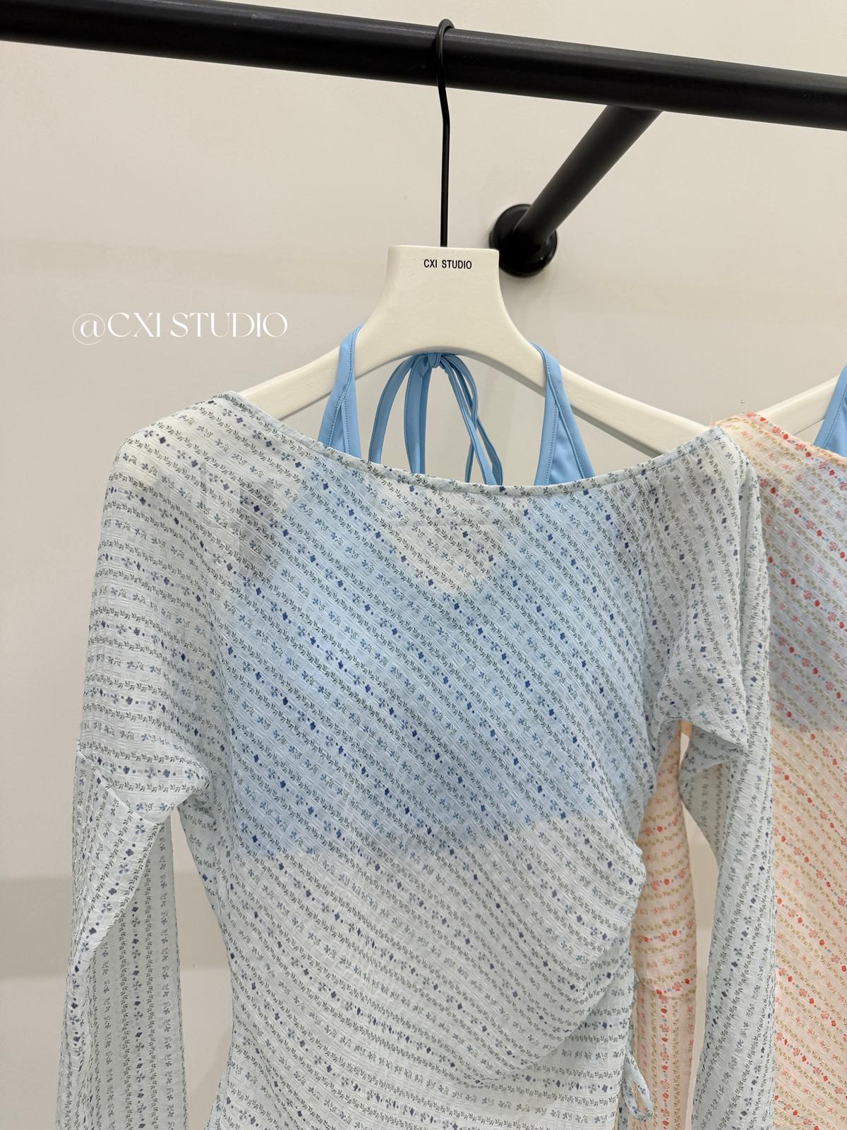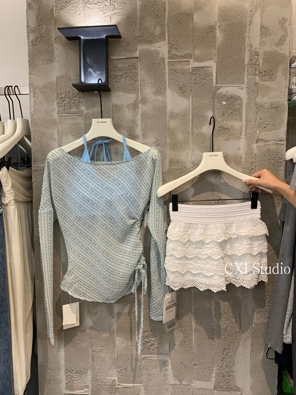 【C9323】設計慵懶感露肩兩件套掛脖背心+防曬小衫套裝