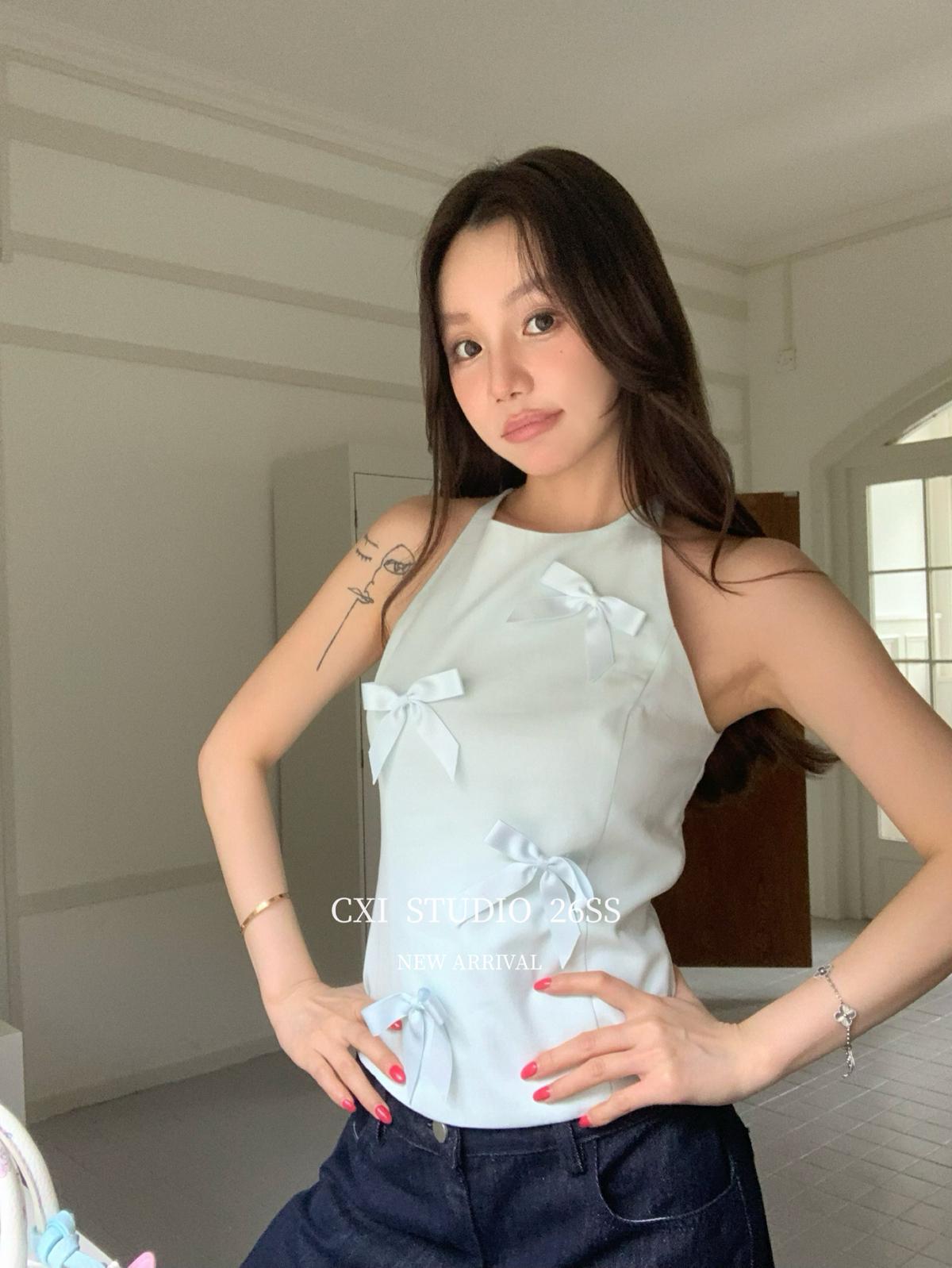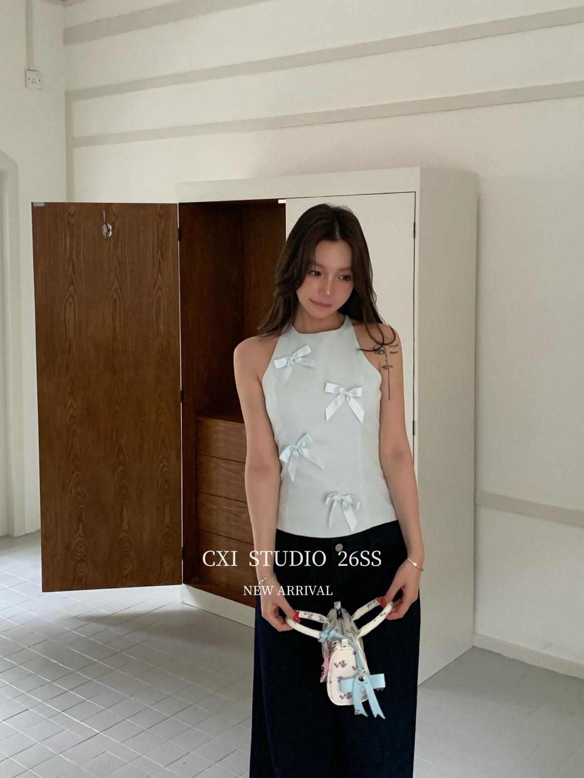 【C9324】設計感無袖重工蝴蝶結收腰氣質背心