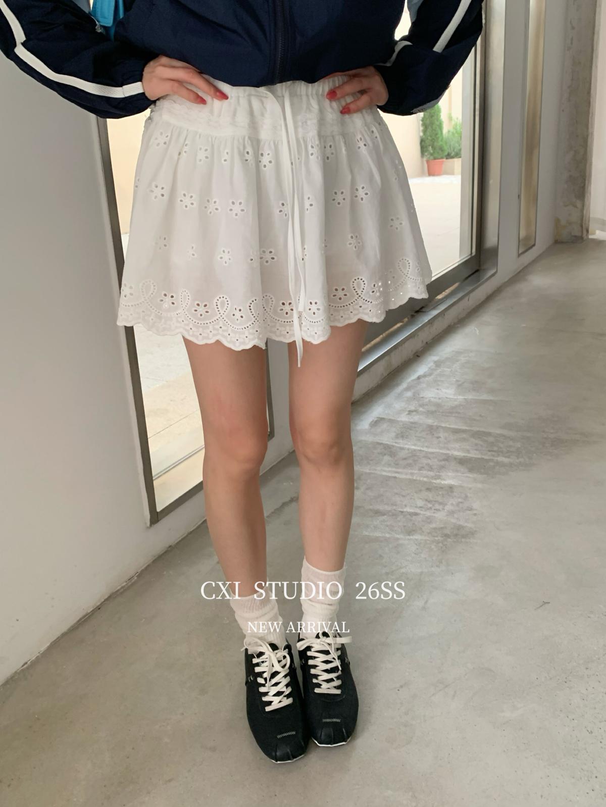 【C9326】韓系設計感重工鏤空鬆緊腰頭百搭半身裙(只賣半裙)